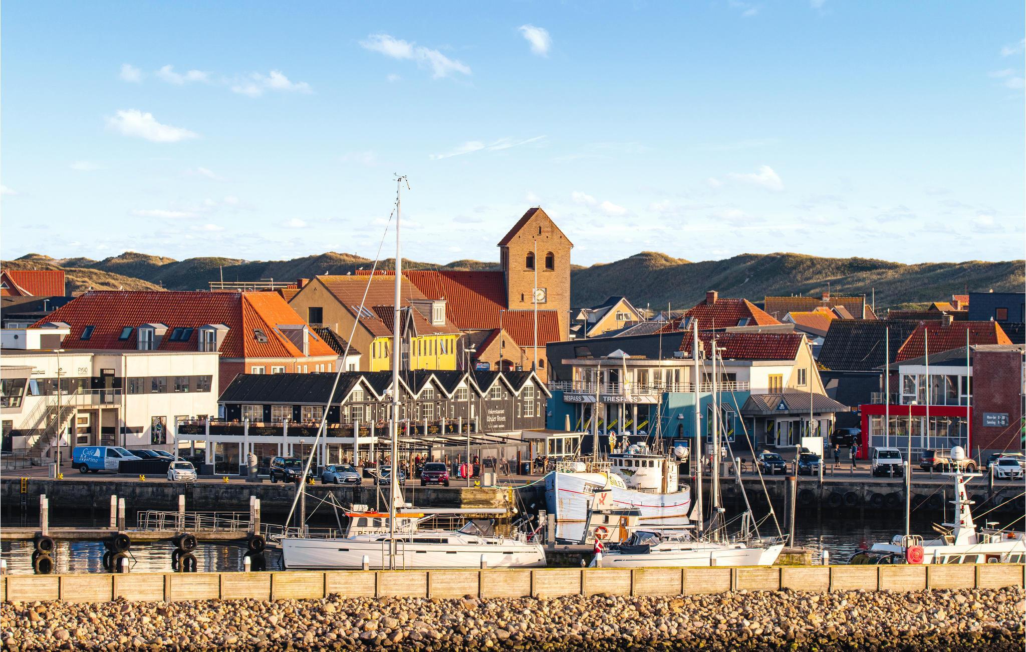 Dieses schöne Ferienhaus mit Blick über den Fjord liegt auf einem Dünengrundstück in Meeresnähe. Es ist durchdacht eingerichtet und überall wurde viel Wert auf Qualität mit vielen spannenden Details gelegt. Die Holz- bzw. Fliesenböden machen es leicht zu reinigen. In der Wellness-Abteilung des Hauses können Sie sich im Whirlpool oder beim Gang in die Sauna entspannen. Die zwei großen und schönen Bäder haben gemauerte Duschkabinen. Das Haus ist von einer 10 m² großen Terrasse mit Gartenmöbeln, Grill und Sonnenliegen umgeben. Genießen Sie die Ferien in diesem Haus unweit vom Fischerdorf Hvide Sande. Hier können Sie angeln, windsurfen sowie gut essen und einkaufen gehen.