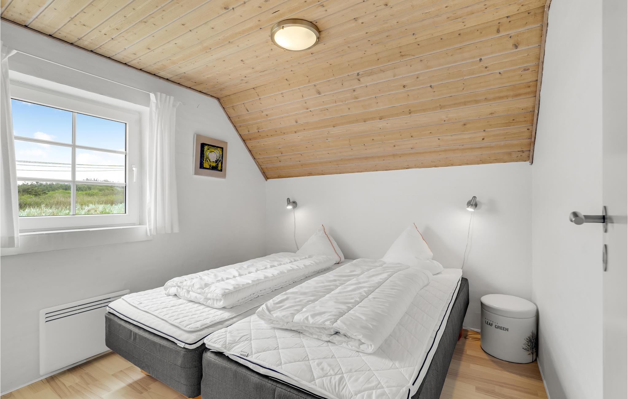 Auf einer schmalen Stelle auf dem Holmsland Klit erwartet Sie das schilfgedeckte Ferienhaus. Die 213 m² des Hauses sind gut ausgenützt, es ist für 2 bis 3 Familien groß genug. Es gibt 2 Schlafbereiche mit je 3 Schlafzimmern und 1 Badezimmer. Im Poolraum wird der Fußboden beheizt. Aktivität bieten die Rutsche, der große Pool, der Whirlpool und die Sauna. Auf der Westseite des Hauses sehen Sie die Dünen, die die Nordsee abschirmen. Im Sommer liegt das nächste Geschäft nur ein paar Hundert Meter entfernt. Sie wohnen in der Nähe von Hvide Sande, einem Ort mit Lebensmittelgeschäften und Boutiquen. Es gibt hier auch einen Wasserskilift, Sie können hier sehr gut windsurfen.