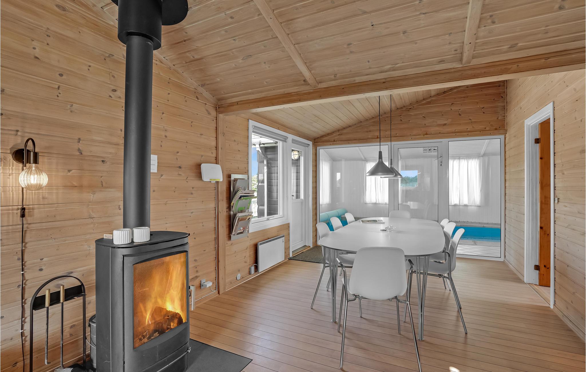 Eines der beliebtesten Gebiete auf Holmsland Klit ist Årgab, wo die Entfernung zwischen Meer und Fjord am geringsten ist. Genau hier liegt dieses gepflegte und gut ausgestattete Ferienhaus. Das Blockhaus hat in der Wohnküche einen schönen Holzböden, der ganz schnell zum natürlichen Treffpunkt des Hauses wird. Von hier aus haben Sie einen Blick auf das Schwimmbad, das mit einer umweltfreundlichen und energiesparenden Wärmepumpe beheizt wird. Neben dem Swimmingpool, in dem sich auch ein schönes kleines Kinderbecken befindet, können Sie im Whirlpool entspannen oder die Sauna genießen.
