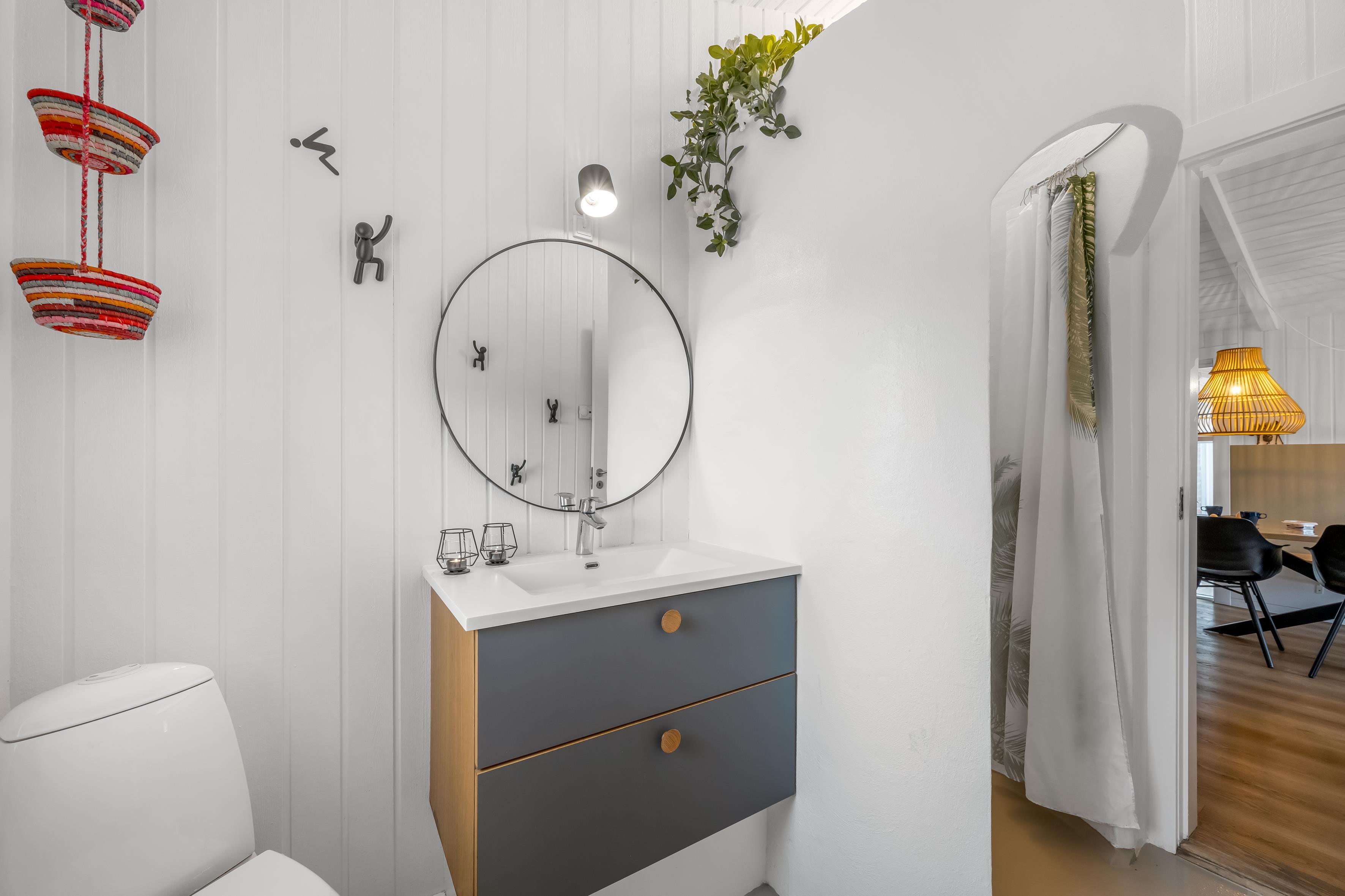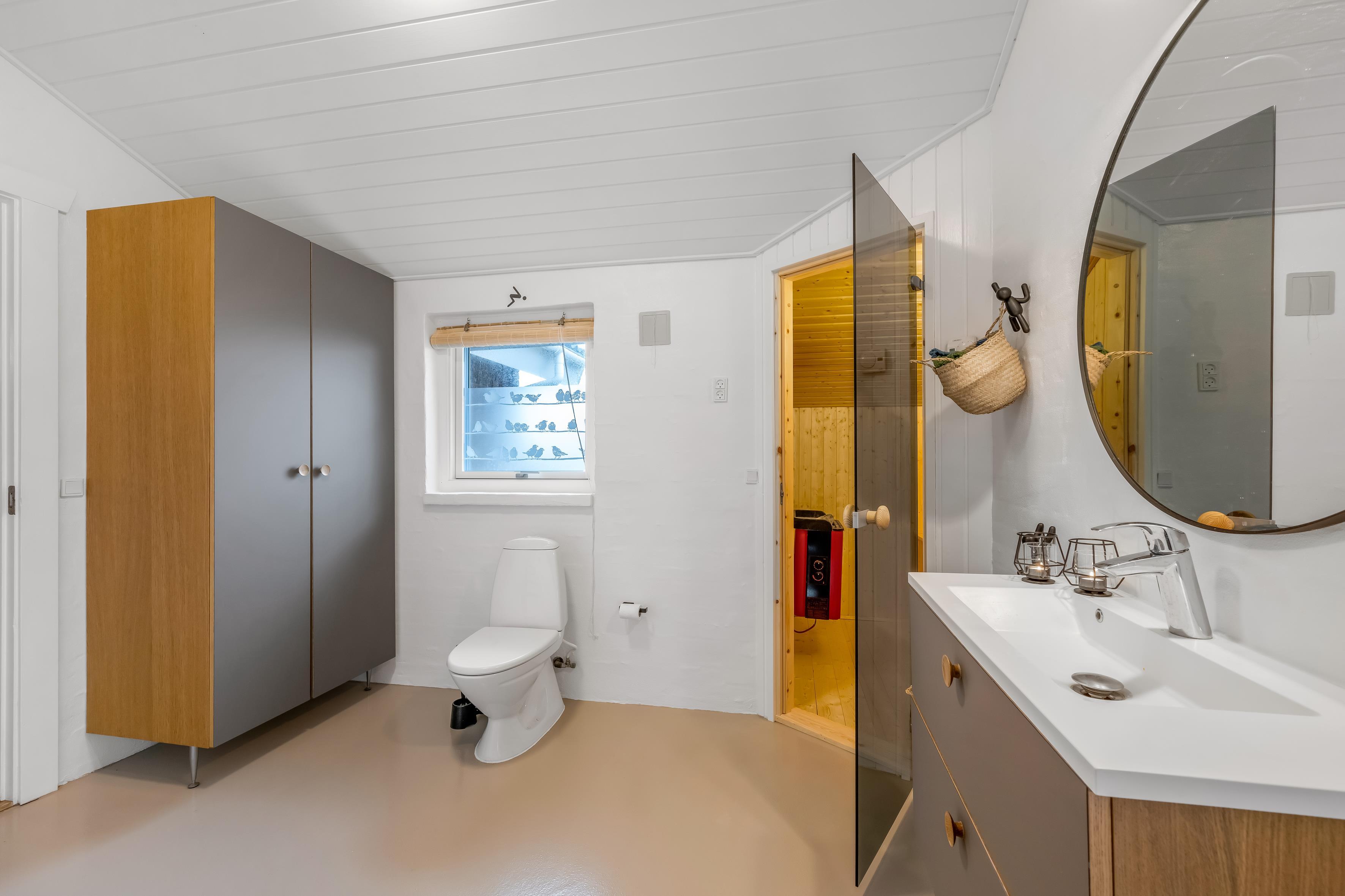 Die beiden Badezimmer sind modern und funktional, beide mit Dusche. Eines verfügt sogar über Fußbodenheizung für zusätzlichen Komfort. Das Haus bietet außerdem eine Sauna – perfekt zum Entspannen nach einem aktiven Tag.