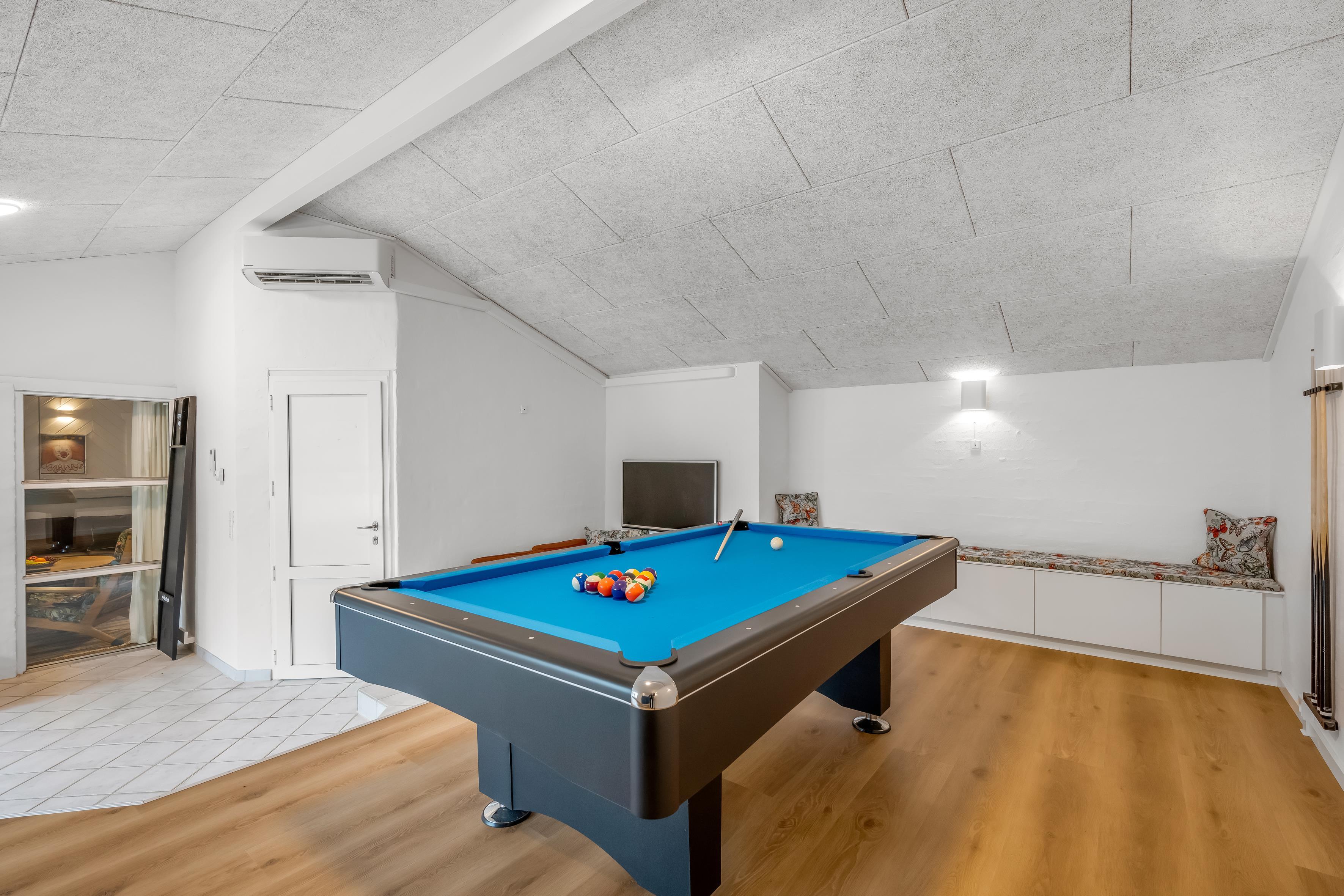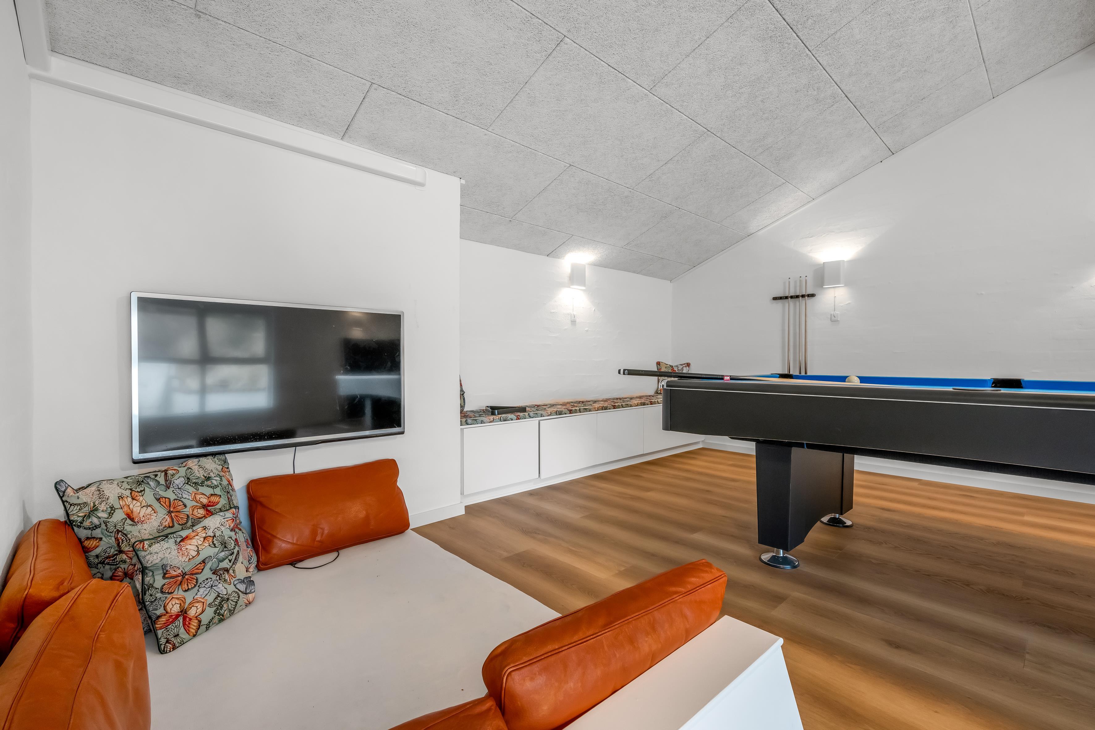 Im Haus erwartet Sie ein gut ausgestatteter Aktivitätsraum, in dem Sie sich beim Billard, Darts, Tischfußball und Tischtennis messen können. Es gibt zwei Fernseher, damit Sie Ihre Lieblingssendungen auf Dänisch oder Deutsch genießen können. Chromecast zum Streamen ist ebenfalls verfügbar. Das Haus ist mit WLAN ausgestattet, sodass Sie mit der Außenwelt in Verbindung bleiben können.