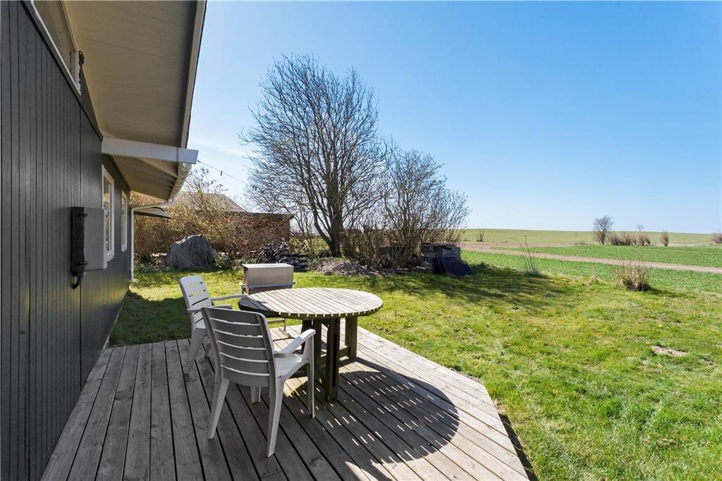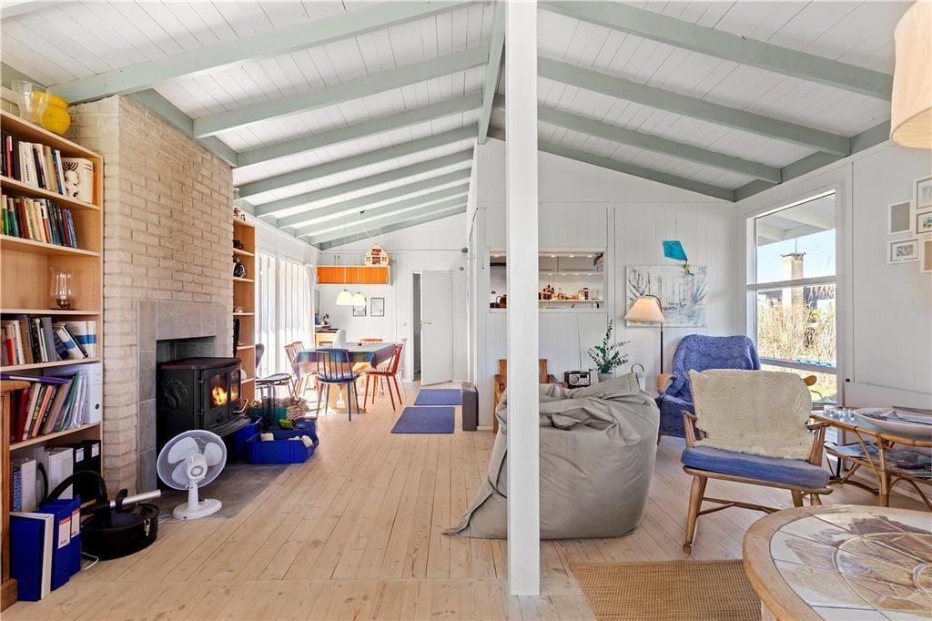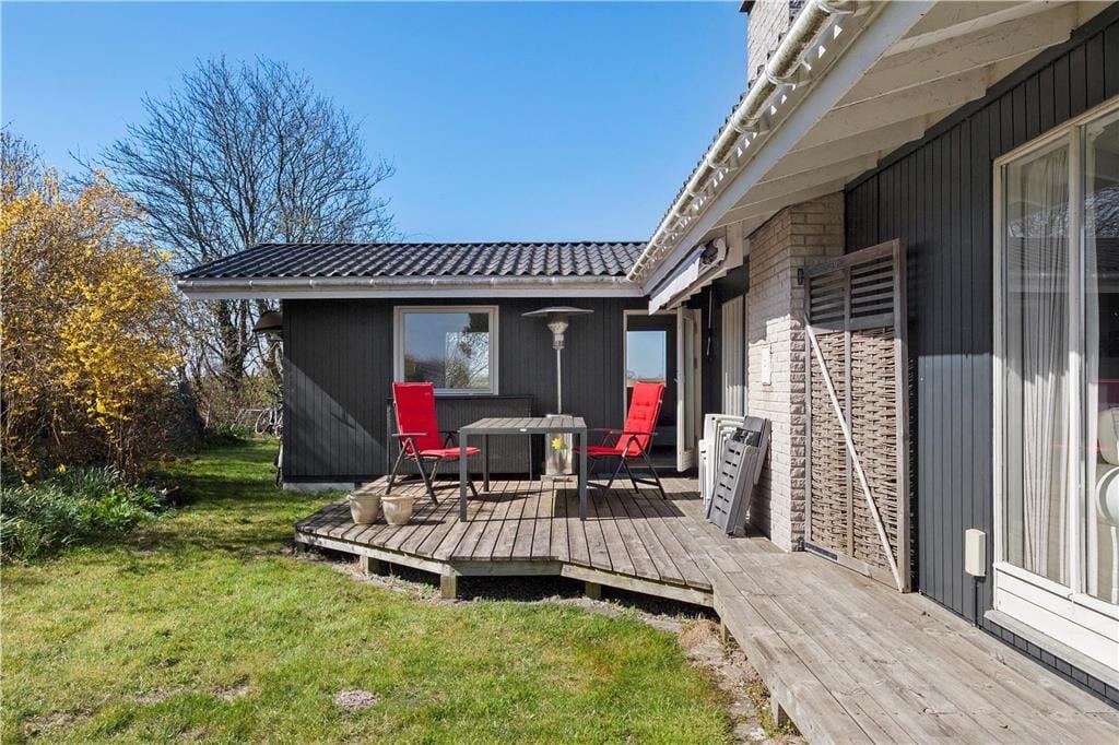 Das Haus beinhaltet eine gut ausgestattete Küche, die sich offen an den Wohn- und Essbereich anschließt. Dieser verfügt über einen Kaminofen und einen Ausgang auf die teilweise überdachte Terrasse, auf der Sie es sich wunderbar gemütlich machen und dabei stundenlang den Blick auf das Wasser genießen können. Zur Wohnfläche zählen außerdem ein gutes Badezimmer mit einer Dusche und einer Waschmaschine, ein Flur und drei gute Schlafräume mit jeweils zwei Schlafplätzen. Das Grundstück bietet Ihnen angenehm viel Bewegungsfreiheit und lädt neben entspannten Stunden auf der Terrasse auch zum Umhertollen und zu Ballspielen jeglicher Art ein. Die schöne Natur ringsum bietet sich für ausgedehnte Spaziergänge an. Selbstverständlich gibt es auch stets den kinderfreundlichen Badestrand mit herrlichen Erfrischungen im kühlen Nass.
