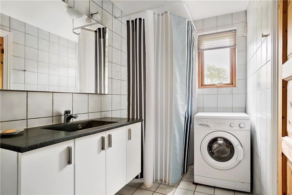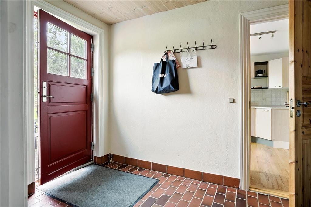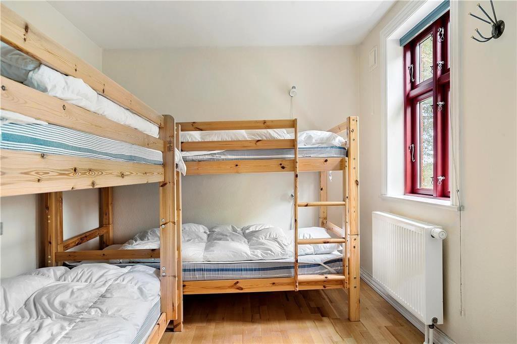 Das rote Steinhaus ruht bereits seit dem Jahr 1935 auf Agerø. Im Jahr 2009 wurde es renoviert und präsentiert sich seither als gutes Urlaubsdomizil für sechs Personen. Das Hausinnere umfasst eine Wohnfläche von 100 m². Ein Großteil der Fläche ist dem gemütlichen Wohnraum und der angrenzenden Küche gewidmet. Die gut ausgestattete Küche verfügt unter anderem über einen hoch eingebauten Backofen, einen Geschirrspüler und andere gute Küchengroßgeräte. Im Wohnraum sorgen ein Fernseher mit Parabolempfang, eine Stereoanlage und WiFi für Unterhaltung und Abwechslung. Vom Eingangsbereich aus gelangen Sie in das Duschbadezimmer mit Fußbodenheizung. Am nördlichen Ende des Hauses stehen Ihnen zwei nebeneinanderliegende Schlafräume zur Verfügung.