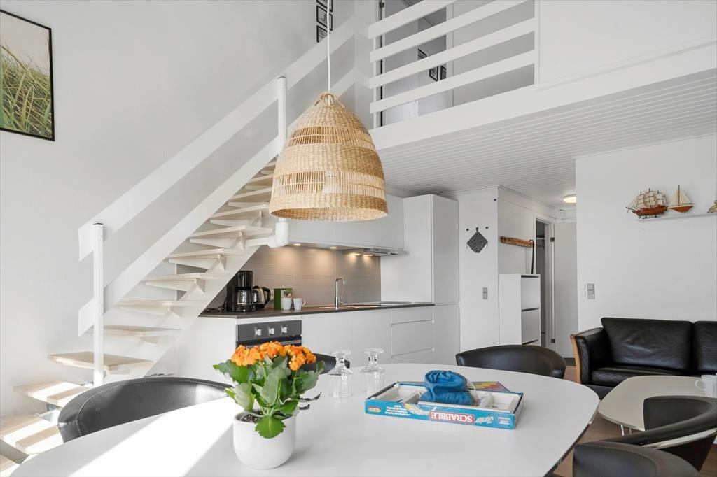 Beim Betreten dieser hellen und gemütlichen Ferienwohnung im Agger Havn Feriecenter wirst du dich sofort wie im Urlaub fühlen. Auf zwei Etagen verteilen sich drei einladende Schlafzimmer – ideal für Familien, Freunde oder ein Mehrgenerationenurlaub. Die Einrichtung ist funktional und wohnlich, und das Herz der Wohnung ist das offene Wohn- und Esszimmer, das zum Zusammensein einlädt. Ob beim gemeinsamen Kochen, Spielen oder Ausruhen – hier ist Platz für unvergessliche Ferienmomente. Und wenn der Tag sich dem Ende neigt, kannst du dich in eines der Schlafzimmer zurückziehen und den Tag bei Meeresrauschen Revue passieren lassen.