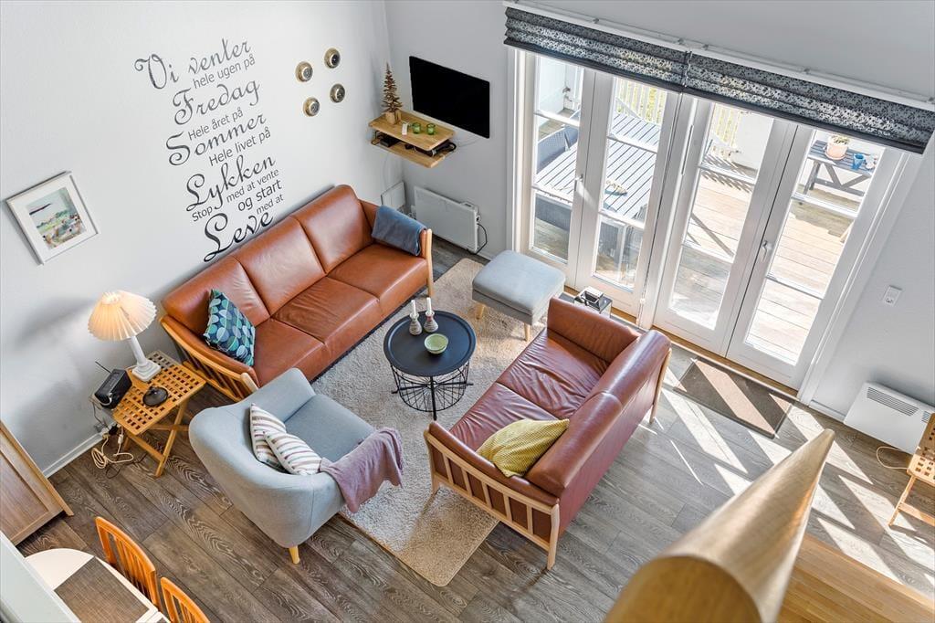 Die Wohnung bietet Zugang zu einer wunderschönen Außenanlage, wo du das Leben unter freiem Himmel genießen kannst. Von der Terrasse aus hast du einen herrlichen Blick auf die umliegende Landschaft – ideal für den morgendlichen Kaffee oder ein Abendessen vom Grill. Hier kannst du die frische Meeresluft einatmen und den Klang der Natur auf dich wirken lassen. Agger lädt außerdem dazu ein, die Natur zu Fuß oder mit dem Fahrrad zu erkunden und das Beste aus der Umgebung herauszuholen.