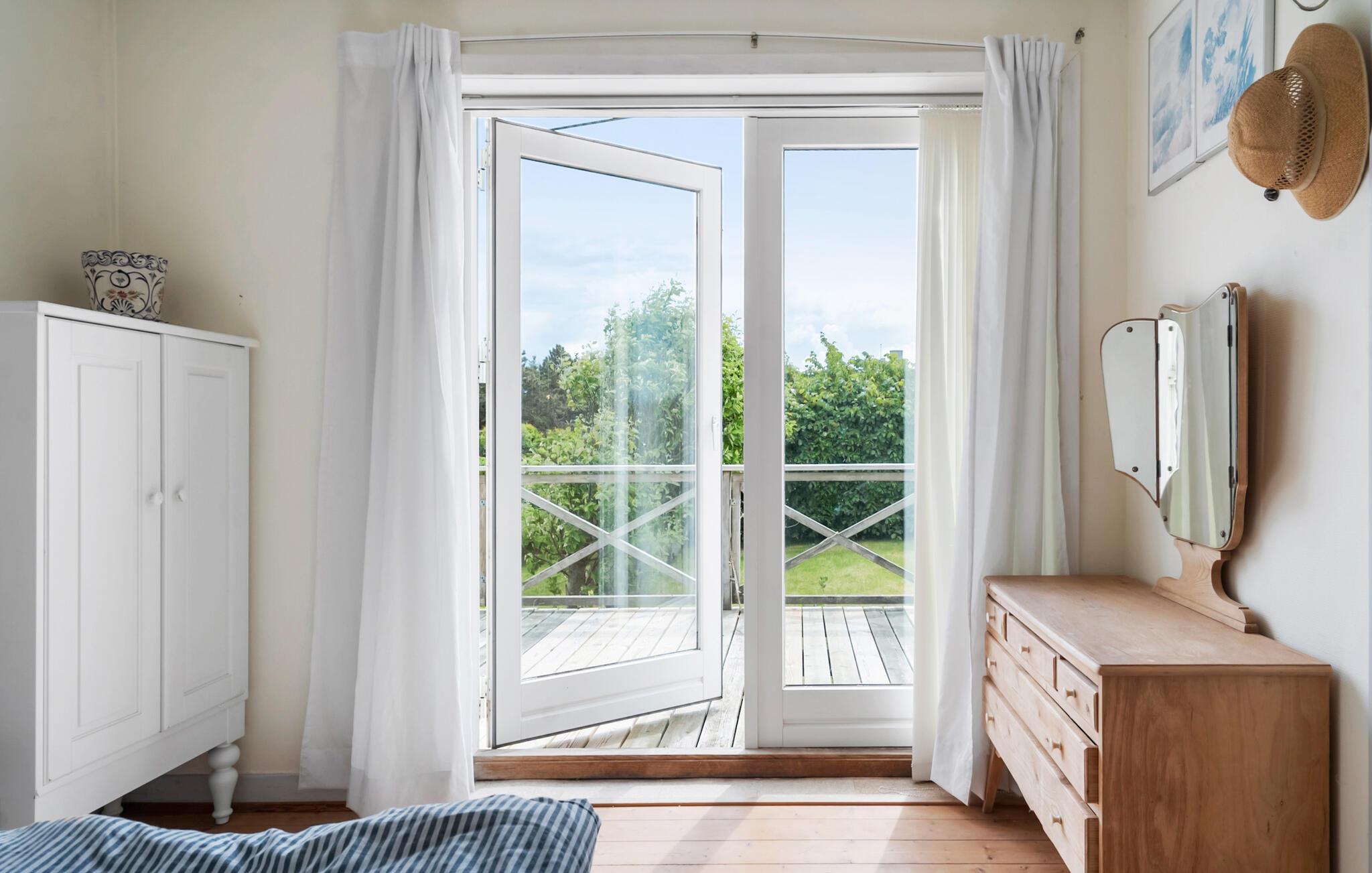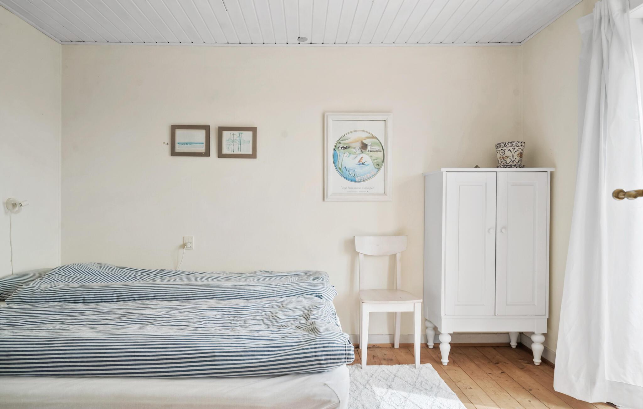 Ihr Ferienhaus befindet sich in bester Lage direkt am Agger Strand. Es eignet sich ideal für alle, die Ruhe, Natur und Nähe zum Wasser suchen. Die Einrichtung kombiniert traditionelle Gemütlichkeit mit funktionalem Komfort. Im Inneren des Hauses erwartet Sie ein heller Essbereich mit Holzmöbeln und ein separates Wohnzimmer im Obergeschoss mit Balkon und traumhaftem Blick über die Bucht Krik Vig. Lassen Sie den Blick in die Ferne schweifen oder machen Sie es sich auf dem Sofa gemütlich. Genießen Sie an kühleren Tagen die Wärme des Kaminofens. Die Küche ist praktisch ausgestattet und erlaubt eine unkomplizierte Selbstverpflegung während Ihres Aufenthalts sowie Platz zum Frühstücken am Morgen.