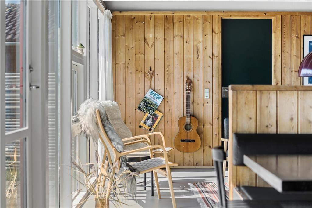 Tritt ein in dieses gemütliche kleine Ferienhaus, wo der Kaminofen an kühlen Abenden für Wärme und Behaglichkeit sorgt. Das Wohnzimmer bildet das Herz des Hauses und lädt zu entspannten Stunden mit Brettspielen, Filmen über Chromecast oder einem guten Buch ein. Mit Platz für sechs Personen ist dieses Ferienhaus perfekt für einen Familienurlaub oder eine Reise mit guten Freunden. Die funktionale Küche macht es einfach, köstliche Mahlzeiten zuzubereiten, während sich alle um den Esstisch versammeln und die gemeinsame Zeit genießen.