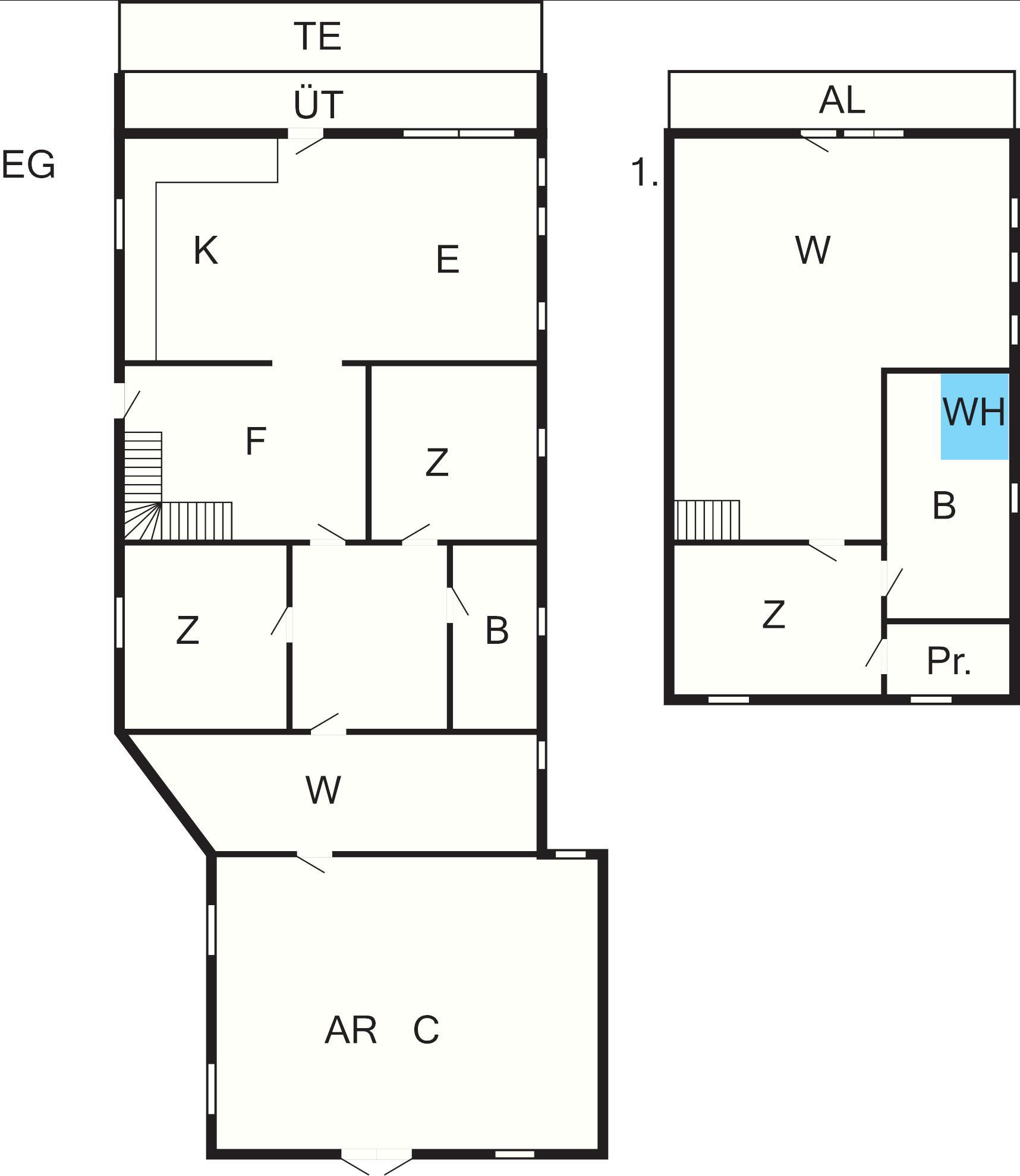 Bad: Waschm., WC, Waschb., Dusche
