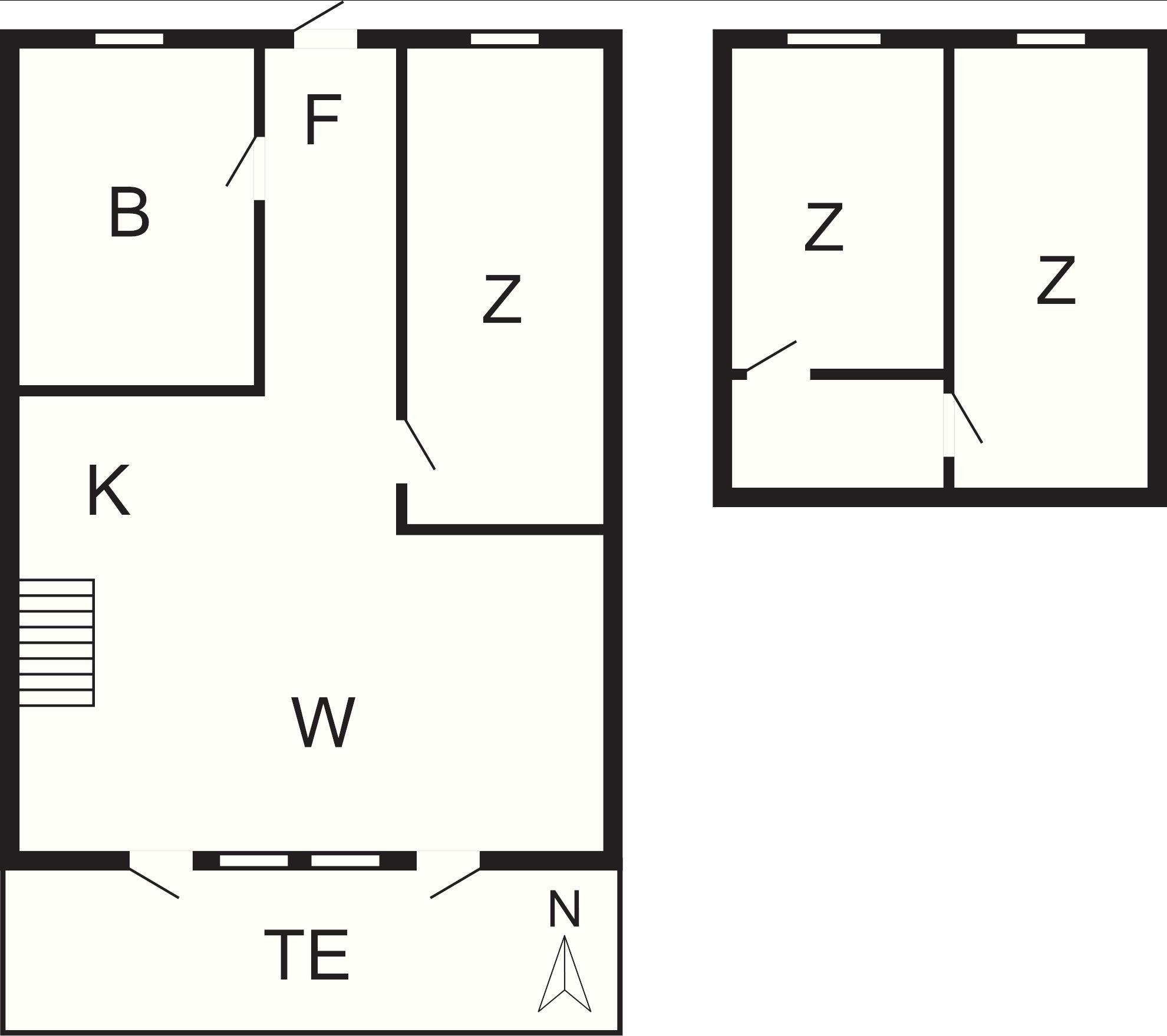 Off. Küche: Hochstuhl, E-Kochpl., Ofen, Kühlschr. m. Gefrierfach, Gefriertruhe 60-99 l., Abzugsh., Kaffeem.