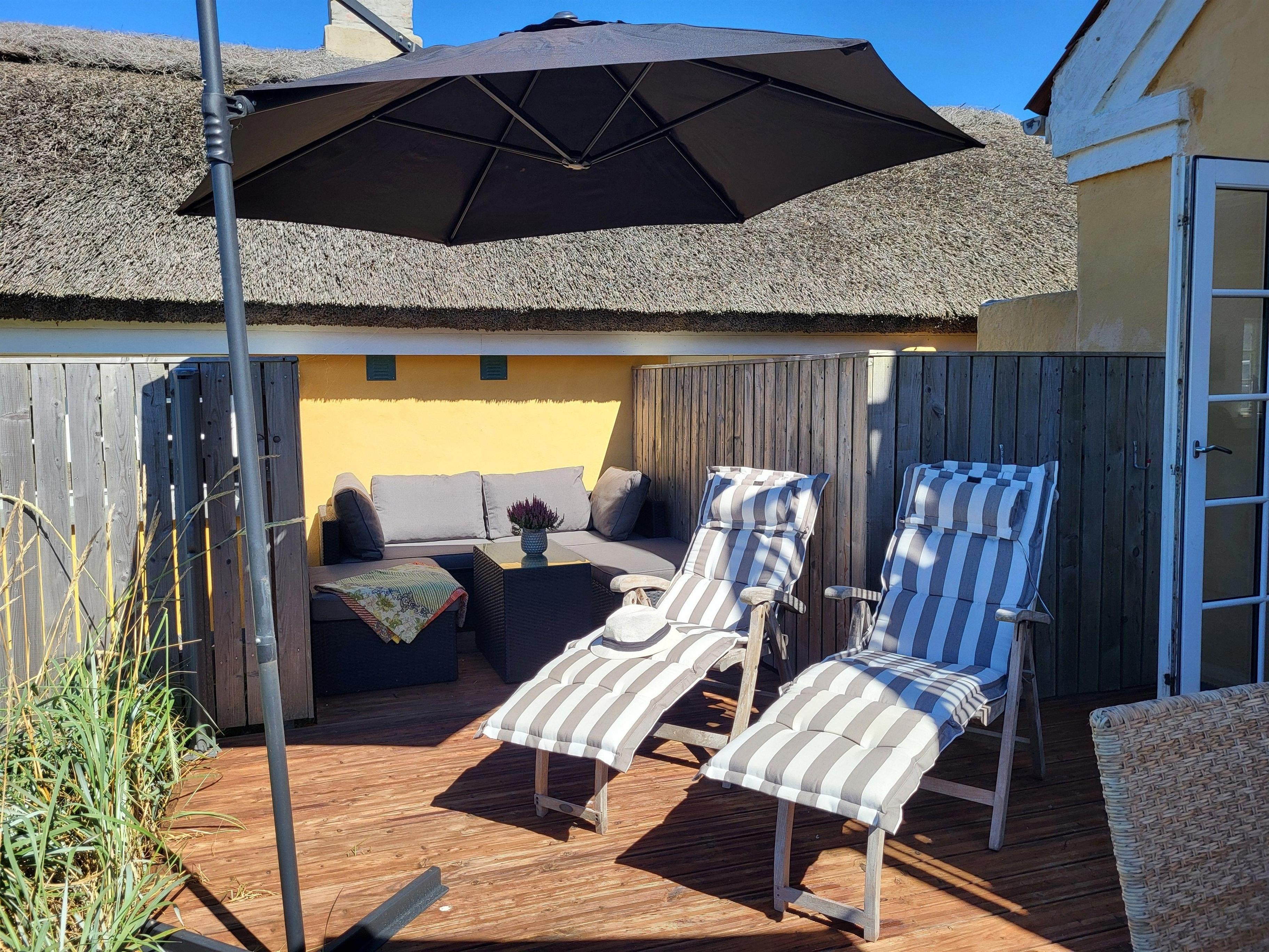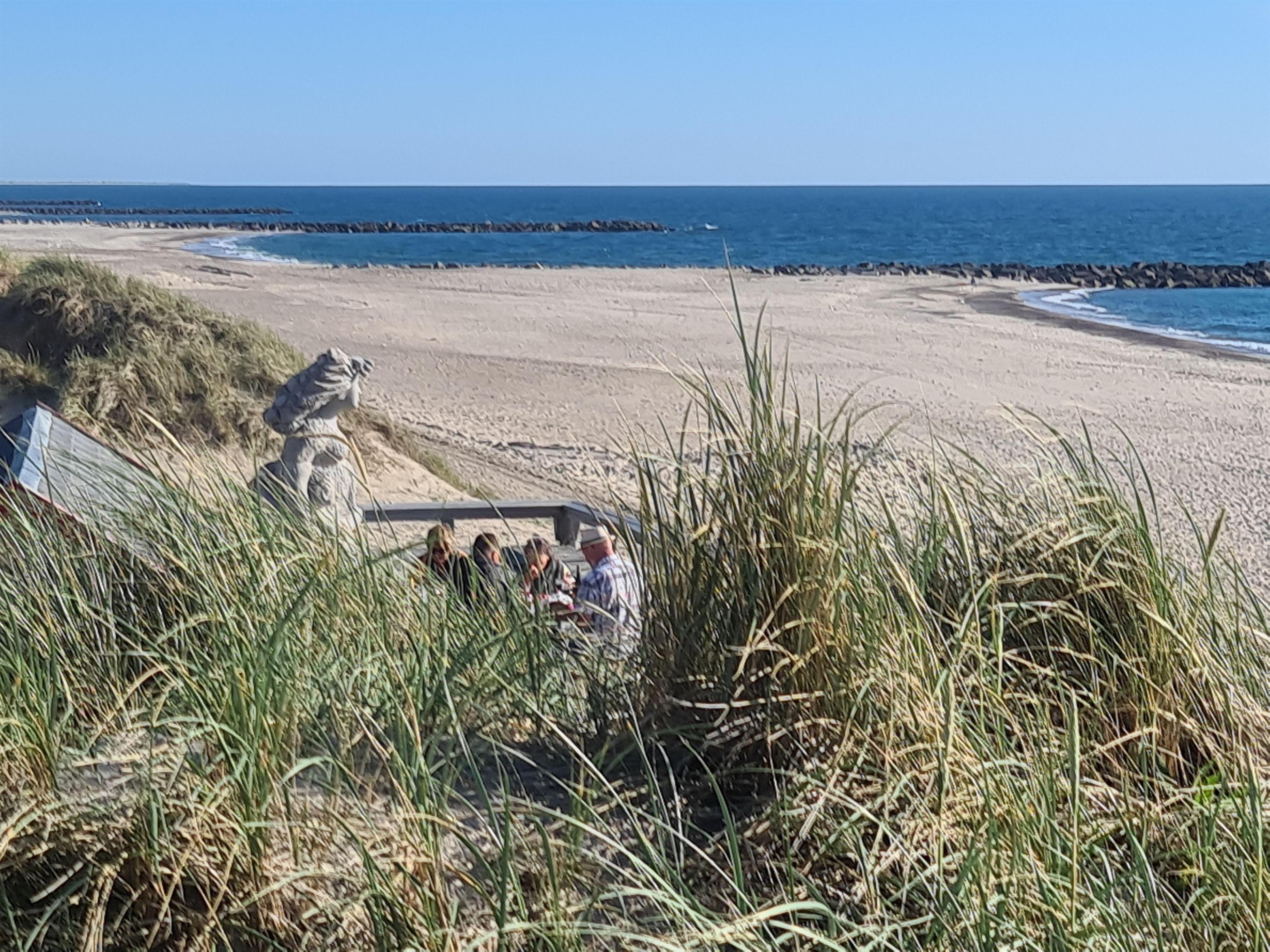 Vom geräumigen Wohnzimmer, der Terrasse und dem Balkon bietet sich ein Panoramablick auf die Dünen und das Wahrzeichen der Stadt, den "Sinalmast", an dem sich Fischer früher nach ihrer Seereise orientieren konnten. Der umzäunte Garten sorgt für ungestörte Ruhe und schützt vor Wind.