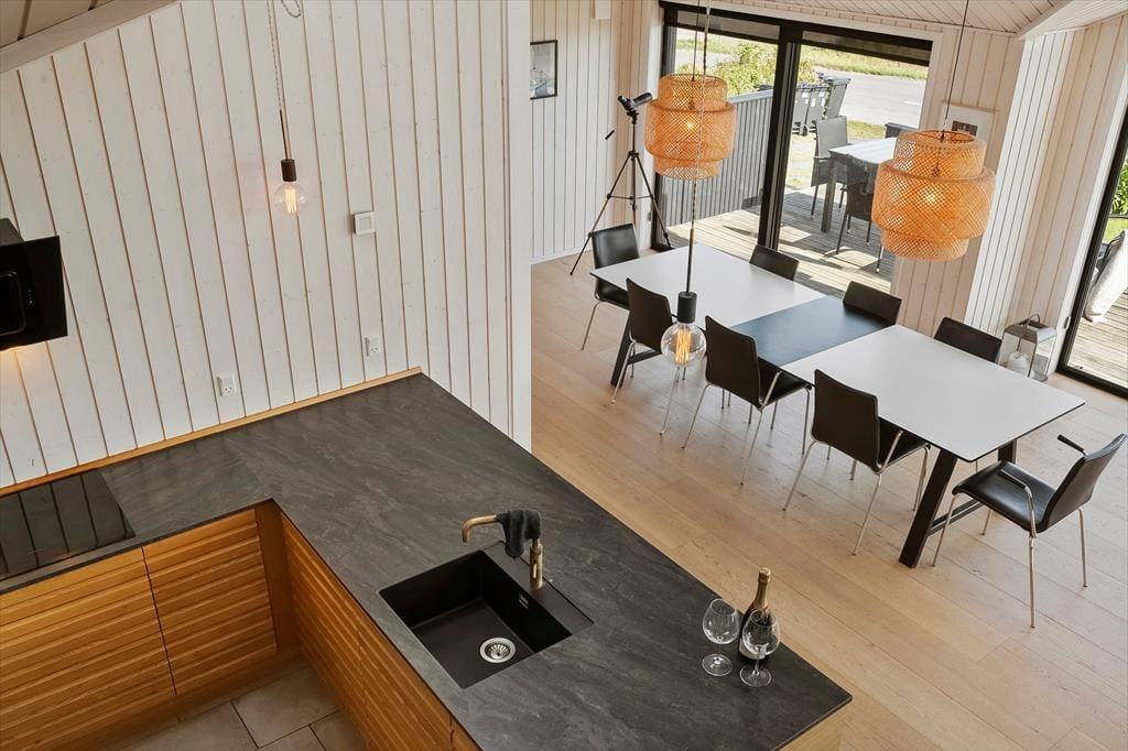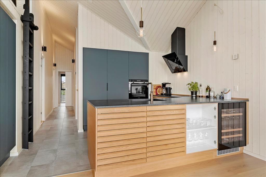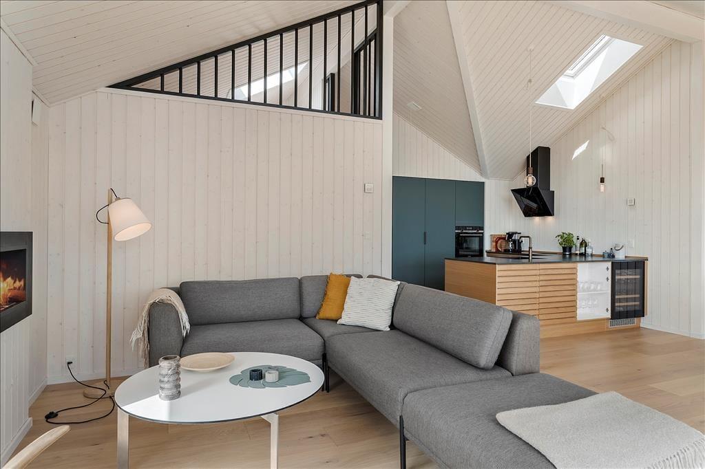 Wenn du das Haus betrittst, empfängt dich ein heller, großzügiger Wohnbereich mit Fenstern, die die blauen Nuancen der Küstenlandschaft einfangen. Alles ist durchdacht eingerichtet, damit du den Alltag hinter dir lassen und stattdessen Momente voller Gespräche, Lachen und entspannter Gemeinschaft genießen kannst. Küche und Wohnbereich gehen harmonisch ineinander über und bieten Platz für gemeinsame Stunden ebenso wie für kleine Pausen zwischendurch. Weiche Materialien und sorgfältig ausgewählte Details schaffen eine Atmosphäre, die dich warm willkommen heißt. Du kannst deinen Blick über das Meer und die sanften Wellen schweifen lassen, während der Abend sich senkt, die Lichter angehen und Ruhe dich umgibt.