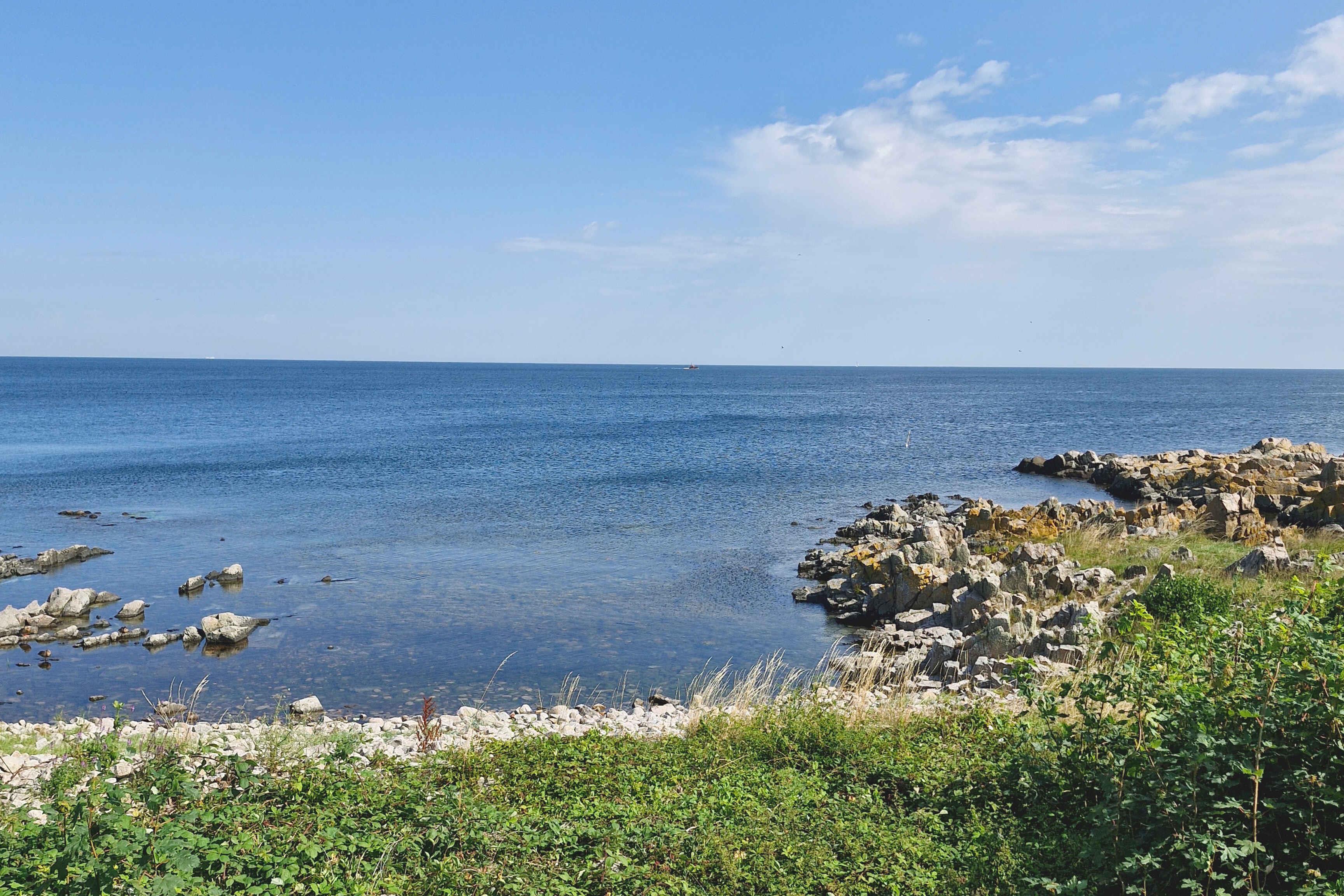 Genießen Sie die Ruhe im charmanten Sandvig – helles und gemütliches Ferienhaus mit Meerblick, nahe Strand, Klippen und einladenden Cafés.