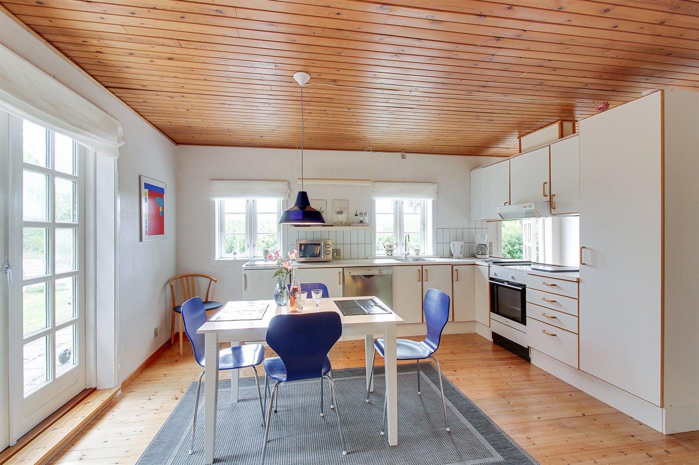 Dieses schöne Ferienhaus liegt auf dem Land mit Aussicht über Felder. Der einzige Nachbar ist der Besitzer, der ca. 50 m vom Haus entfernt wohnt. Das Haus liegt auf einem hügeligen und grasbewachsenen Grundstück das an Feld- und Waldgebiete angrenzt. Um zum Haus zu kommen fahren Sie einen ca. 800 m langen Kiesweg entlang. Zugang zu Waschmaschine nach Vereinbarung mit dem Besitzer. 4 km vom Haus entfernt liegt der kleine Sandstrand bei Sandkås.