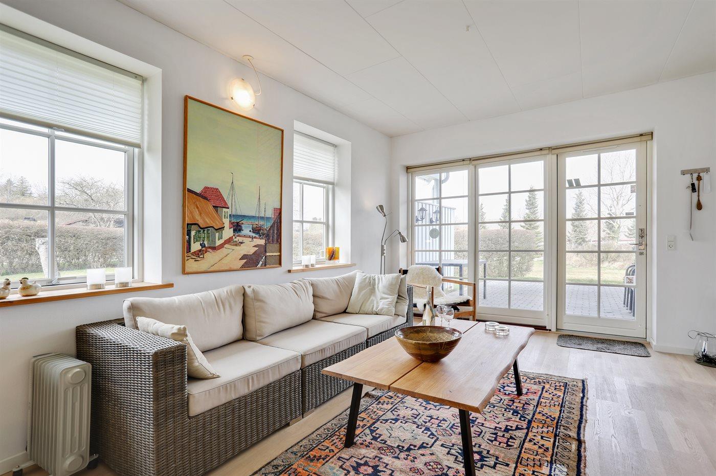 Schöne Ferienwohnung nur 400 m von der Küste an Sandkås entfernt, wo es auch einen kleinen Sandstrand gibt. Vom Grundstück und von der Terrasse aus gibt es Ausblick über die Ostsee. Ein beheizter Außenswimmingpool steht zur Verfügung für die Einwohner/Gäste des Gebietes. Der Swimmingpool ist im Zeitraum 15.06.-15.09. geöffnet.