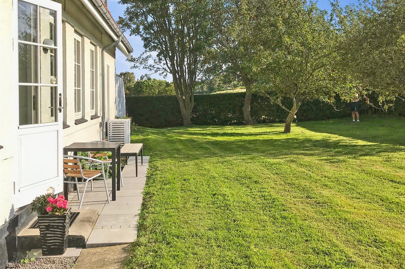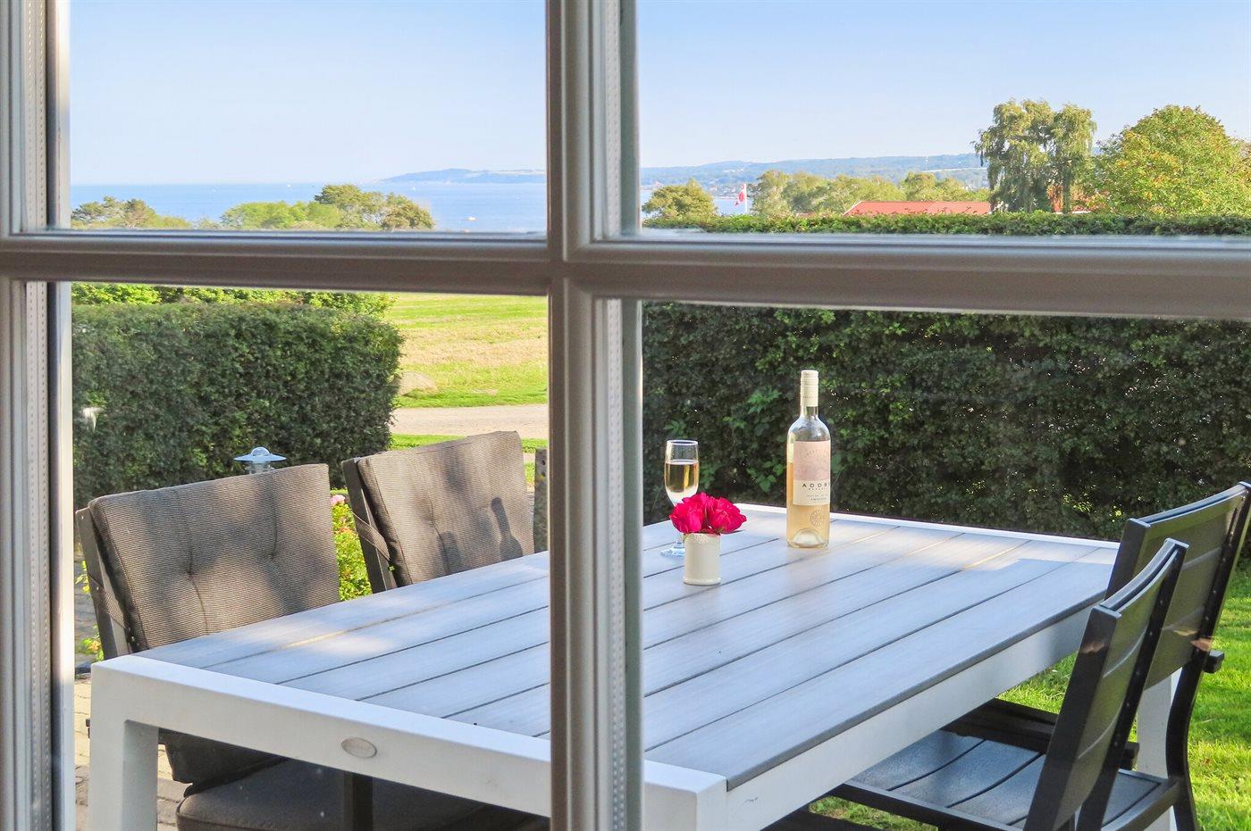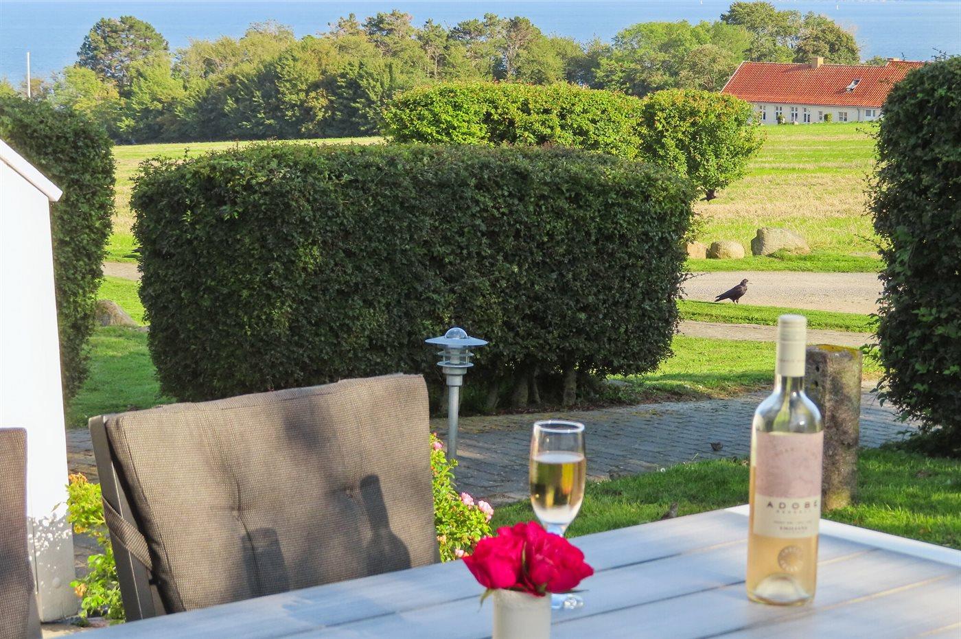 Von der Wohnung und der Terrasse aus haben Sie Panoramablick auf die Ostsee (Salene-bugten) mit Blick auf die Orte Gudhjem und Tejn und und mit der Insel Christians Ø im Horizont. Die Wohnung ist nach Süden ausgerichtet und auf der Terrasse können Sie von Morgens bis Nachmittags die Sonne genießen. In den späten Nachmittagsstunden können Sie die Sonne dann im Garten genießen.
