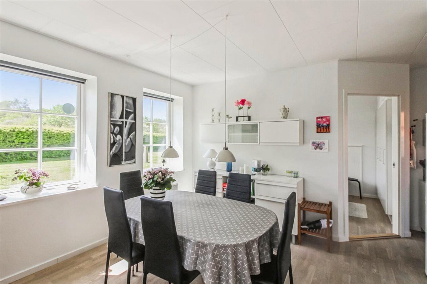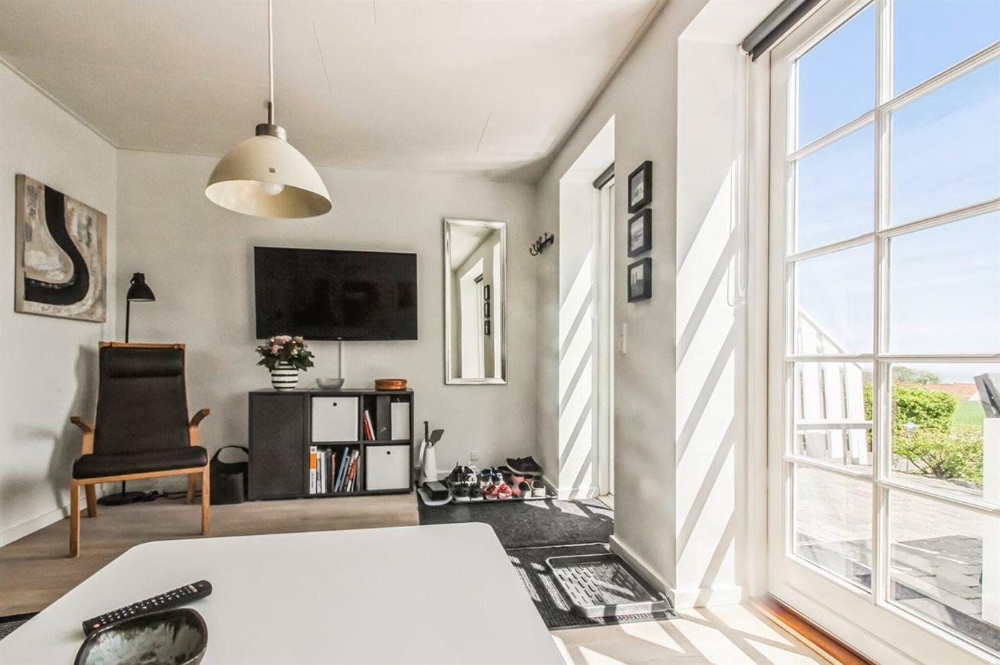 Im Januar 2022 wurde eine Wärmepumpe installiert, die ebenfalls als Aircondition funktioniert. Das Wohnzimmer ist durch eine Halbwand vom Esszimmer getrennt. Das Esszimmer hat Fenster zur Westseite. Im Wohnzimmer gibt es einen Fernseher mit Smart TV (dänische und schwedische Fernsehsender - HDMI-Kabel vorhanden), Chromecast und DVD-Player. Außerdem stehen kostenloses WLAN (Computer erforderlich) und Stereoanlage mit CD-Player zur Verfügung.
