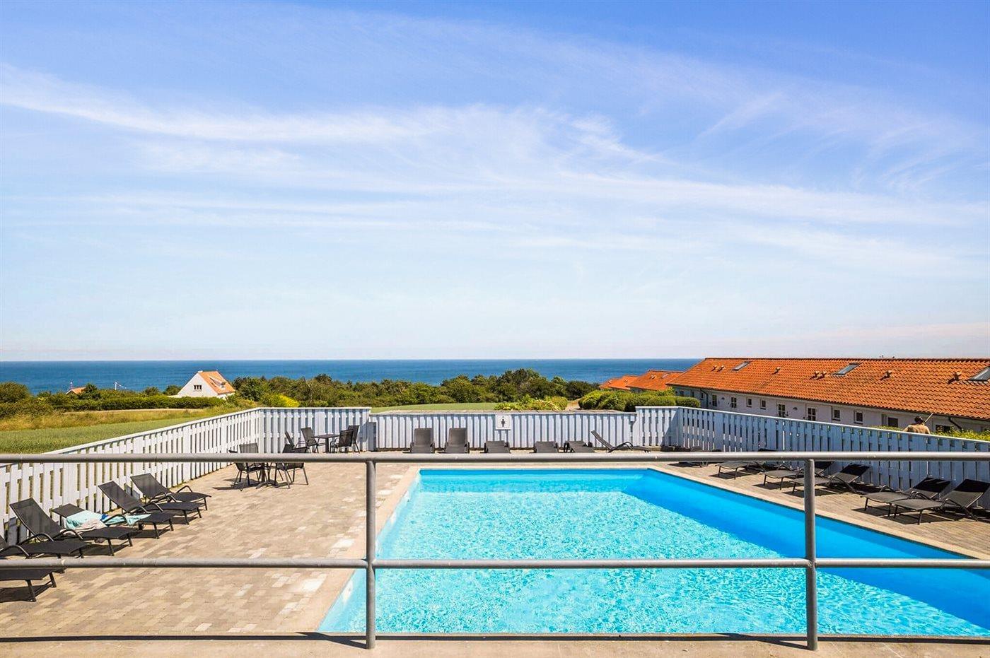 Moderne Ferienwohnung mit Meerblick, beheiztem Pool und Südterrasse in Allinge auf Bornholm.