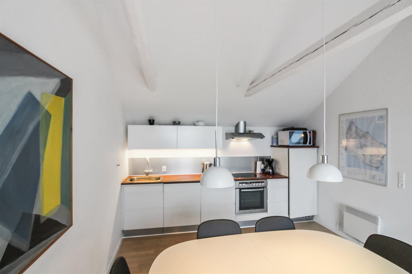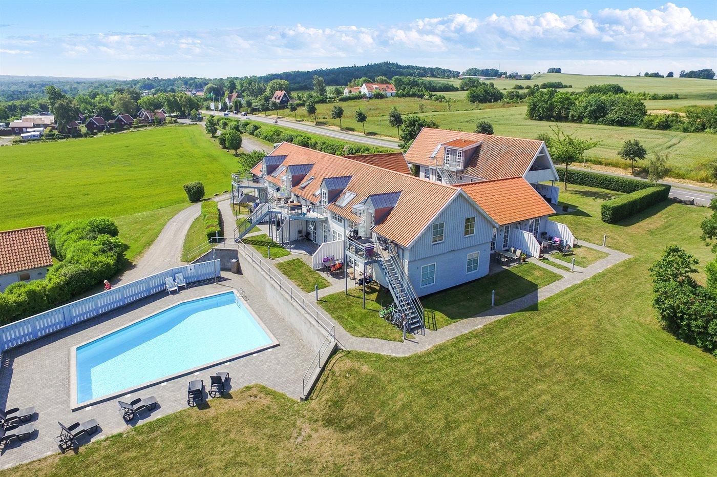 Diese nett eingerichtete und helle Ferienwohnung liegt im Obergeschoss in der ehemaligen Pension Boesvang in Sandkås. Vom herrlichen Balkon/Terrasse haben Sie eine phantastische Aussicht über das Gemeinschaftsgelände mit Swimmingpool sowie dem Meer bis zur Insel Christiansø hinaus. Die Wohnung ist über eine auswendige Treppe zu erreichen. Die Wohnung liegt auf einem Gemeinschaftsgelände mit beheiztem Außenswimmingpool, der im Zeitraum 15.06.-15.09. nutzbar ist. Sandkås ist ein beliebter Ferienort - dicht an guten Aktivitätsmöglichkeiten und Sehenswürdigkeiten. Übrigens: 2 Schlafplätze auf einer Doppelschlafcouch im Wohnzimmer.
