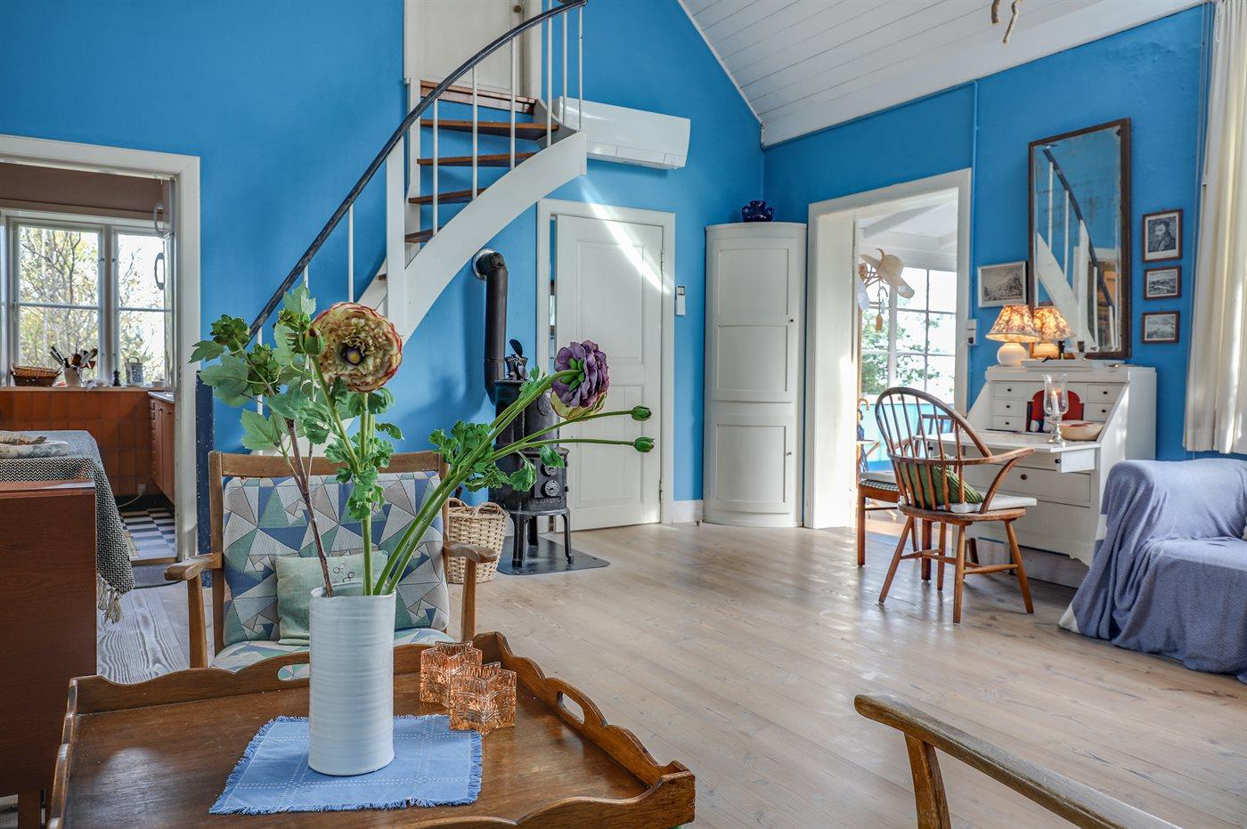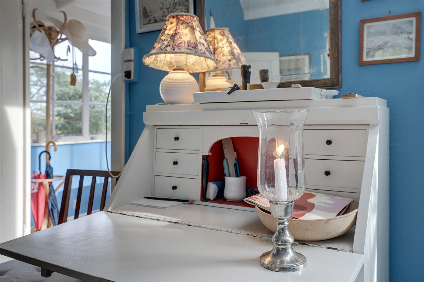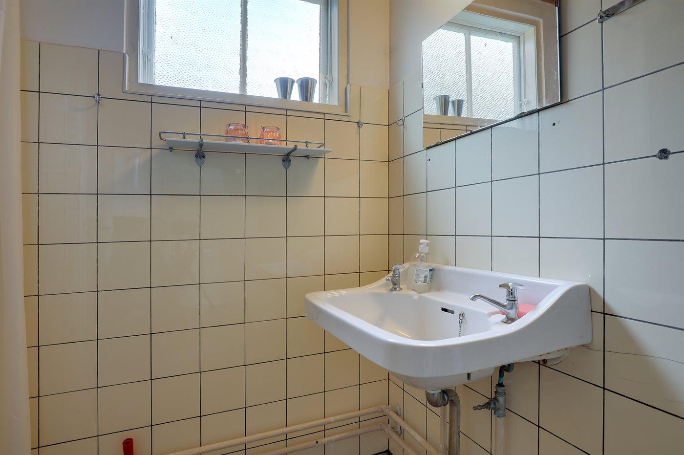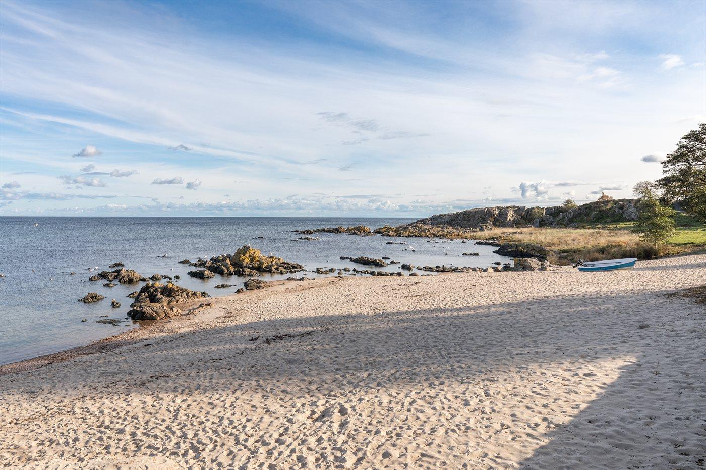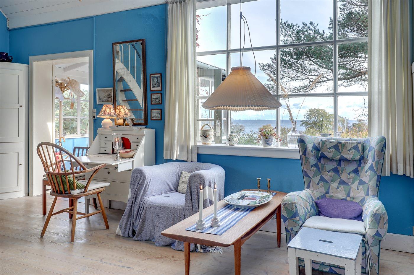 Erhöht gelegenes, älteres Ferienhaus auf einem fantastischen Naturgrundstück mit Felsvorsprung und natürlichen windgeschützten Ecken. Zum Haus gehört zudem eine erhöhte Holzterrasse, die in den Felsvorsprung eingearbeitet wurde. Ursprünglich wurde das Haus für einen Kunstmaler erbaut, dem der Allinges Geschäfte und Restaurants sind leicht zu erreichen. wunderschöne, kräftige Lichteinfall im großen Wohnzimmer zu verdanken ist. Badestrand, Räucherei sowie