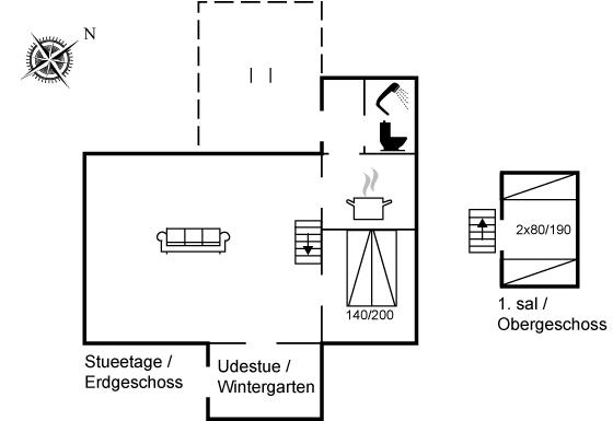 Das Ferienhaus eignet sich für 4 Personen. Die Ferienunterkunft hat eine Wohnfläche von 63 m², ist 2-stöckig, und wurde 1926 gebaut. 2012 wurde die Ferienunterkunft teilweise renoviert. Haustiere dürfen nicht mitgebracht werden. Die Ferienunterkunft ist mit energiesparender Wärmepumpe ausgestattet. Tiefkühlmöglichkeit mit 15 Liter Nutzinhalt. Es gibt außerdem einen Kaminofen.