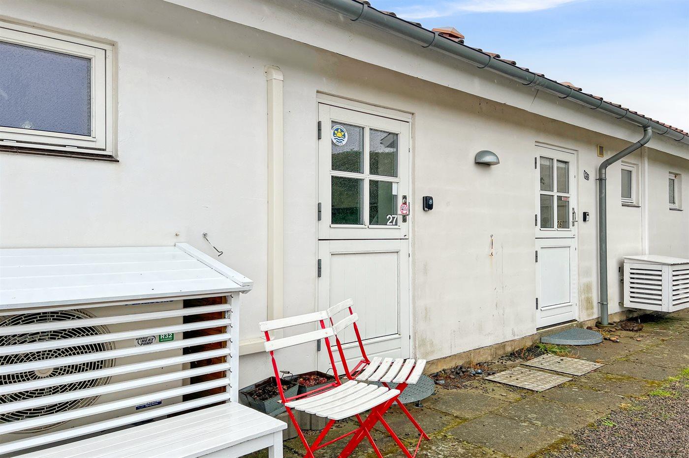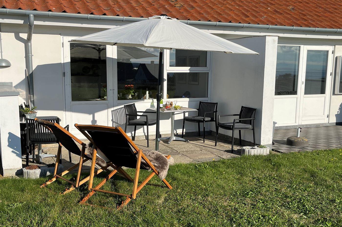 Charmante Ferienwohnung mit Meerblick, Terrasse und Zugang zu beheiztem Pool in Allinge, Dänemark.