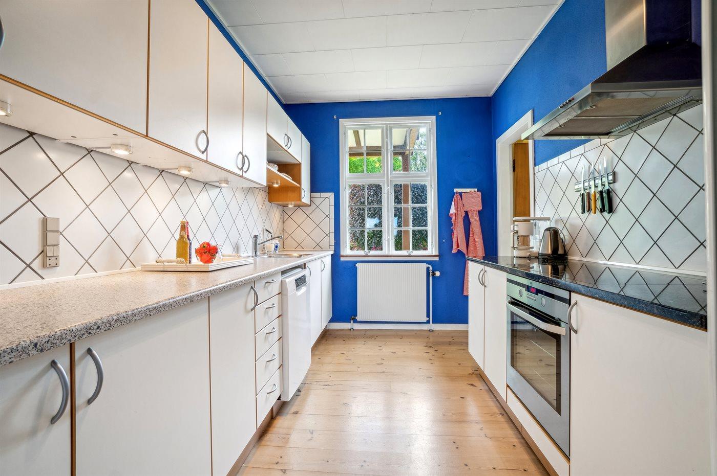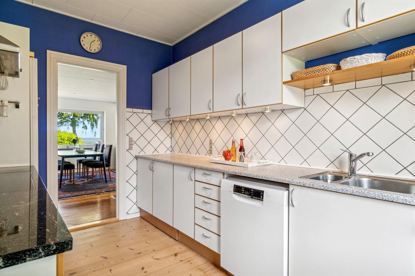 Die Küche ist mit Kühlschrank ausgestattet. Außerdem gibt es 4 Induktions-Kochzonen, Umluftofen sowie Geschirrspüler.