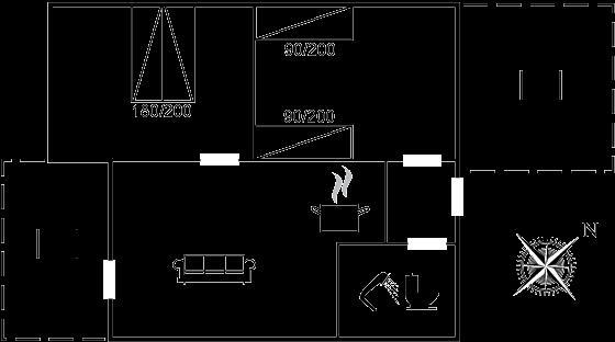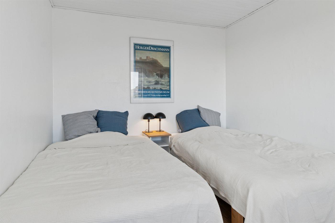 Die Schlafplätze verteilen sich auf 2 Schlafräume. 2 Schlafplätze in einem Doppelbett. 2 Schlafplätze in Einzelbetten.