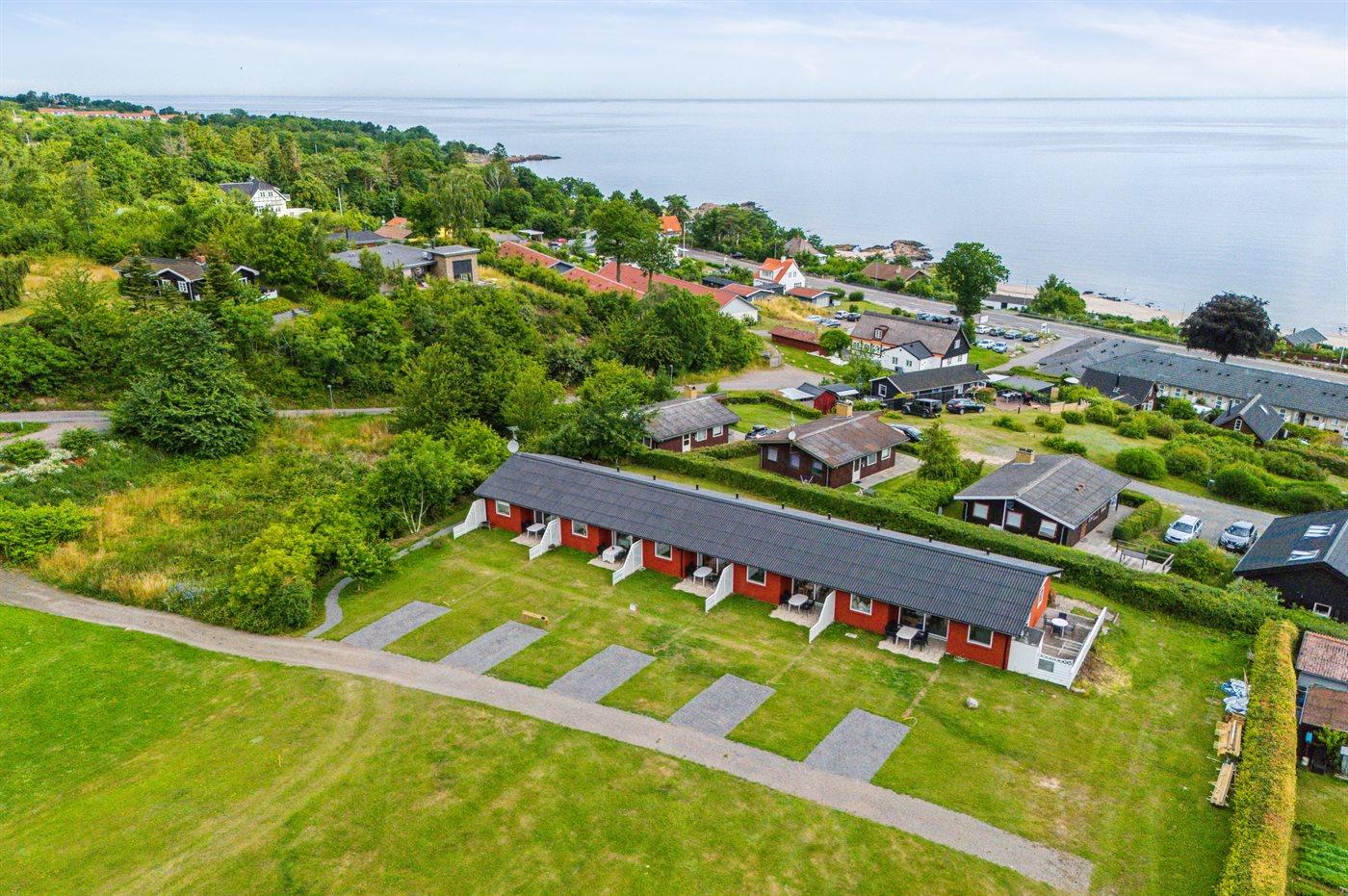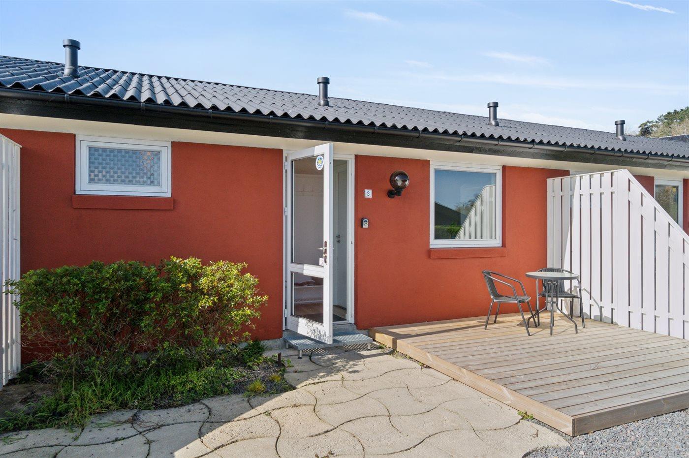 Komplett renovierte Ferienwohnung mit Meerblick und zwei Terrassen in Allinge, ideal für entspannende Urlaubstage.