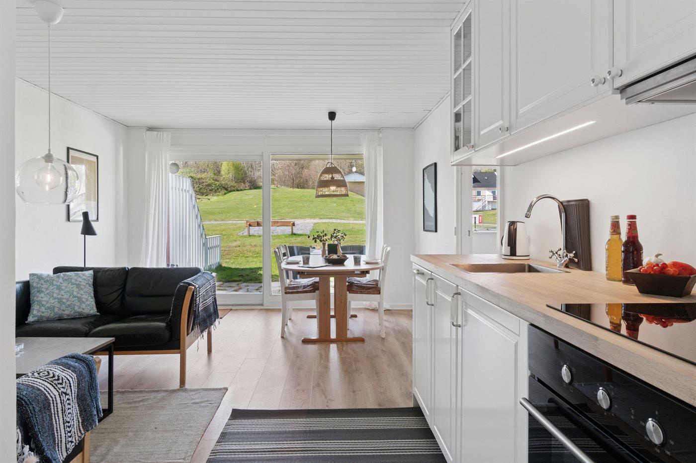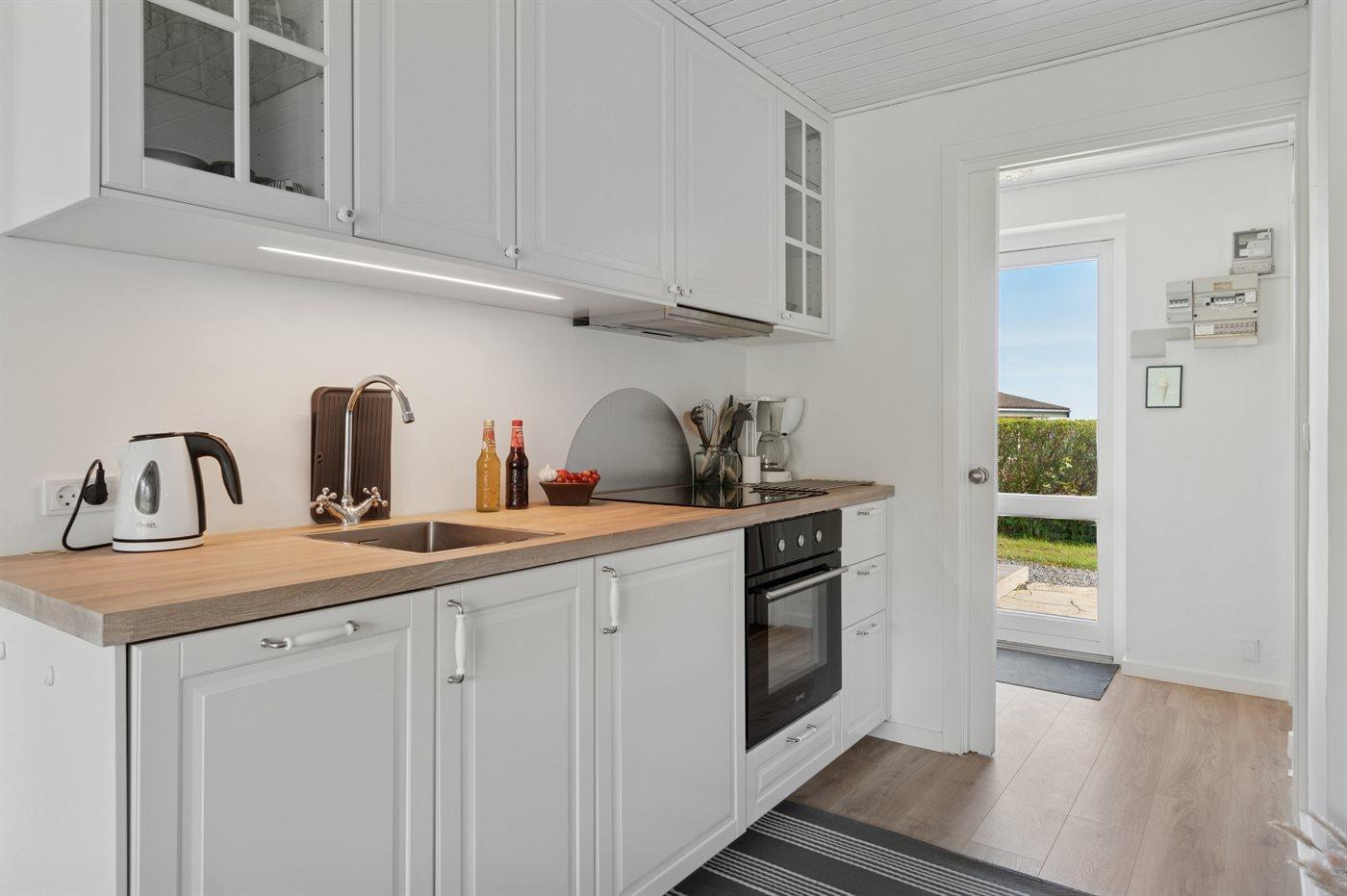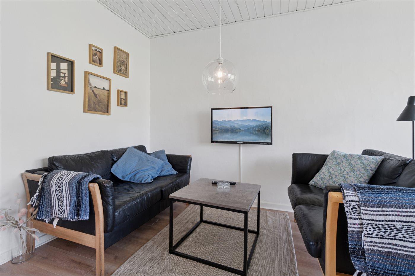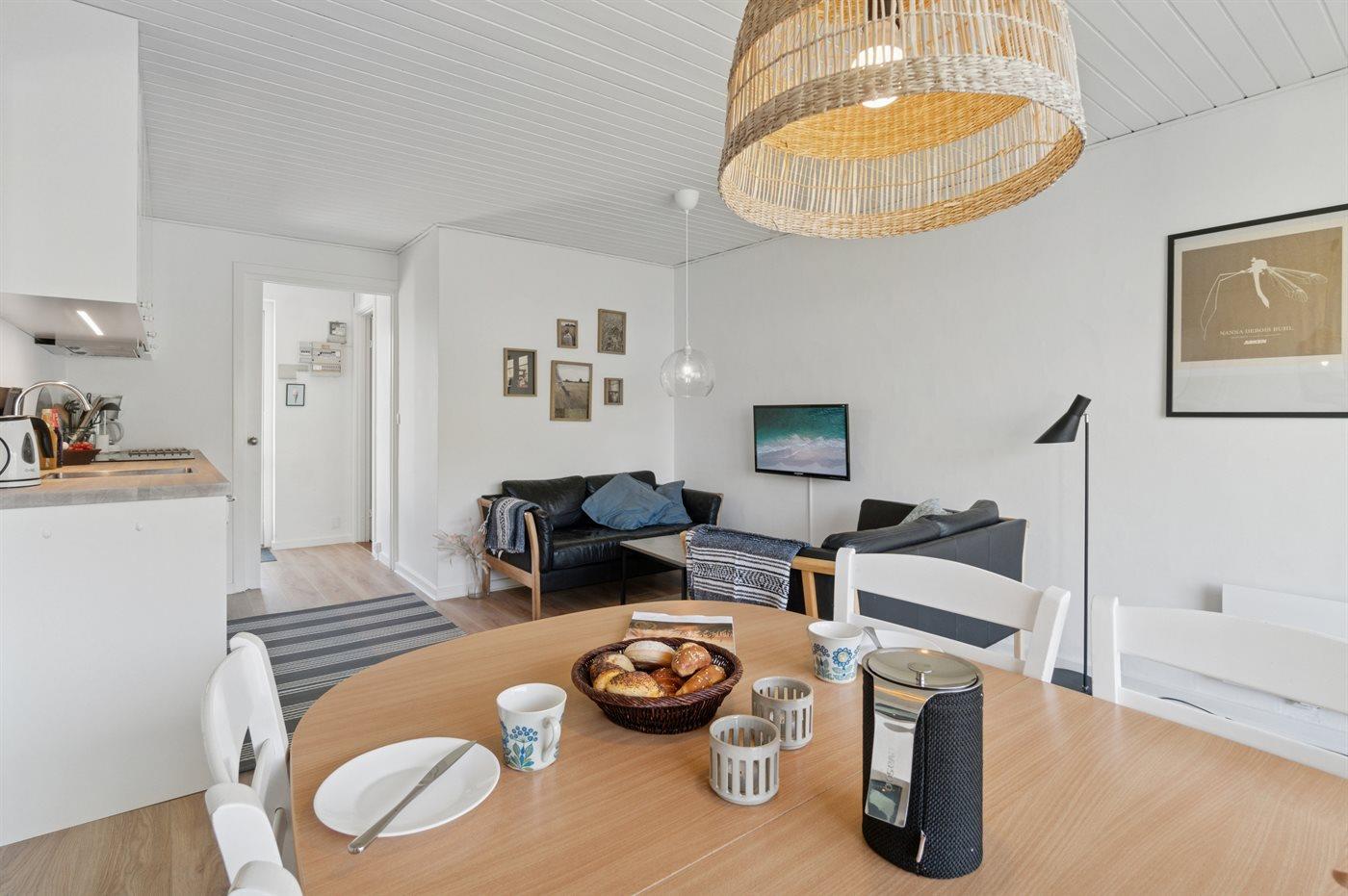 Eine komplett renovierte und einladende Ferienwohnung mit schönem Meerblick – sowohl von der Wohnung als auch von der ostwärts gelegenen Terrasse aus. Von der anderen Terrasse, auf der die Sonne ab Mittag scheint, hast du einen herrlichen Blick auf das hügelige Gelände, das so typisch für Sandkås ist, welches inzwischen zu einem der attraktivsten Ferienhausgebiete Bornholms zählt.