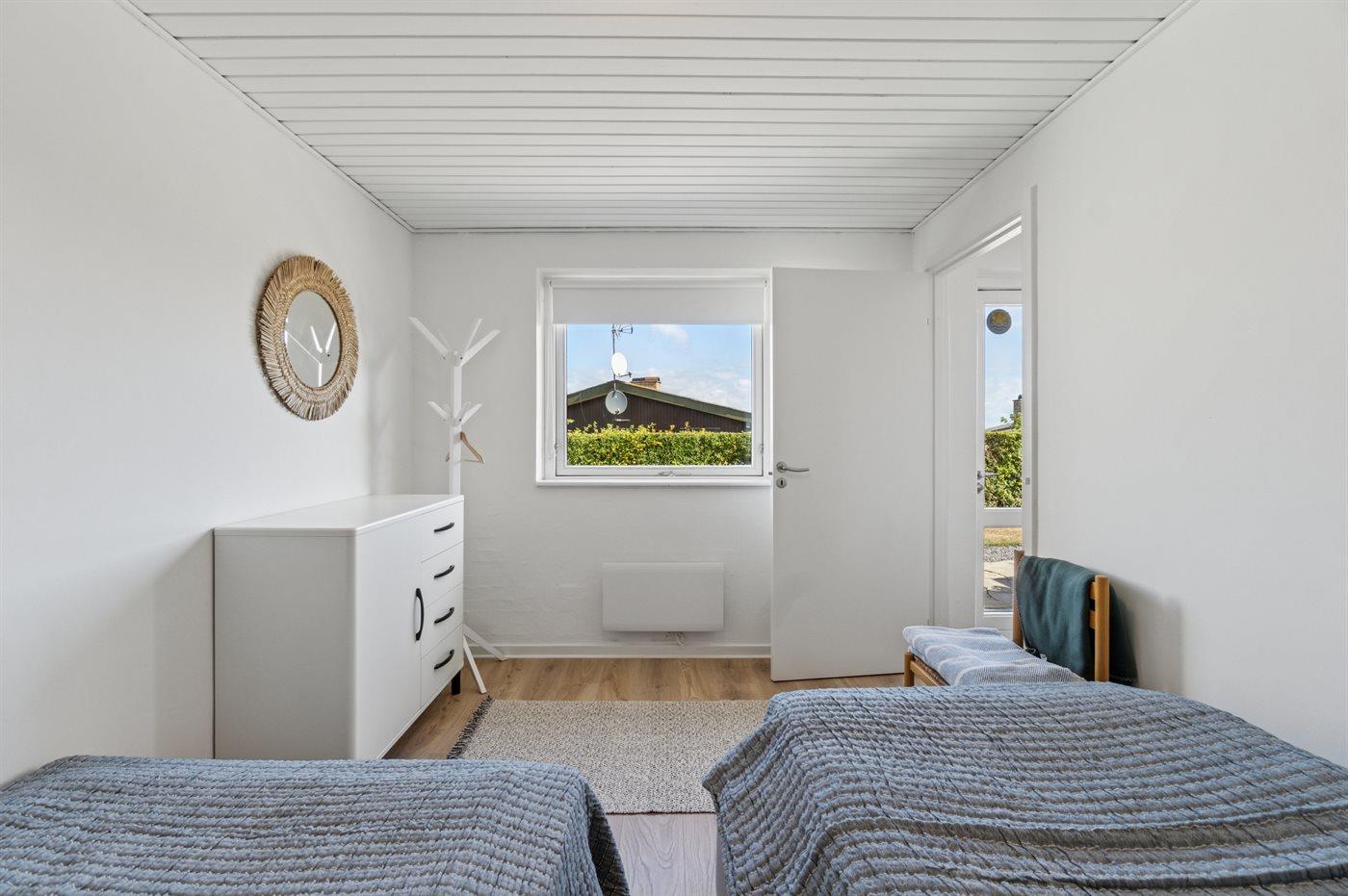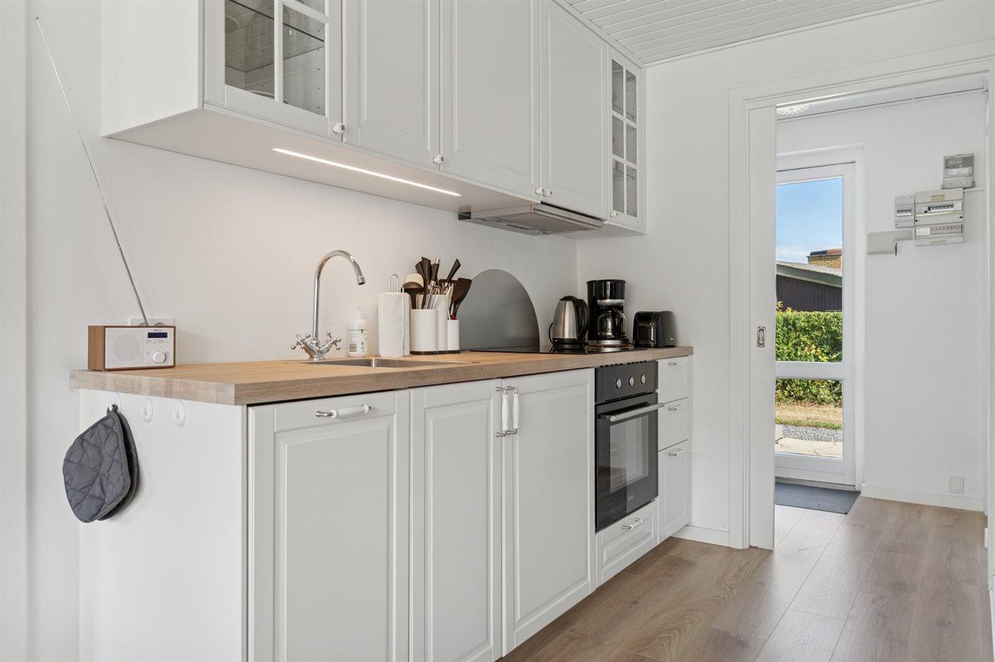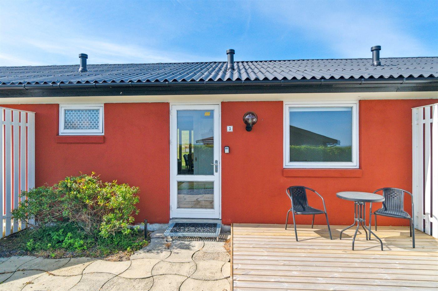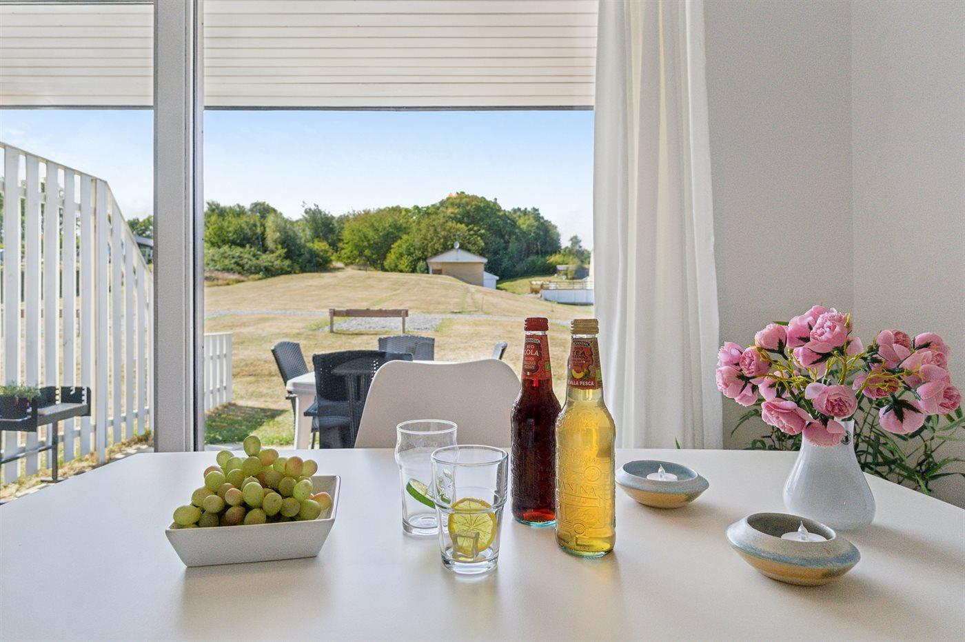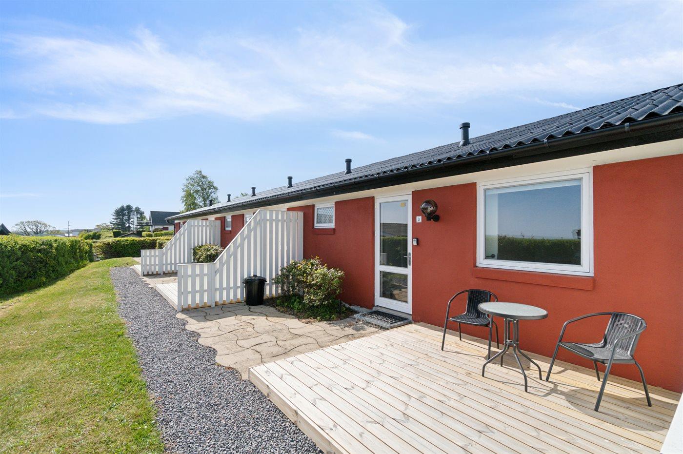 Ein komplett renoviertes und einladendes Reihenhaus mit schönem Meerblick – sowohl vom Inneren der Unterkunft als auch von der nach Osten ausgerichteten Terrasse. Auf der zweiten Terrasse, die zur Mittagszeit in der Sonne liegt, genießt du einen herrlichen Blick auf das hügelige Gelände, das so typisch für Sandkås ist – eines der beliebtesten Ferienhausgebiete Bornholms.