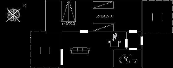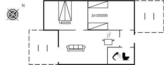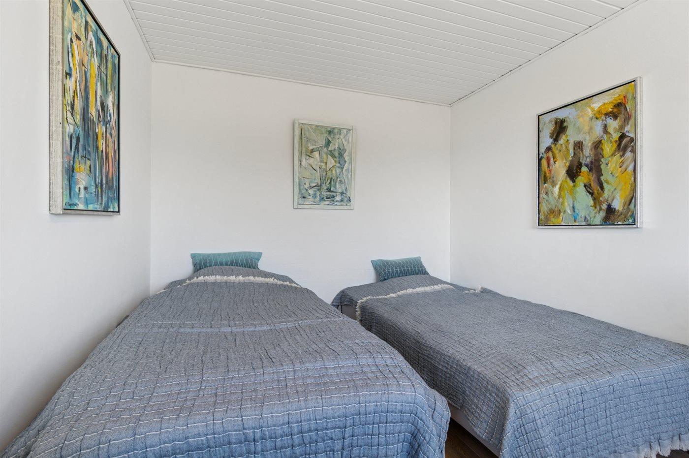 Die Schlafplätze verteilen sich auf 2 Schlafräume. 2 Schlafplätze in einem Doppelbett. 2 Schlafplätze in Einzelbetten.