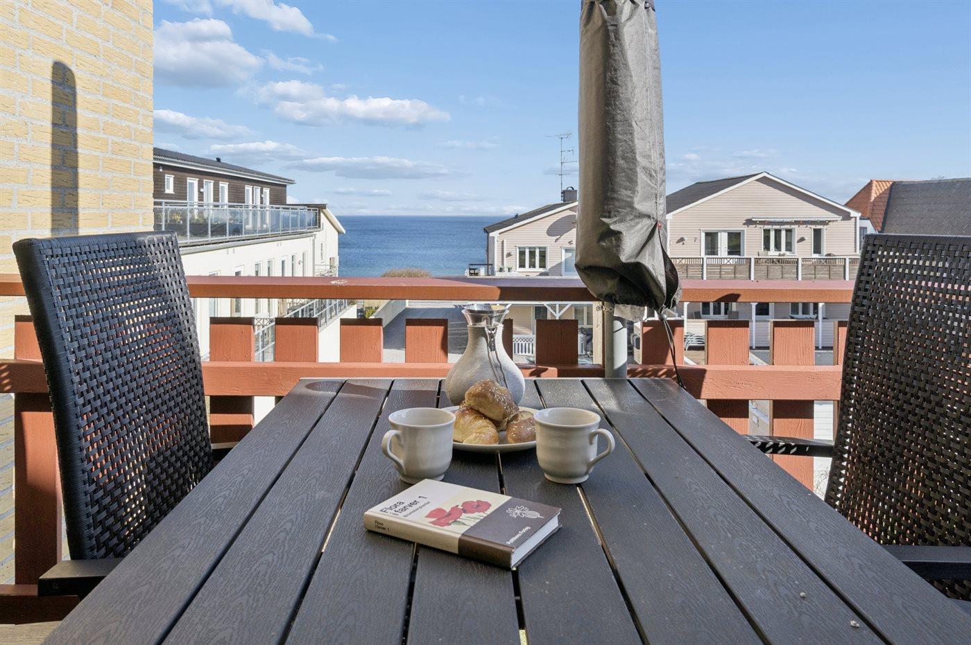 Moderne Ferienwohnung mit Meerblick, Balkon und Terrasse in Allinge, perfekt für entspannte Urlaubstage an der Ostsee.