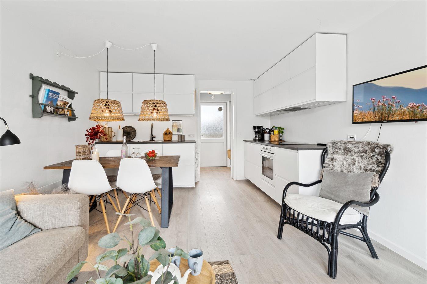 Diese Ferienwohnung wurde 2023 komplett renoviert und mit allem Notwendigen ausgestattet, was man für einen Urlaub braucht. Die Wohnung verfügt über zwei Zimmer mit Platz für vier Personen und ein bequemes Schlafsofa in der Küchen-Wohnzimmer, wo ebenfalls Platz für zwei Personen ist. Diese Ferienwohnung ist wirklich geschmackvoll eingerichtet, wobei großer Wert auf Details gelegt wurde.