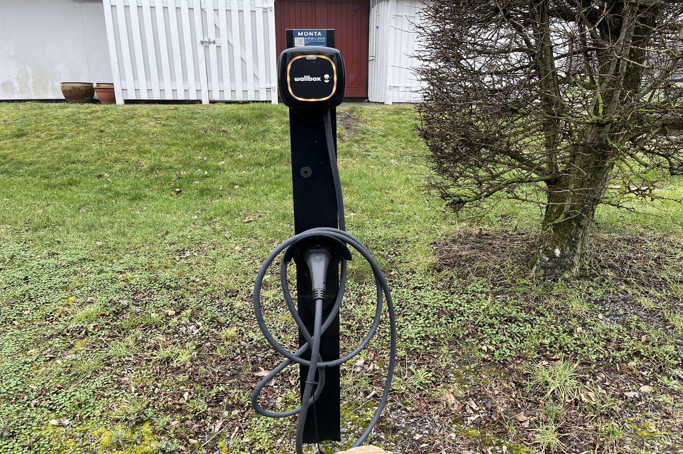 Es gibt die Möglichkeit, ein Elektroauto gegen Gebühr an einer gemeinsamen Ladestation zu laden (über Monta - 11 kWh - Typ 2 Stecker).