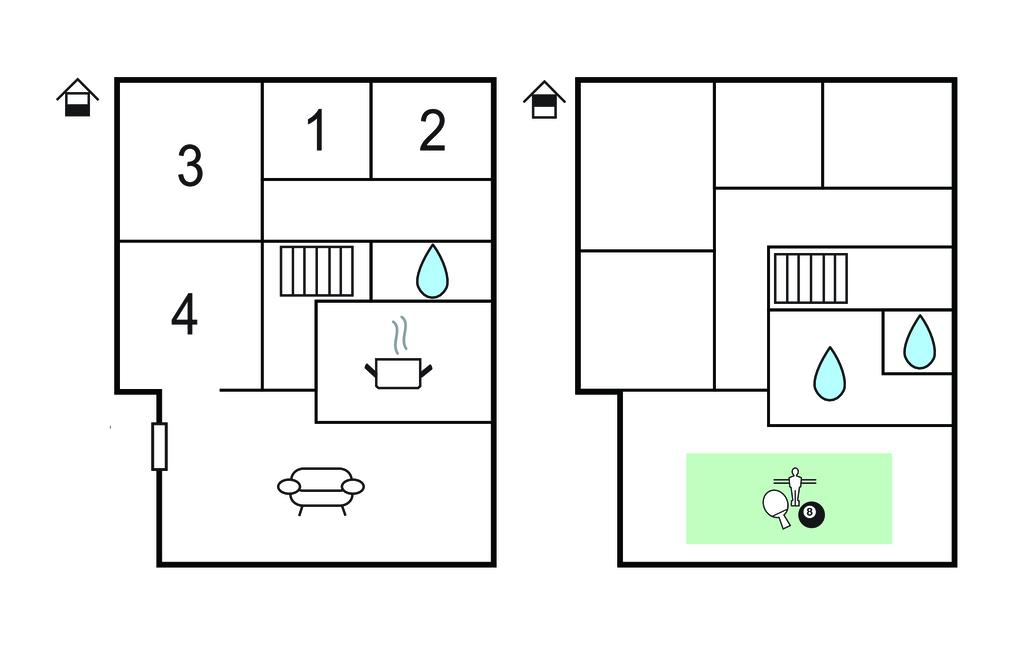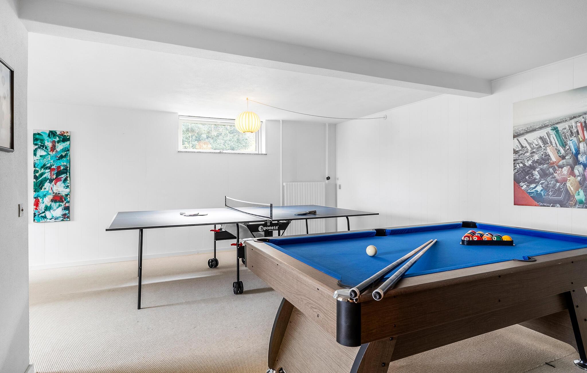Lassen Sie sich von der heimeligen Atmosphäre im Inneren des Hauses bezaubern. Der kombinierte Wohn- und Essbereich ist lichtdurchflutet und stilvoll eingerichtet. Genießen Sie hier Ihre Mahlzeiten mit Blick Richtung Meer. Entspannen Sie sich auf dem Ecksofa oder treten Sie direkt hinaus in den Garten. Für abwechslungsreiche Stunden steht Ihnen ein Aktivitätsraum mit Tischfußball, Pooltisch und Tischtennis zur Verfügung. Voll und ganz entspannen können Sie im hauseigenen Whirlpool.