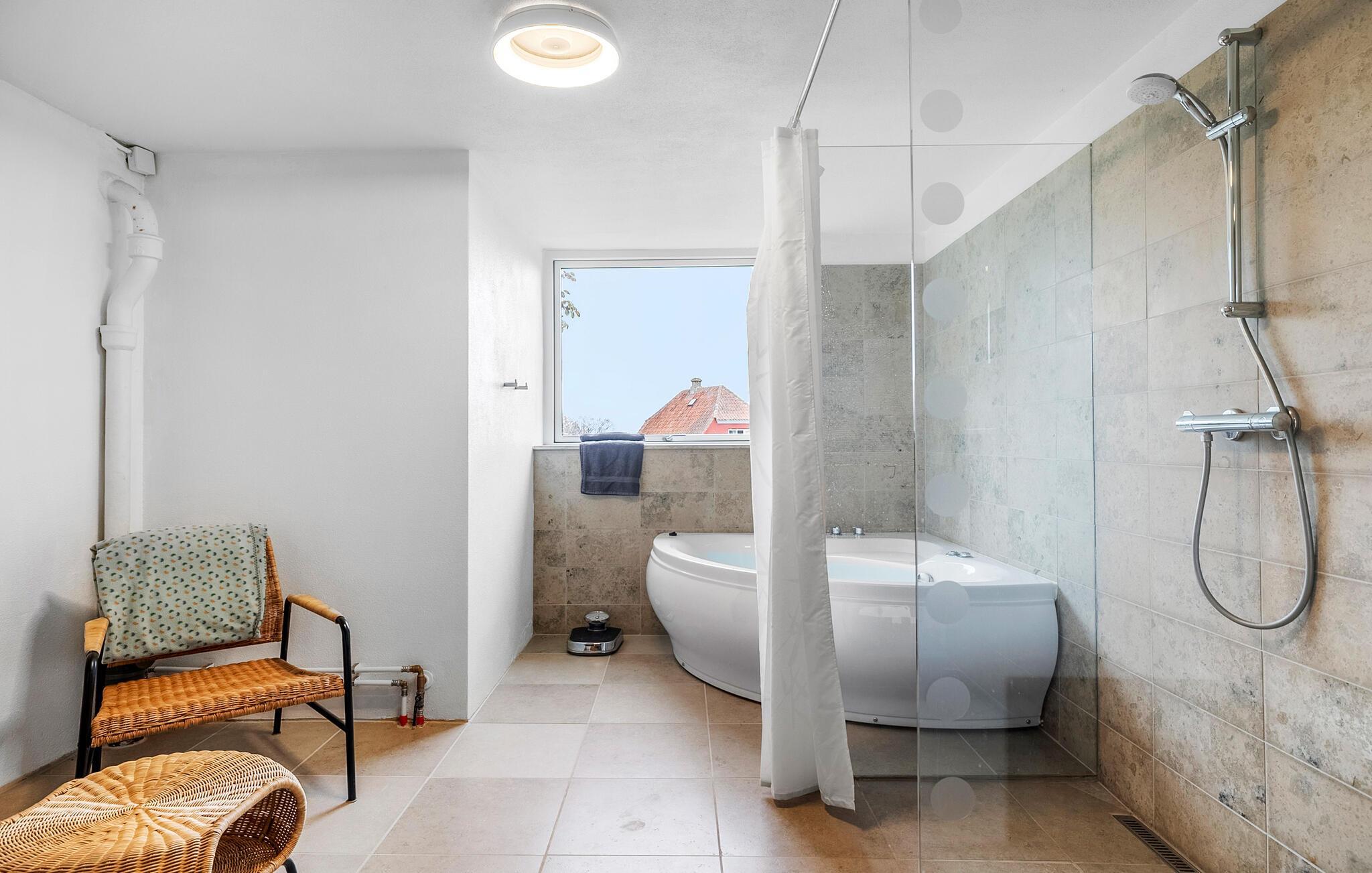 Ruhiges Ferienhaus in Allinge mit Meerblick, Aktivitätsraum und eigenem Whirlpool für entspannte Tage am Meer.