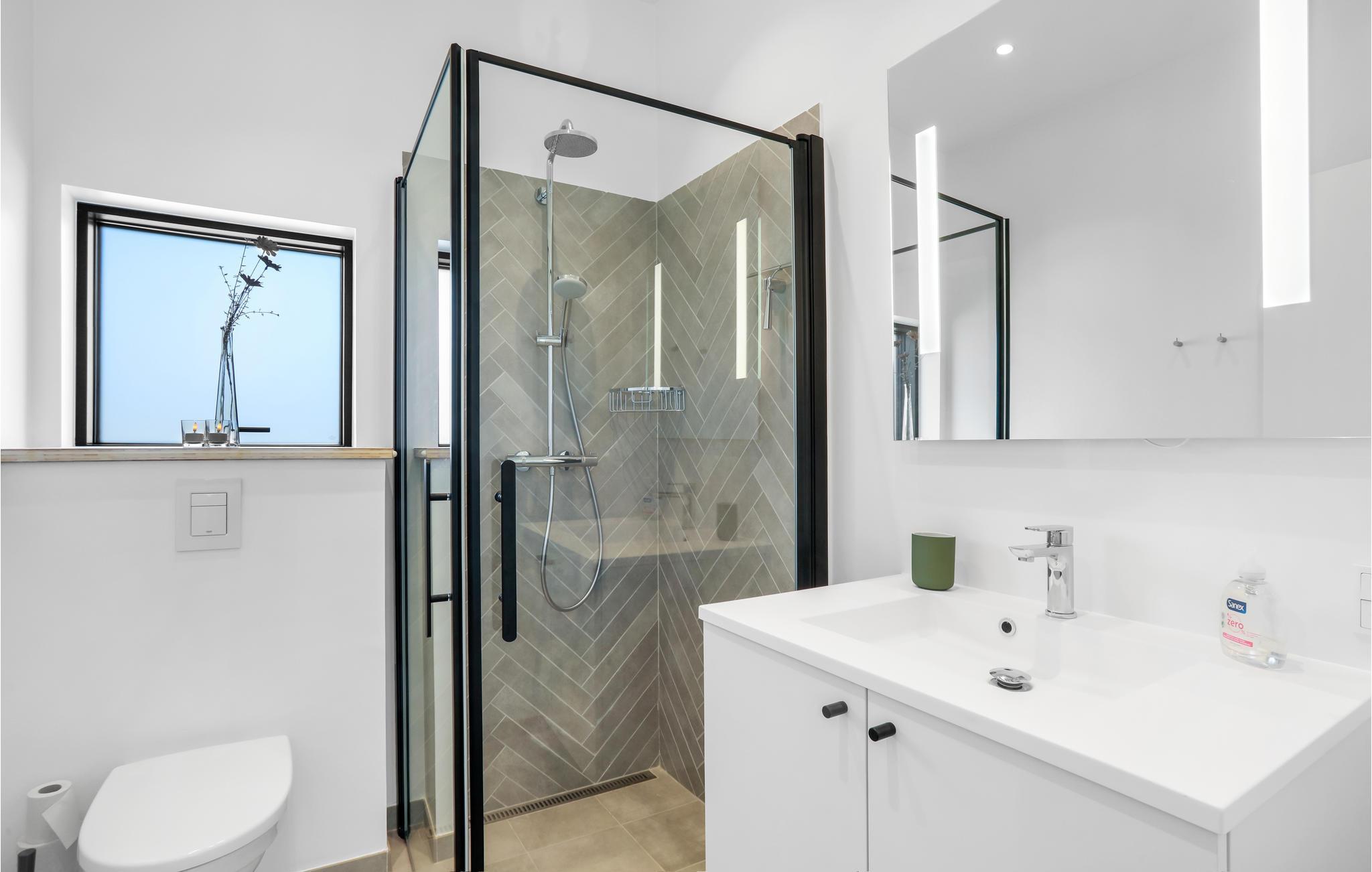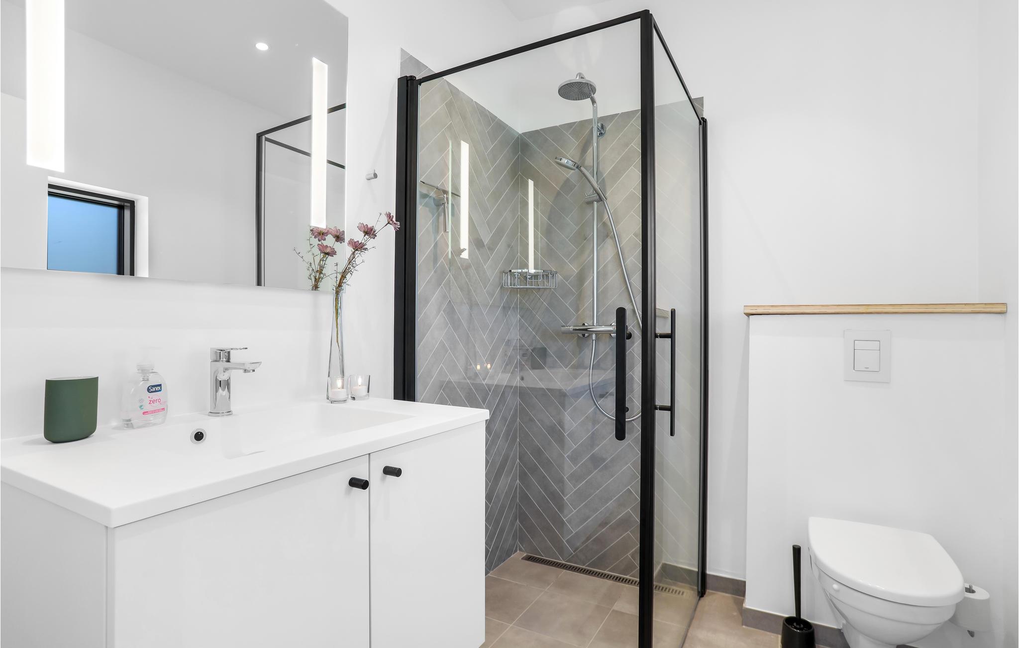 Das Haus ist hell und modern eingerichtet und garantiert einen qualitativ hochwertigen Aufenthalt im schönen Norden Bornholms. Im großzügigen Wohnzimmer mit Kamin werden Sie viele gemütliche Tage verbringen, an denen Sie es sich gemütlich machen können und Filme schauen, Musik hören, Spiele spielen oder sich einfach nett unterhalten. In der offenen, gut ausgestatteten Küche mit Essbereich gelingt das Zubereiten köstlichster Gerichte. Alle vier Schlafzimmer und die beiden Badezimmer des Hauses verfügen über eine komfortable Fußbodenheizung. Gleiches gilt für den Hauswirtschaftsraum, in dem sich eine Waschmaschine befindet.