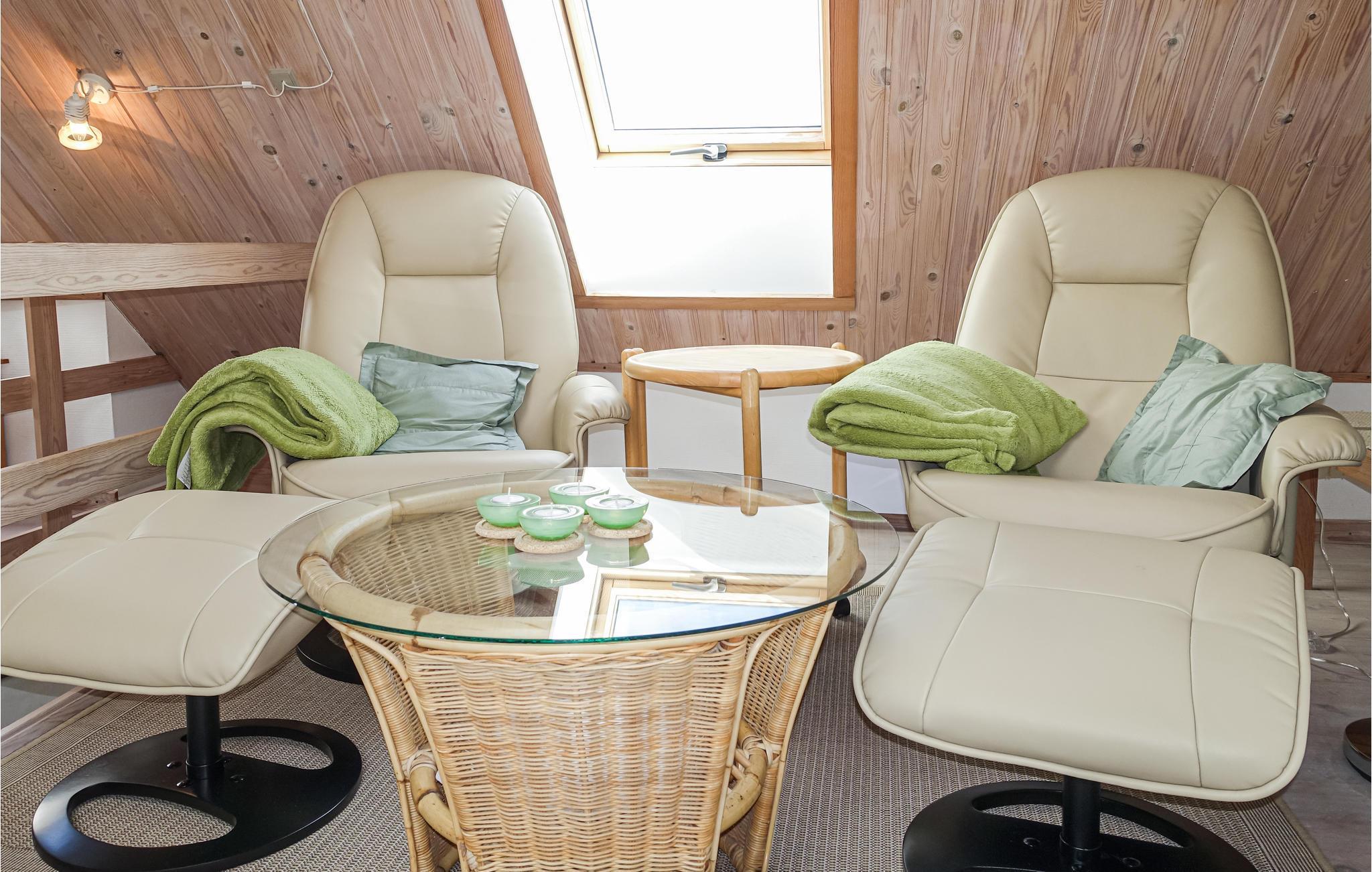 Im Erdgeschoss finden Sie ein Wohnzimmer mit Essbereich, in Verbindung mit einer offenen Küche mit Waschmaschine und Holzofen. Im Badezimmer wärmt Sie eine komfortable Fußbodenheizung. Im 1. Stock finden Sie einen weiteren gemütlichen Gemeinschaftsbereich mit Fernseher, sowie das Schlafzimmer des Hauses mit zwei Boxspringmatratzen. Die Zimmer im ersten Stock sind offen bis zum Dachgiebel, was eine besonders gemütliche Atmosphäre schafft.
