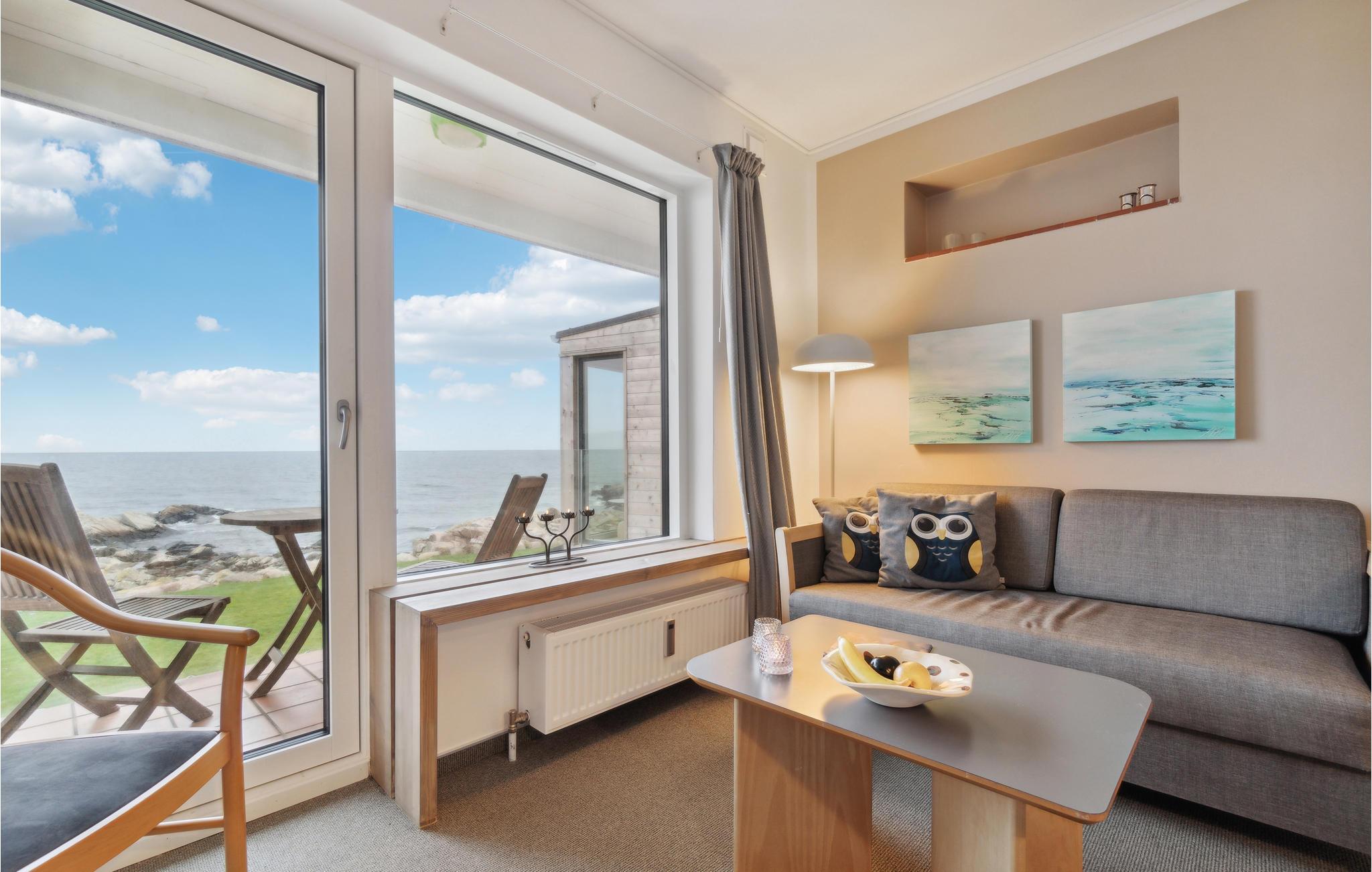 Das Herzstück des häuslichen Lebens ist das ansprechend eingerichtete Wohnzimmer mit Doppelschlafcouch und TV, in dem Sie viele gemeinsame Stunden verbringen werden. In der offenen Küche mit Essbereich können Sie mit wenig Mühe Ihre Lieblingsgerichte zubereiten. Im Badezimmer gibt es eine wärmende Fußbodenheizung. Die Wohnung verfügt über eine überdachte Terrasse mit herrlichem Panoramablick auf das Meer - den perfekten Ort, um Ihren Morgenkaffee oder ein Glas Wein am Abend zu genießen. Sollten Sie mit mehreren Paaren oder befreundeten Familien verreisen, können Sie je nach Verfügbarkeit weitere Ferienwohnungen in der schönen Ferienanlage hinzubuchen.