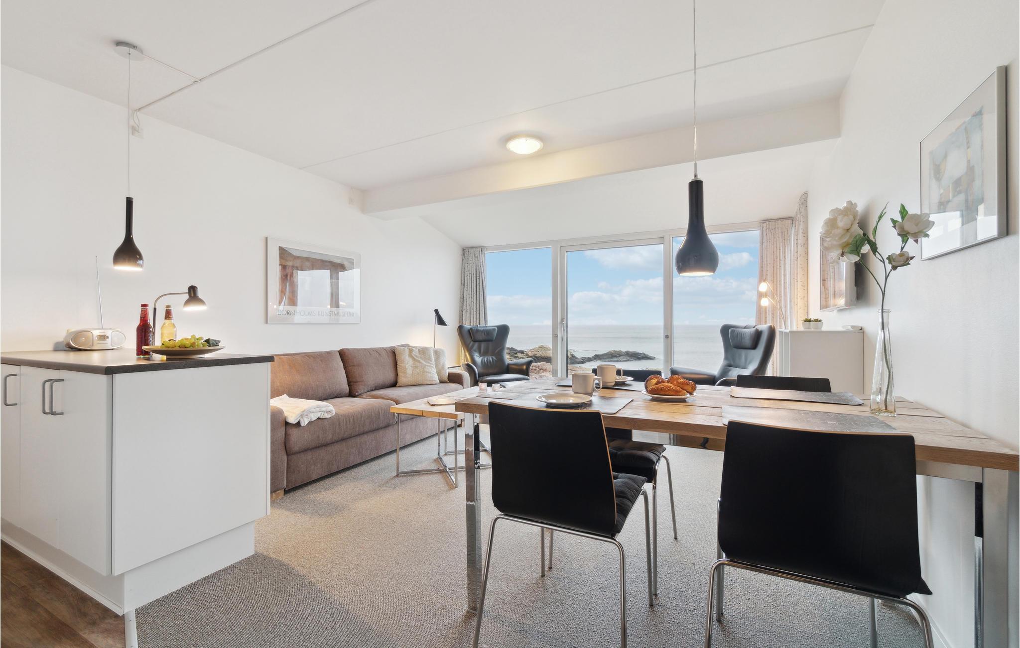 Die „Ferienapartments Romantik“ gehören zu den am besten gelegenen Ferienwohnungen von ganz Bornholm. Das Meer - mit Zugang über eine Badeleiter - ist nur wenige Meter von der Wohnung entfernt. Auf den Felsen sitzend können Sie Ihren Morgenkaffee genießen. Auf dem gleichen Grundstück befindet sich das bekannte Hotel Nordlandet mit zwei Restaurants, darunter ein Gourmetrestaurant. In den beiden kleinen Orten finden Sie gute Einkaufsmöglichkeiten, Restaurants, Minigolf usw. Es sind nur 700 m zu einem schönen Sandstrand und ca. 1 km zum schönen Naturgebiet Hammeren und zur Burgruine Hammershus. Die einladenden Apartments bieten allesamt einen herrlichen Blick auf die Klippen und das Meer. Alle Wohnungen verfügen über kostenloses Internet und Zugang zu einem gemeinsamen, meerseitigen Gartenbereich und einem gemeinsamen, abschließbaren Fahrradraum mit Elektroladestation.