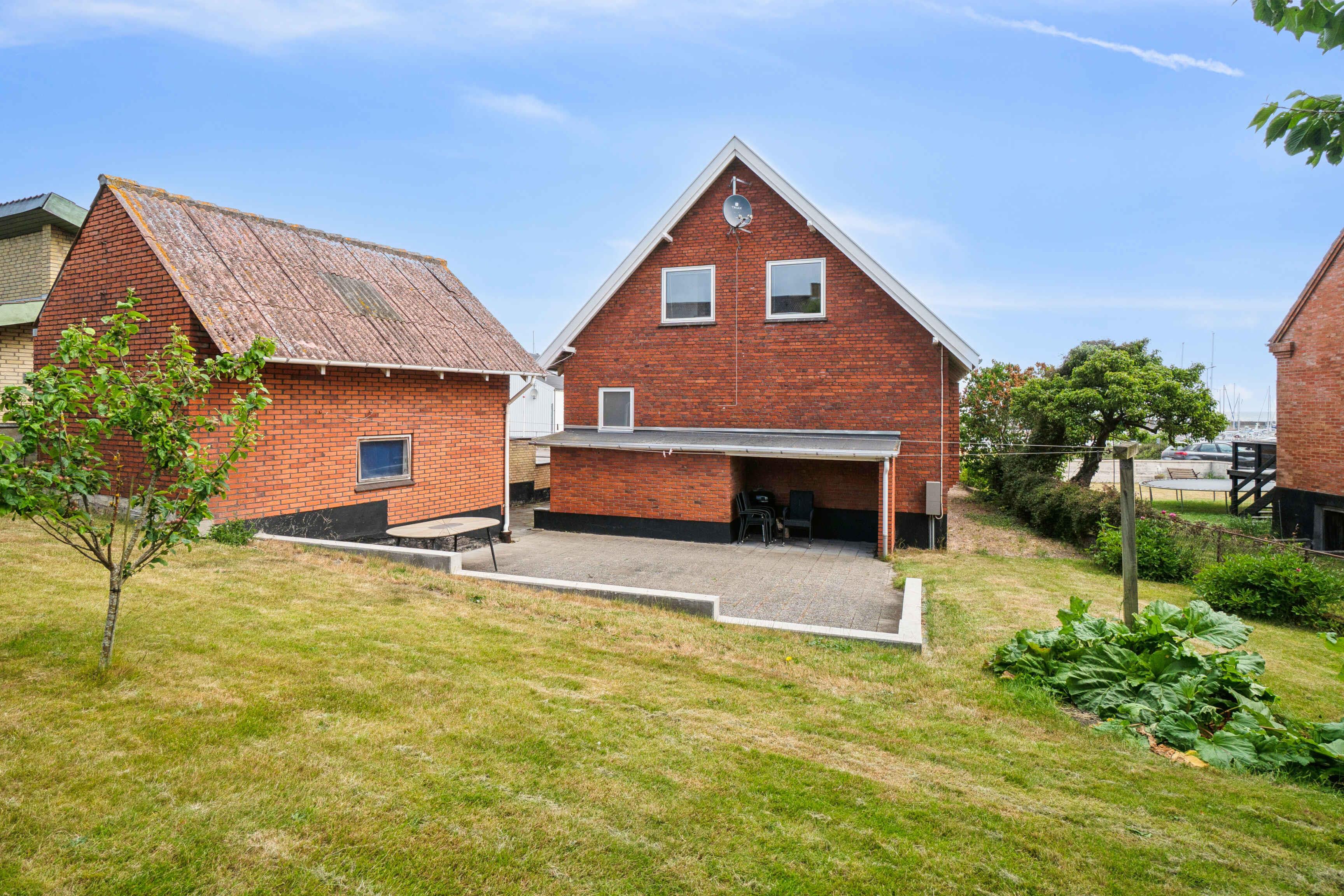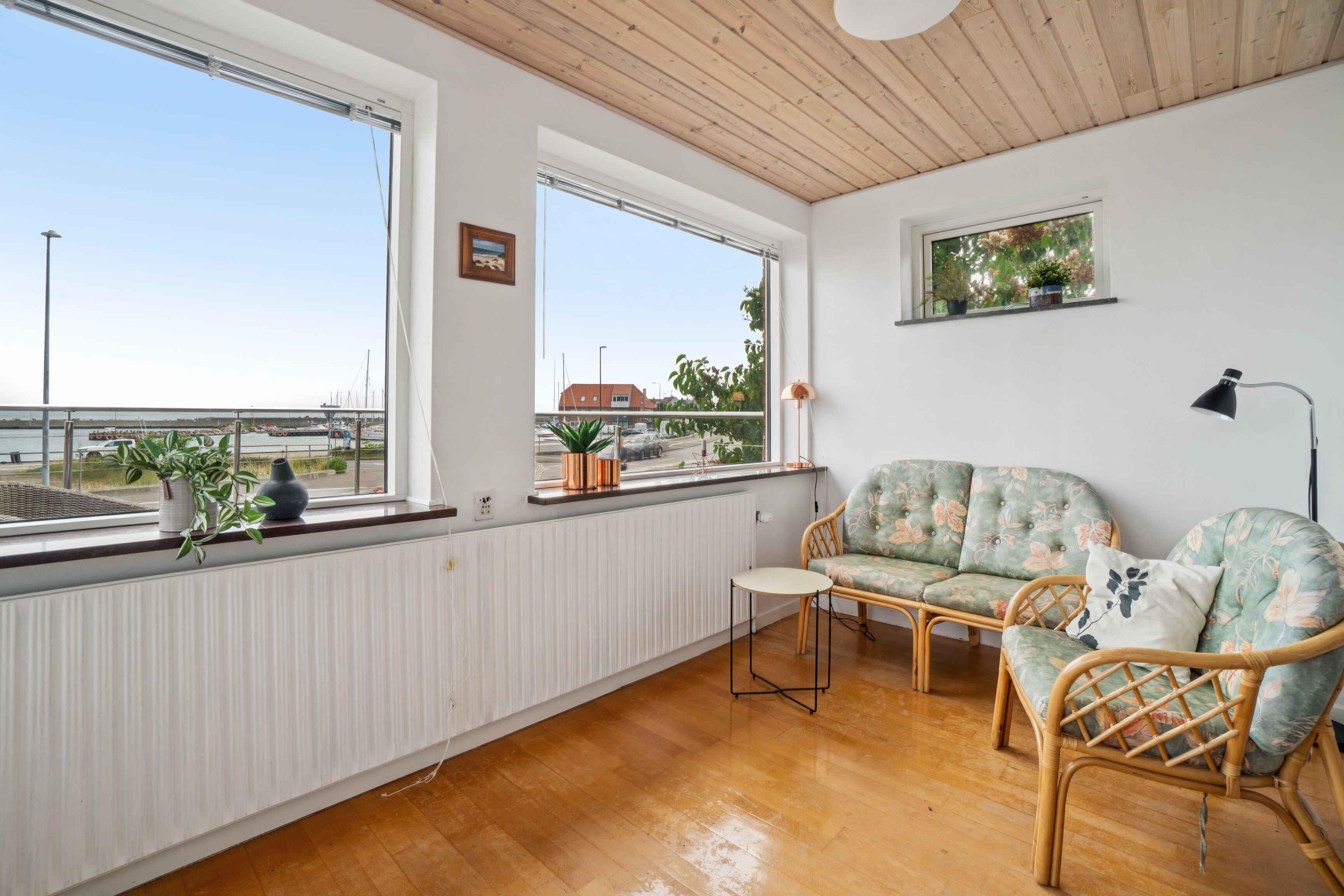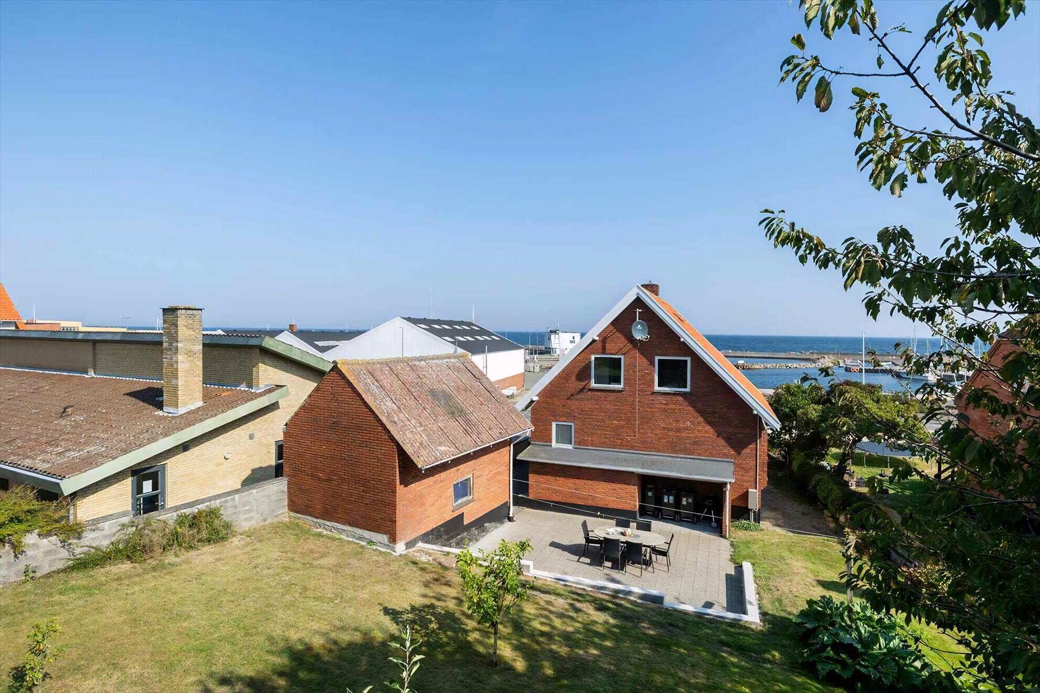 Helles Stadthaus bei Tejn Hafen mit Meerblick. Drei Schlafzimmer, Küche, Wohnzimmer, zwei Bäder. Terrasse und Balkon. Nahe Hafenbad, Einkauf und Natur – ideal für einen ruhigen Urlaub auf Bornholm.