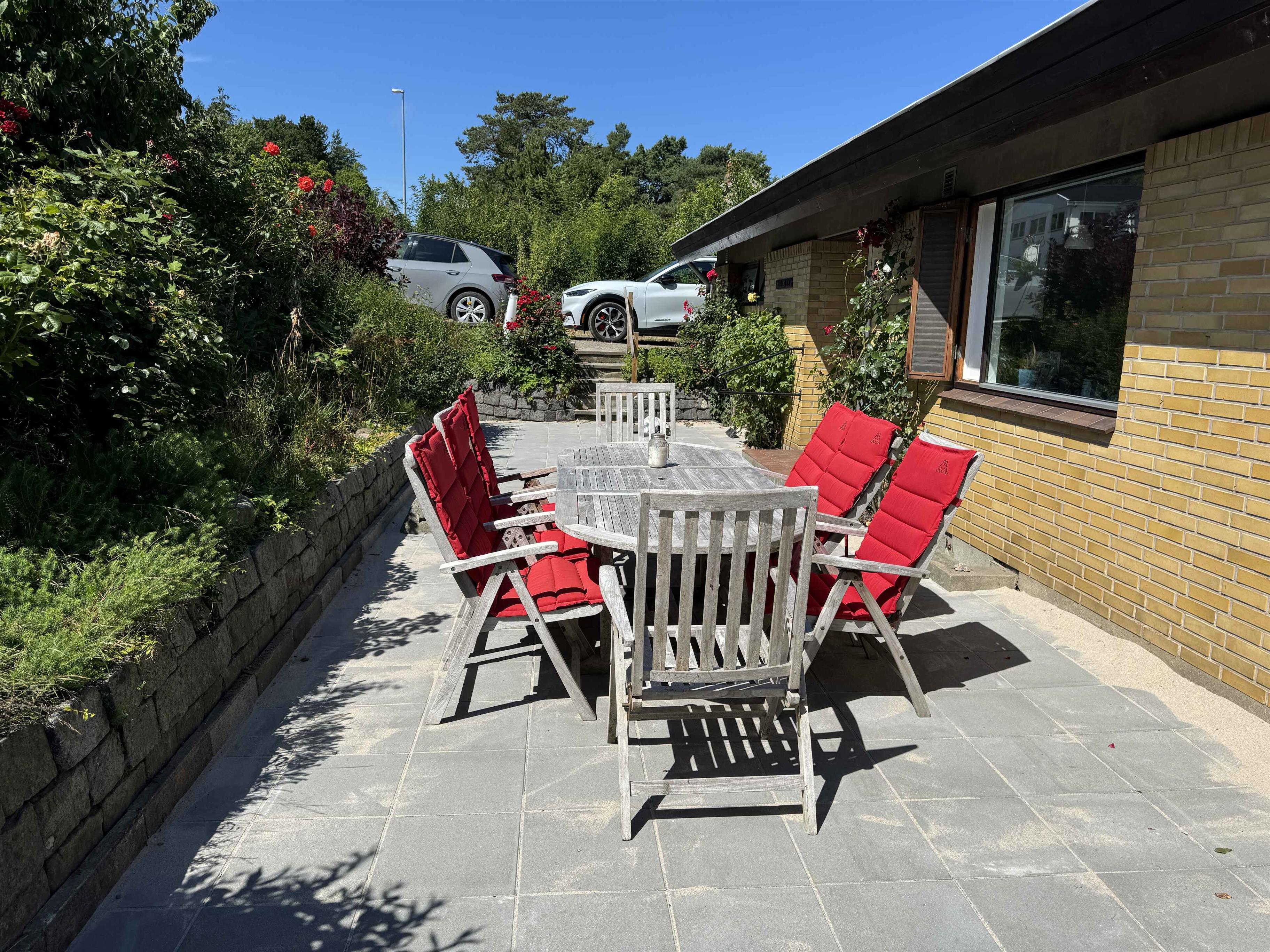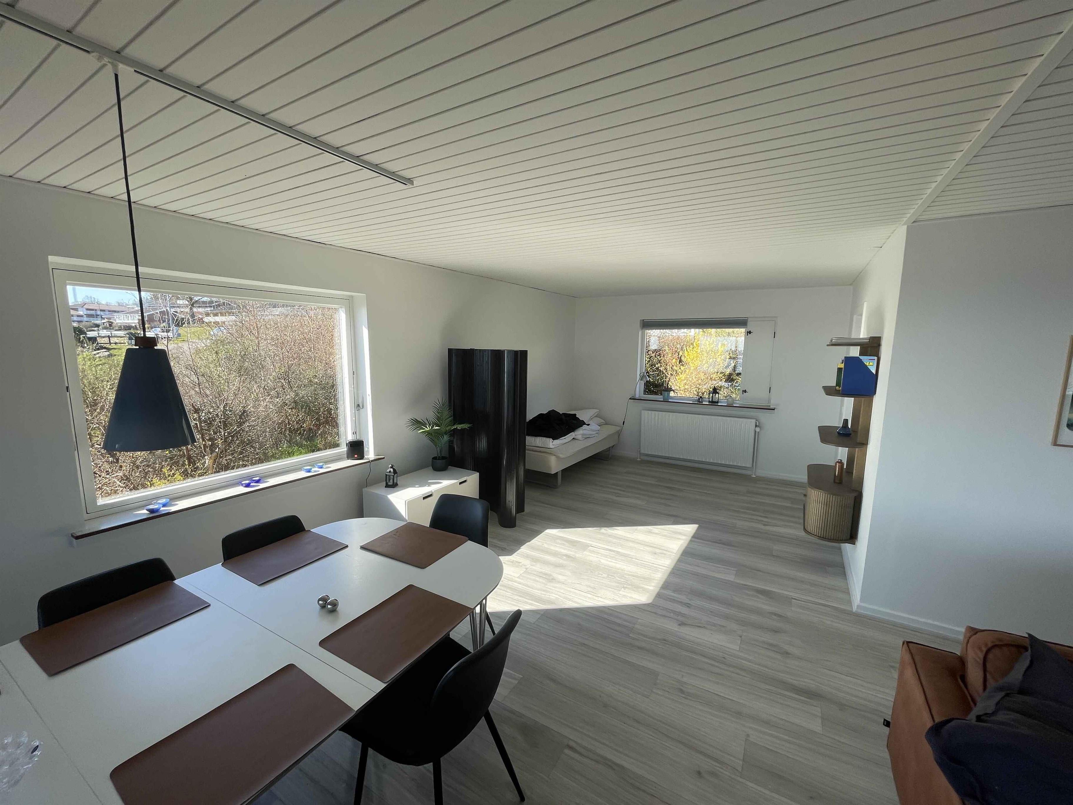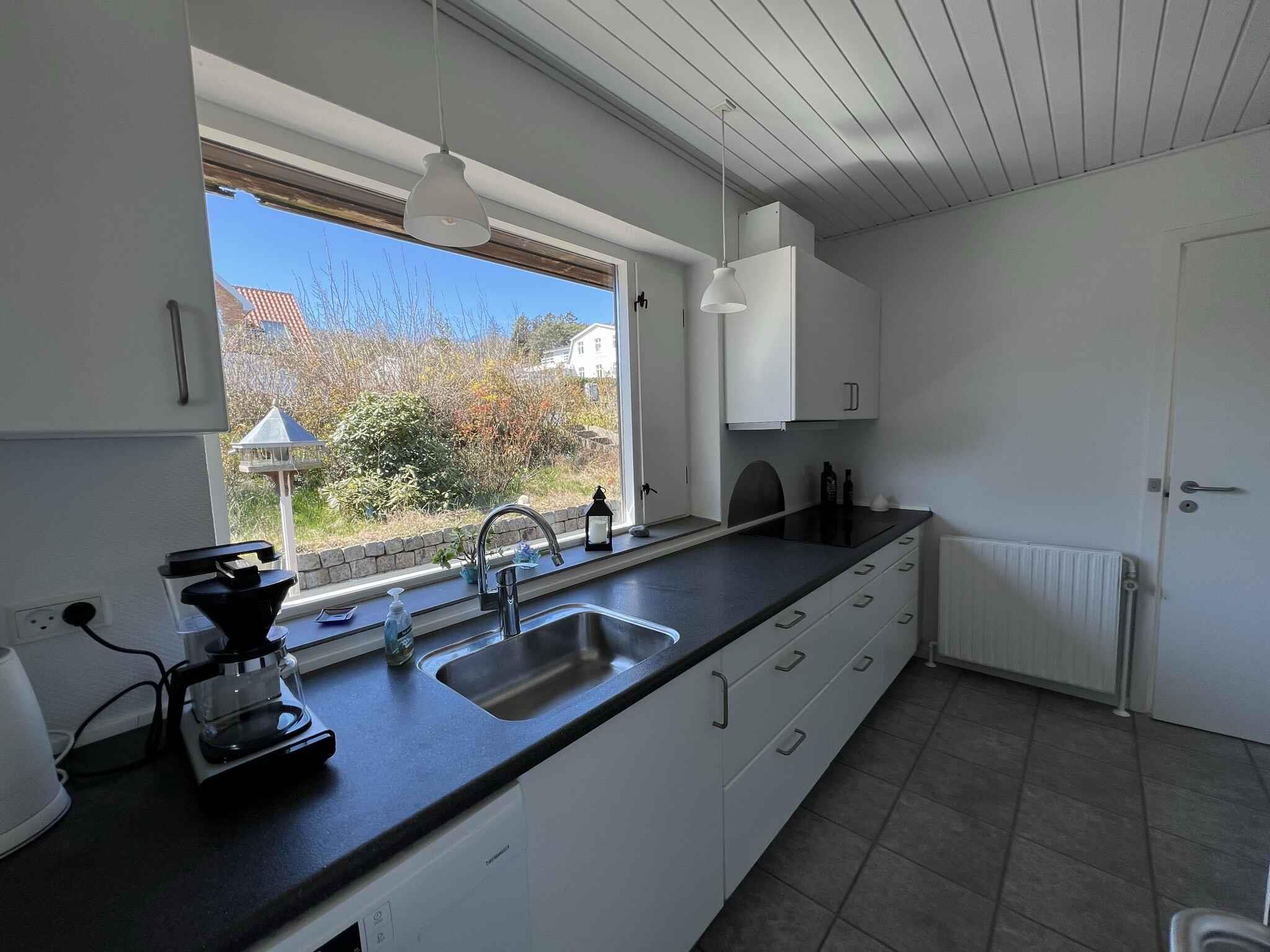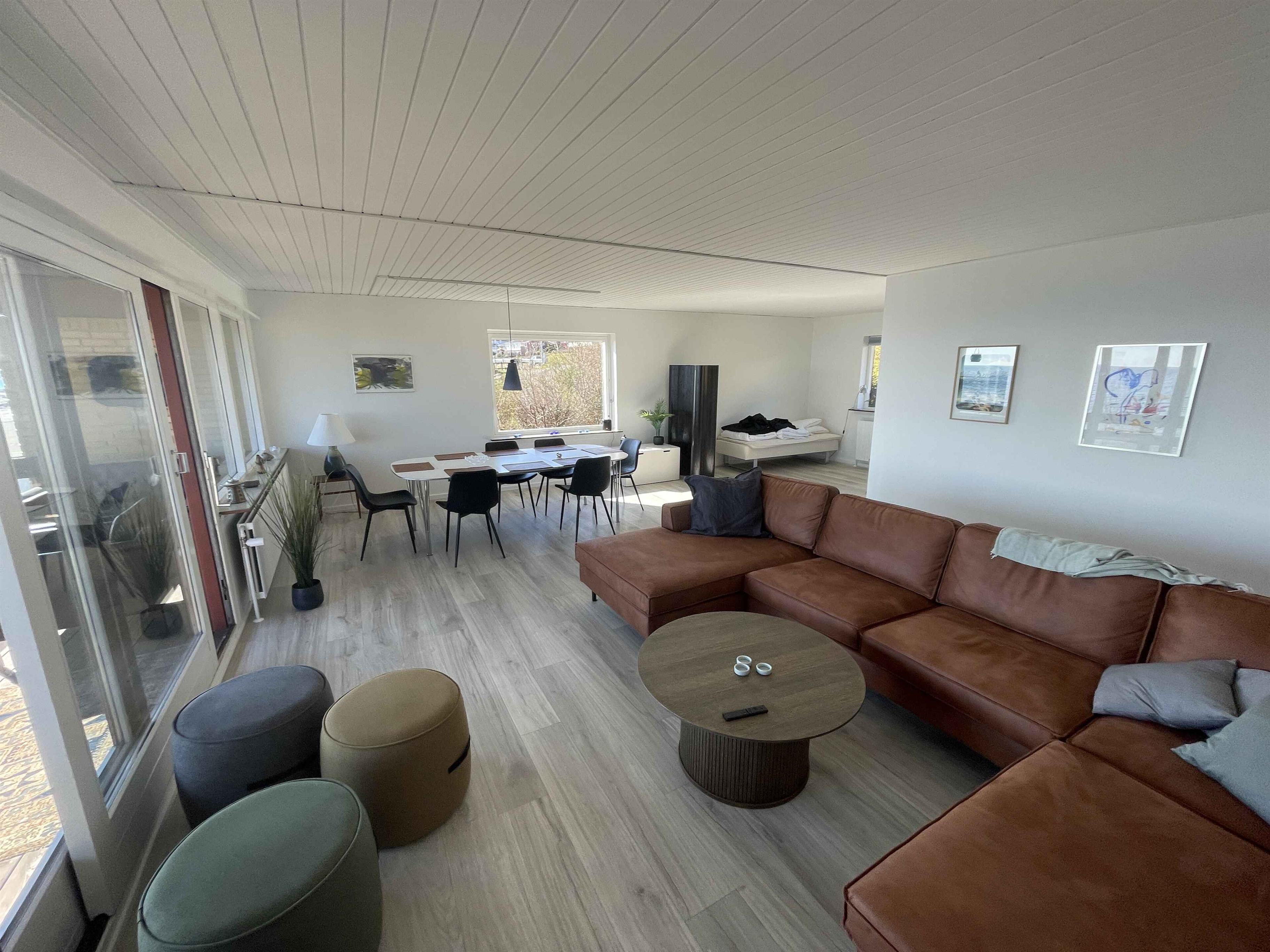 Dieses großzügige Ferienhaus liegt in erster Reihe bei Sandkaas auf Bornholm und bietet einen einzigartigen, ungestörten Blick auf die Ostsee. Sie wohnen hier nahe Felsenküste und Sandstrand – das Meer ist ein natürlicher Teil des Urlaubs. Das Haus wird im Erdgeschoss vermietet und umfasst ca. 128 m². Innen präsentiert sich die Unterkunft hell und schlicht mit weißen Wänden und Decken sowie hellen Böden für eine ruhige Atmosphäre. Der große Wohn- und Essbereich ist der Mittelpunkt des Hauses mit Platz zum Entspannen und Zusammensein. Große Fenster sorgen für viel Licht und einen herrlichen Meerblick. Von hier aus gelangt man direkt auf die überdachte Terrasse mit sechs Sitzplätzen – ideal auch bei wechselhaftem Wetter. Die Küche ist separat und funktional eingerichtet mit ausreichend Arbeitsfläche. Das Haus verfügt über zwei Schlafzimmer mit Doppelbetten sowie ein Doppelschlafsofa im Wohnzimmer, insgesamt sechs Schlafplätze. Bad und separates WC sind original, gepflegt und funktional. Außen liegt das Ferienhaus auf einem hügeligen Naturgrundstück mit direktem Zugang zum Strand. Der Garten ist natürlich gehalten, mit Fokus auf Lage und Aussicht. Zudem gibt es eine Terrasse zur Straßenseite mit Essplatz. Sandkaas ist bekannt für seine schöne Felsenküste, gute Bademöglichkeiten und ruhige Atmosphäre sowie die Nähe zu Allinge und Tejn mit Einkaufsmöglichkeiten, Hafen und Restaurants. Ideal für Gäste, die Lage, Aussicht und Platz schätzen und einen entspannten Urlaub am Meer verbringen möchten. Achtung: Wird nicht für gewerbliche Nutzung vermietet.