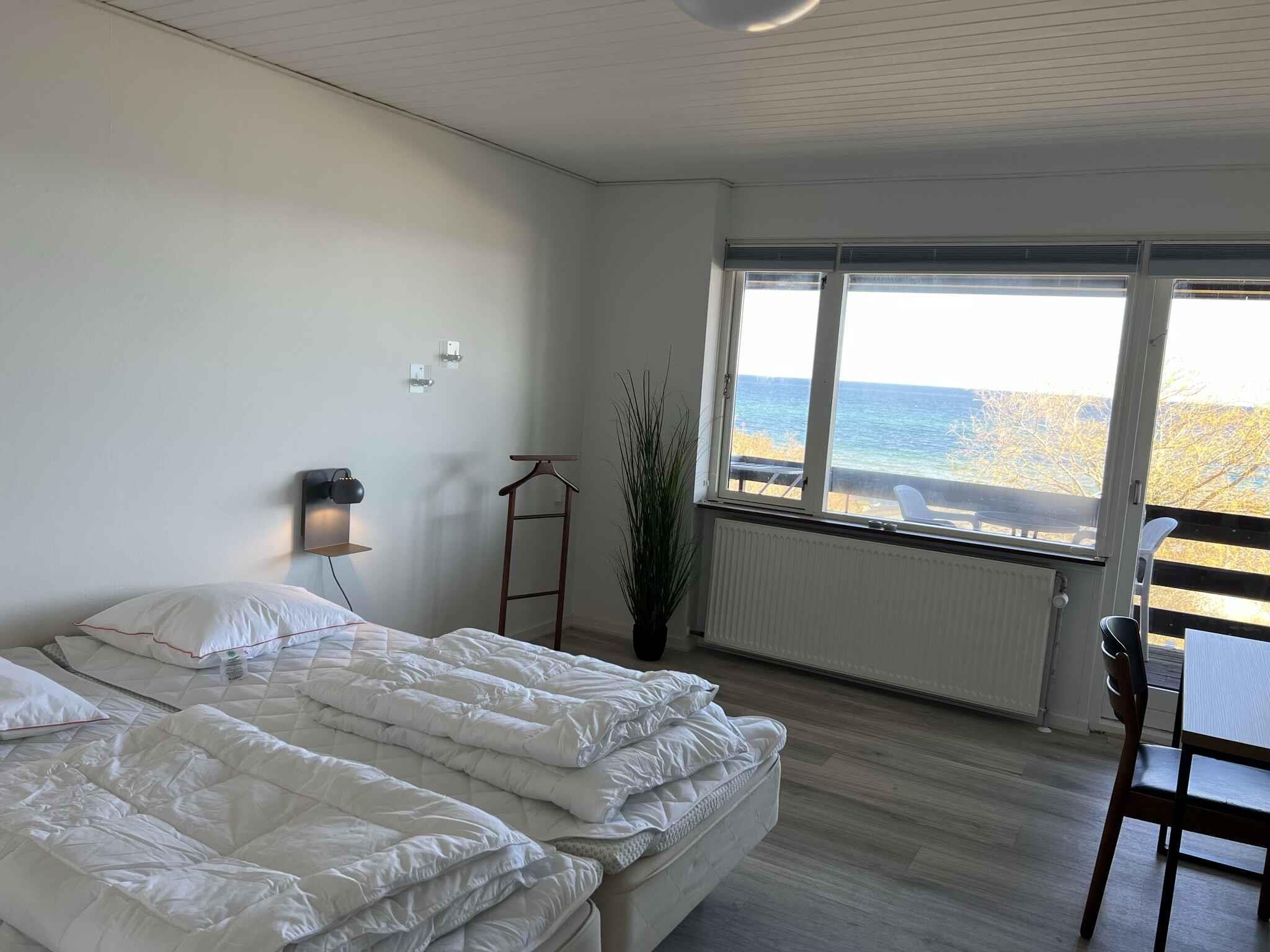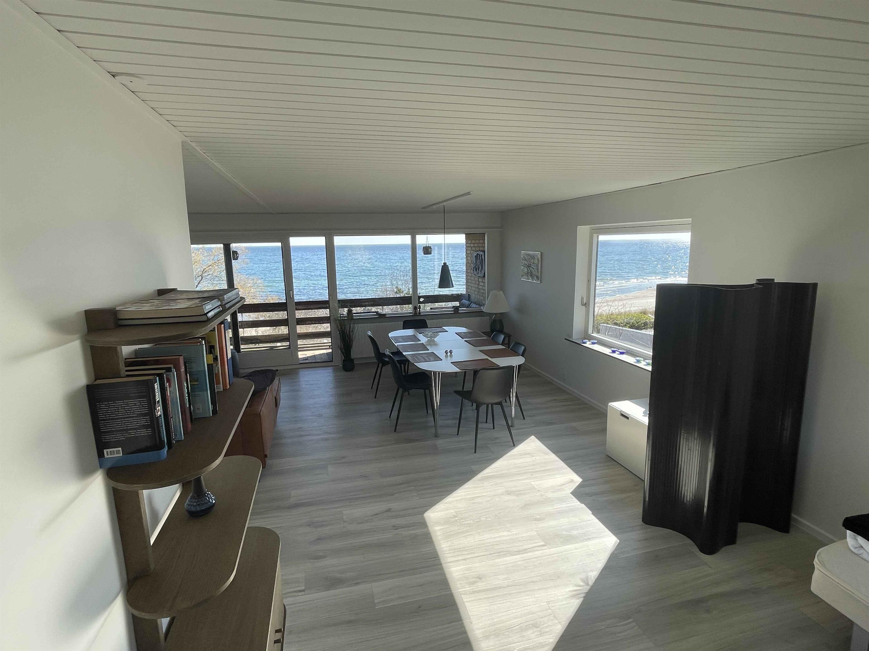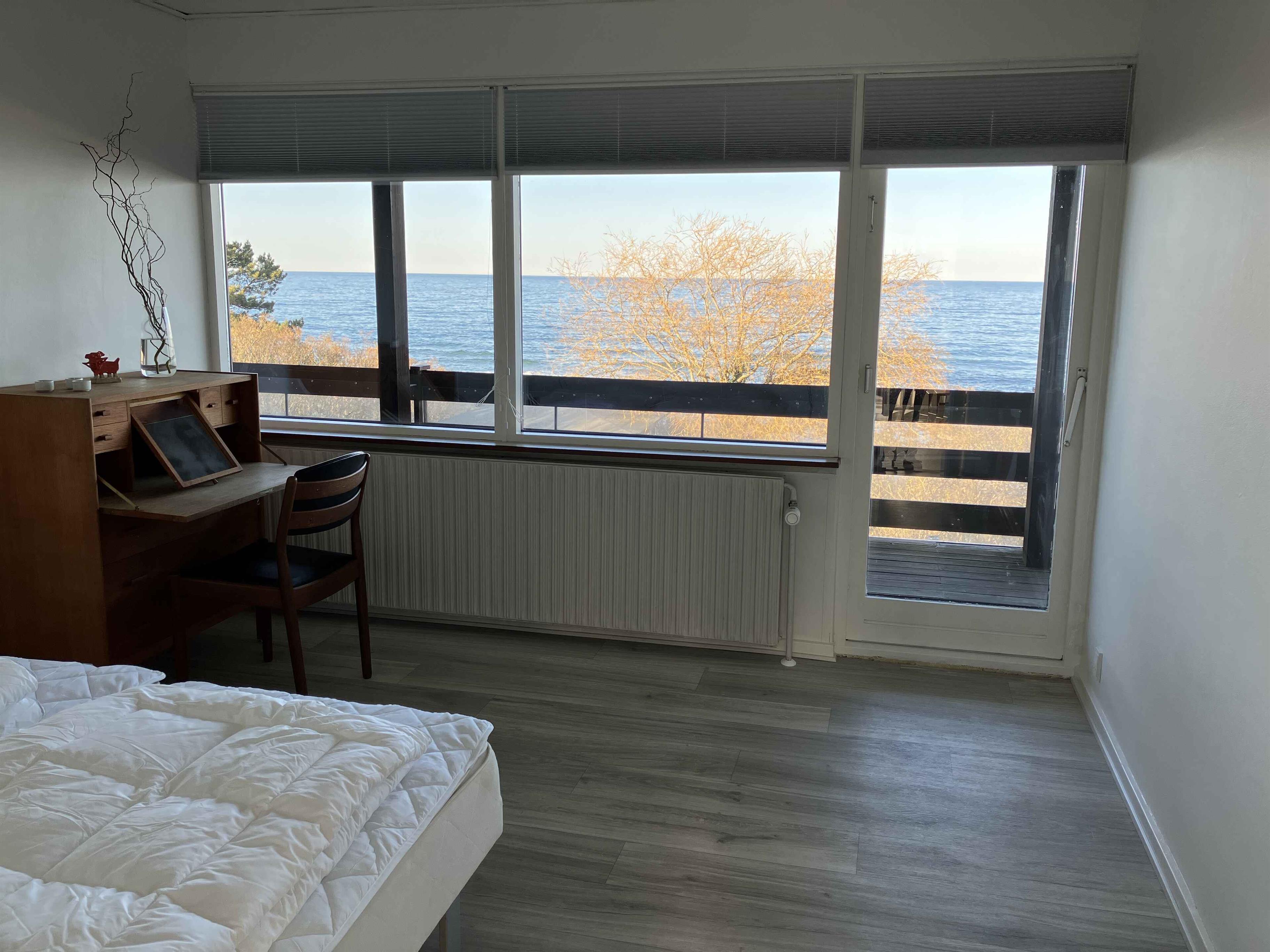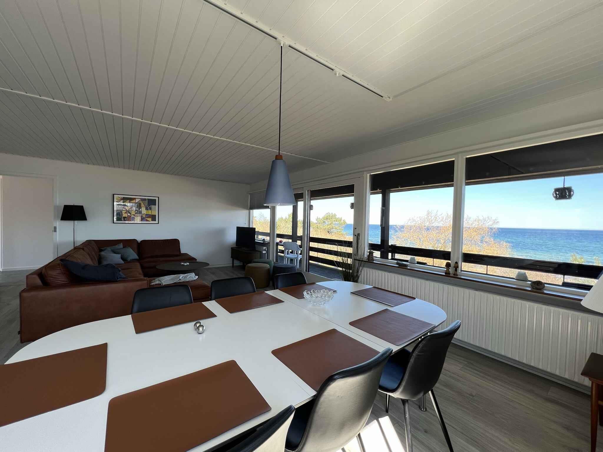 Ferienhaus in erster Reihe bei Sandkaas auf Bornholm mit schönem, ungestörtem Meerblick. 128 m² im Erdgeschoss, helle Einrichtung, zwei Schlafzimmer und Schlafsofa für 6 Personen. Überdachte Terrasse zum Meer und direkter Strandzugang.