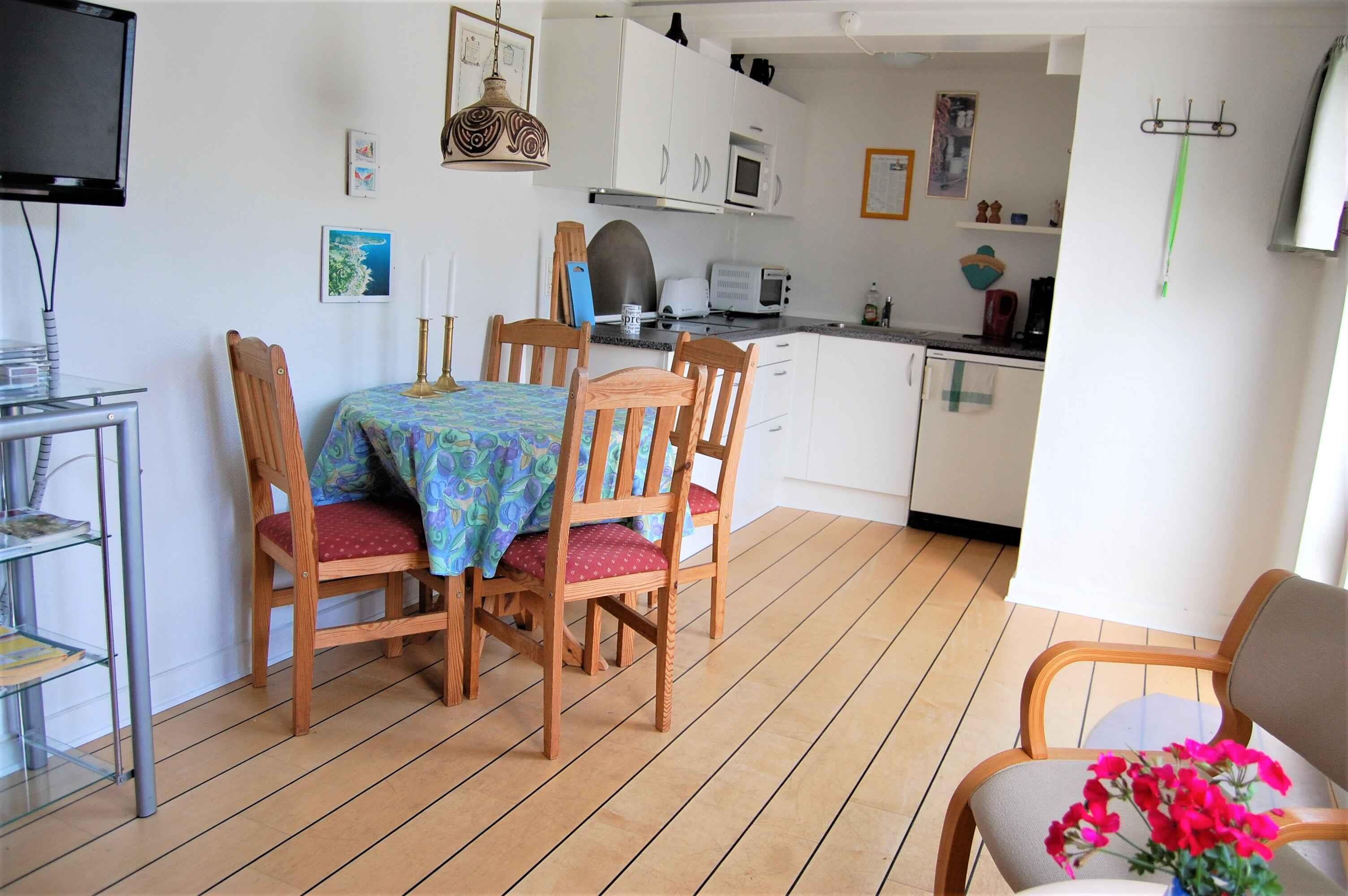 Willkommen in dieser gemütlichen 35 qm großen Ferienwohnung für die Familieauf vier Personen oder eine kleine Gruppe von Freunden. Die Ferienwohnung verfügt über 1 Schlafzimmer mit 4 Etagenbetten, eine große private möblierte Sonnenterrasse von 30 m2 mit Grill und einen umzäunten Garten mit Südlage. Freuen Sie sich darauf, den Urlaub in dieser wunderschönen Umgebung mit leckerem Grillen, Gesellschaftsspielen und gemütlicher Zeit mit Familie oder Freunden zu genießen. Außerdem gibt es 1 Badezimmer und ein gemütliches kleineres Wohnzimmer mit Essbereich für 4 Personen, einen kleineren Sofabereich mit TV und eine kleine, aber gut ausgestattete Küche unter anderem mit Kühlschrank, Gefrierschrank, Backofen, Wasserkocher und Kochplatten. Hier finden Sie alles, was Sie brauchen, um während Ihres Aufenthalts schöne Mahlzeiten zuzubereiten. Von der Ferienwohnung aus sind es nur wenige Gehminuten bis zum schönen Strand (200 Meter). Kilometerlange Küsten- und Naturpfade erwarten Sie hier rund um Hammershus – freuen Sie sich darauf, die Gegend zu erkunden und mehr über die fantastische Natur Bornholms zu erfahren. In Sandvig erleben Sie die wunderschöne Kombination aus hoch aufragenden Klippen und wunderschönem Strand. Ein perfekter Ort für einen aktiven Urlaub, unter anderem mit Wandern, Laufen, Schwimmen und sogar Abseilen. Die Wohnung ist außerdem ein perfekter Ausgangspunkt für die vielen Sehenswürdigkeiten und Aktivitäten der Insel. Besuchen Sie unter anderem die Burgruine Hammershus, die gelbe Kirche in Allinge oder den Opalsee. In der Miete ist der gesamte Verbrauch enthalten. Haustiere erlaubt.