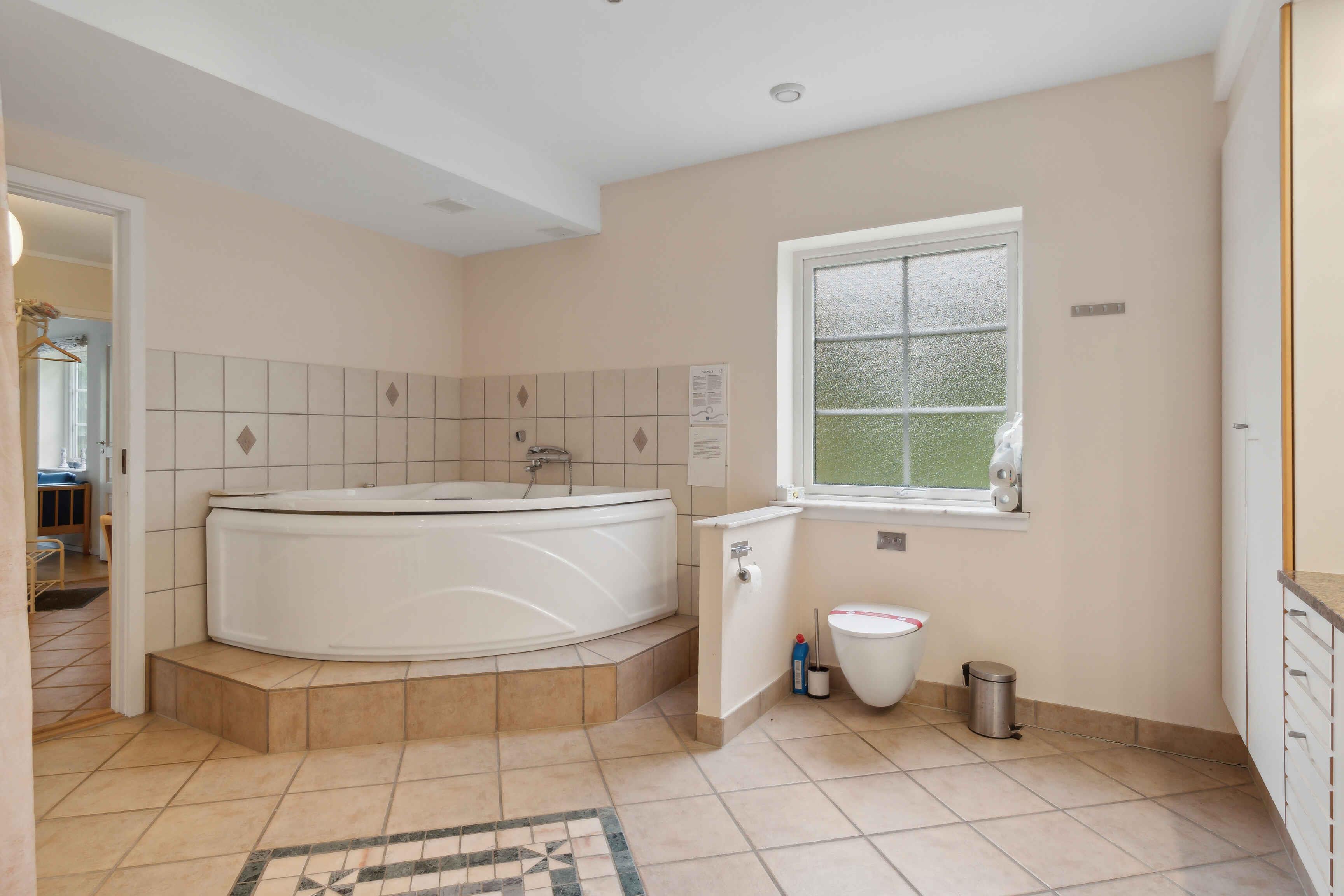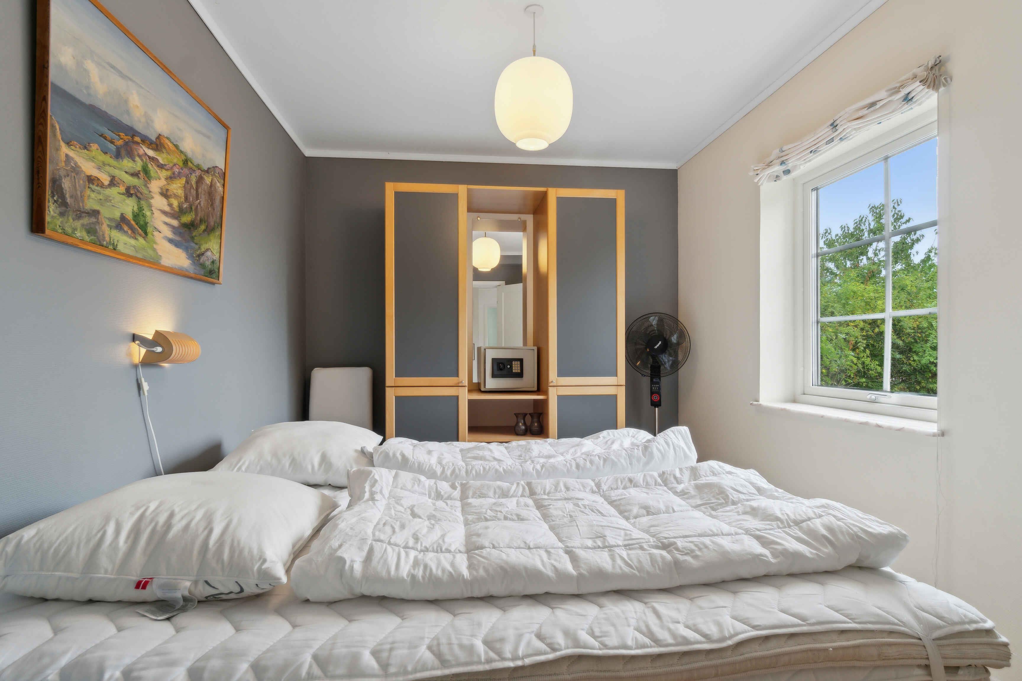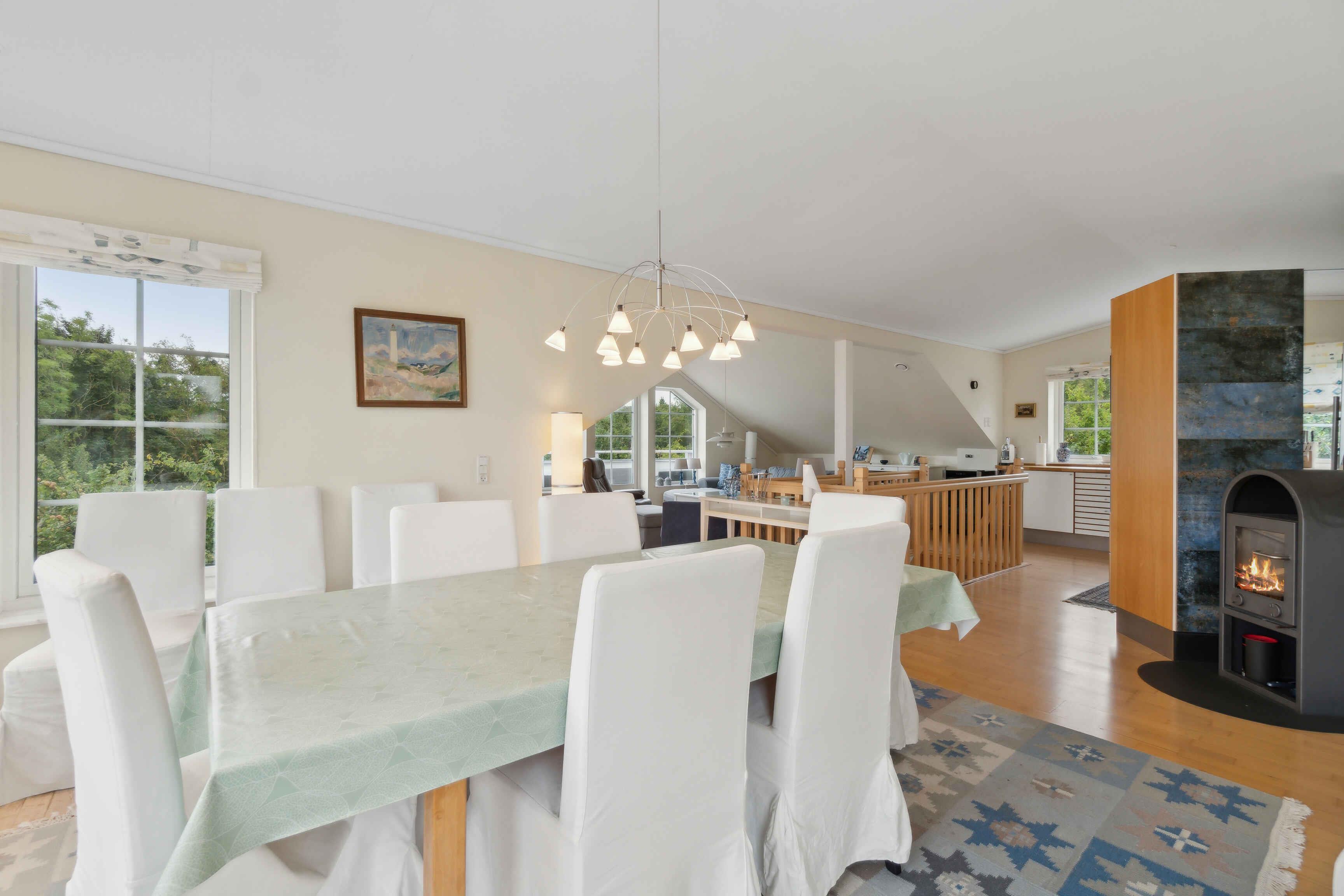 German Einrichtung Gemütliches Ferienhaus, in dem der Besitzer mit seiner Einrichtung dafür gesorgt hat, dass Sie hier Ihren Urlaub genießen können. Überall begegnen Ihnen helle Farben und stilvolle Einrichtung. Es gibt zwei Wohnzimmer: Eines im Erdgeschoss, das zur Entspannung eingerichtet ist und Zugang zur Terrasse bietet, und eines im ersten Stock, wo die Familie sich in der gemütlichen Sofaecke versammeln kann. Im Erdgeschoss gibt es drei geräumige Schlafzimmer, alle mit Doppelbetten, und zwei davon haben Zugang zur Terrasse. Im ersten Stock gibt es ein Schlafzimmer mit zwei Einzelbetten. Im Erdgeschoss gibt es ein geräumiges und gut eingerichtetes Badezimmer mit Whirlpool und im ersten Stock ein Bad und WC. Die Küche befindet sich im ersten Stock und bietet einen schönen Blick über die Umgebung. Der Essbereich ist hell, geräumig und bietet einen Blick über die Ostsee, ein fantastischer Ort, um die Mahlzeiten des Tages zu genießen. Das Haus ist mit einer Lüftungsanlage ausgestattet, die für ein gutes Raumklima sorgt. Ein wirklich gutes Haus für einen Urlaub mit Freunden oder Familie. Außenbereich Eine große möblierte Terrasse ermöglicht es Ihnen, die Sonne zu genießen oder einen der Tagesmahlzeiten zu genießen, vielleicht auf dem Grill zubereitet. Das Grundstück ist etwa 3000 m2 groß, sodass Platz für Spiel und Spaß oder ein Nickerchen unter einem der vielen Obstbäume vorhanden ist. Vom Wohnzimmer im ersten Stock gibt es Zugang zu einem möblierten Balkon. Sie können am Haus parken. Lage Das Haus liegt am Ende der Straße, nur Sie kommen hierher. Allinge ist die nächste Stadt, in der Sie die täglichen Einkäufe erledigen oder vielleicht ein Café im Hafen finden können, um das Hafenleben zu genießen. Allinge hat eine gute und abwechslungsreiche Auswahl an Restaurants, sodass ein Mittagessen in der Räucherei oder ein Abendessen im Alten Postamt nur einige der Möglichkeiten sind. Sie können in Næs baden, einem guten und kinderfreundlichen Sandstrand. Sie können zu Fuß über die Straße und den Weg dorthin gehen oder das Auto nehmen, es gibt gute Parkmöglichkeiten bei Næs. Von Næs können Sie entlang des alten Rettungswegs nach Sandkås gehen, ein unglaublich schöner Spaziergang zwischen und über die Felsen. In Sandkås gibt es auch einen guten und kinderfreundlichen Sandstrand. Die Sandkås Strandbar hat ein gemütliches Gebiet eingerichtet, setzen Sie sich hier hin und genießen Sie ein Eis oder eine Tasse Kaffee. Nordbornholm hat eine großartige Natur, die zu Wanderungen einlädt, wie Hammerknuden, der Stenhuggerstien, Madseløkke, und vielleicht sehen Sie Krølle Bølle bei Langebjerg. Wir wünschen Ihnen einen schönen Urlaub.