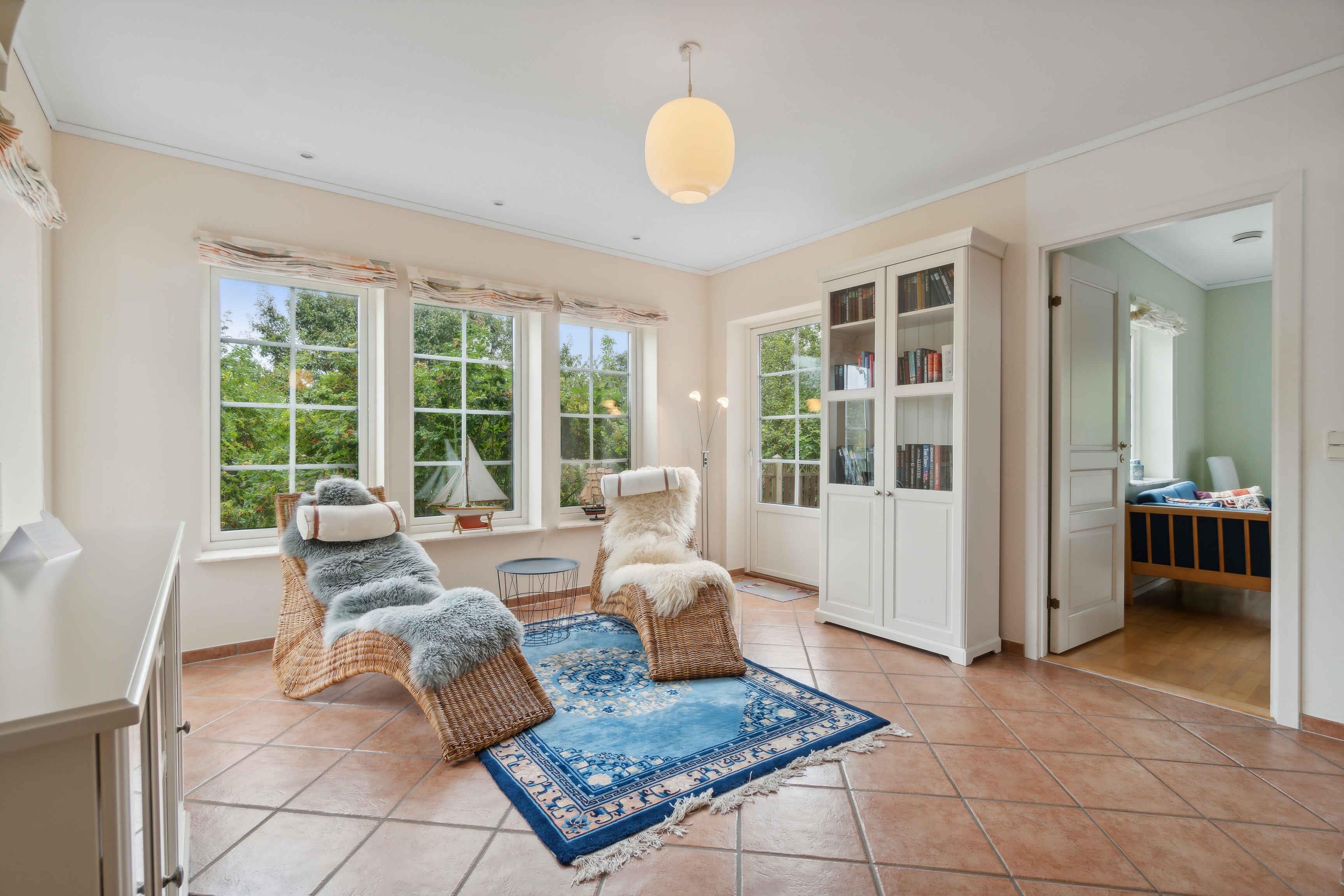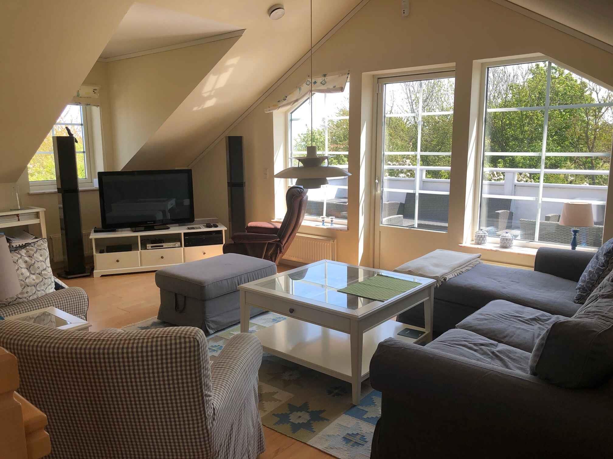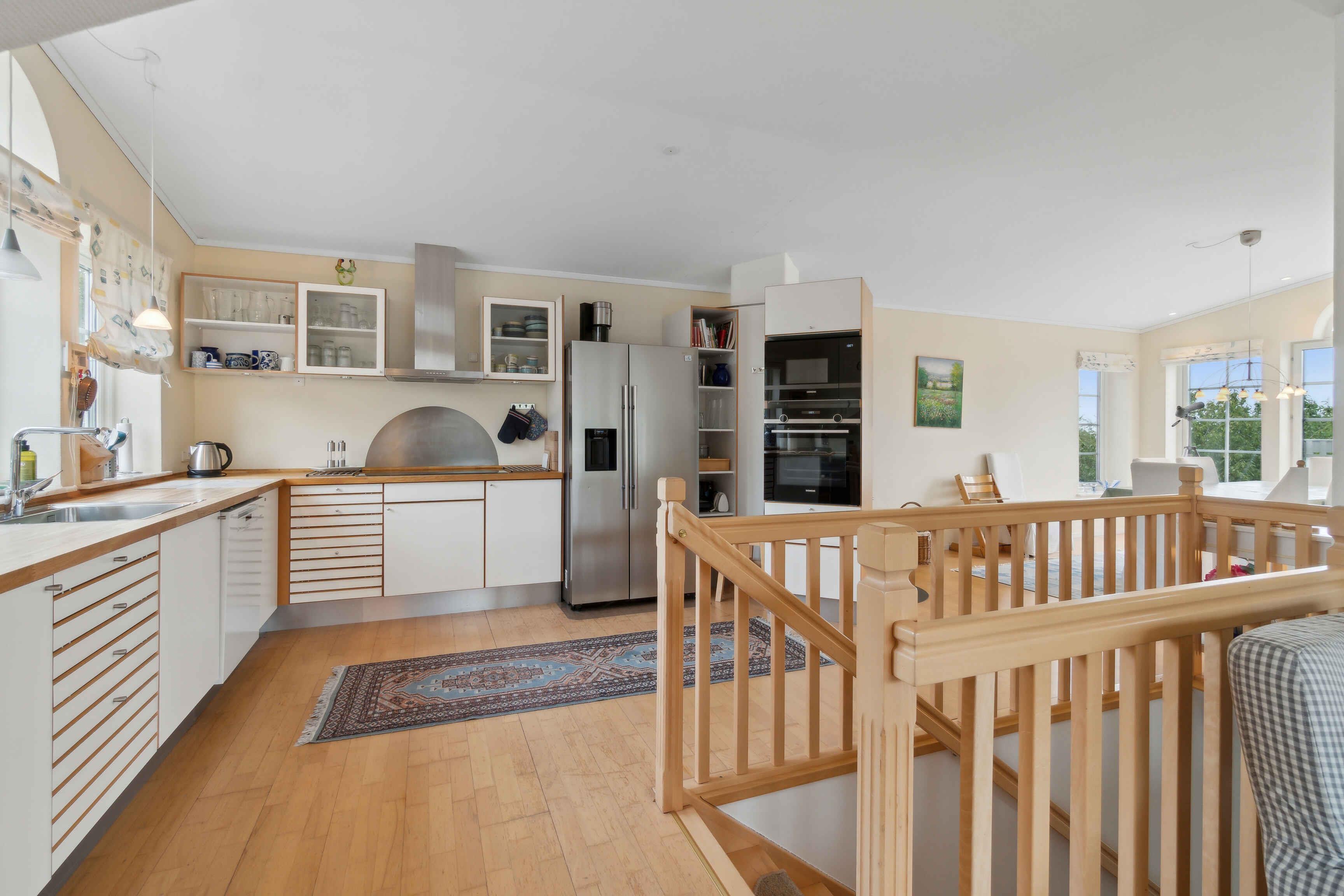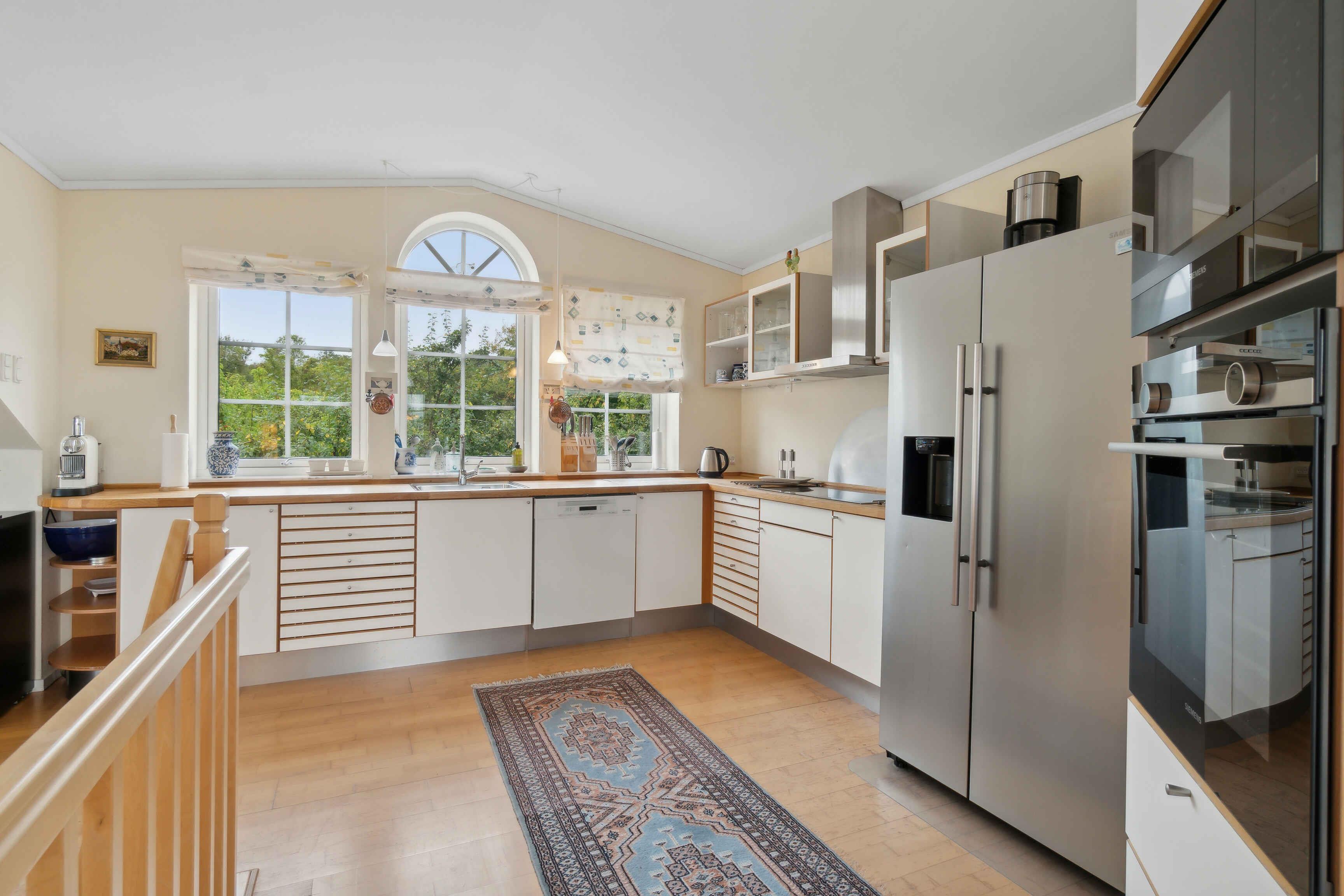 German Einrichtung Gemütliches Ferienhaus, in dem der Besitzer mit seiner Einrichtung dafür gesorgt hat, dass Sie hier Ihren Urlaub genießen können. Überall begegnen Ihnen helle Farben und stilvolle Einrichtung. Es gibt zwei Wohnzimmer: Eines im Erdgeschoss, das zur Entspannung eingerichtet ist und Zugang zur Terrasse bietet, und eines im ersten Stock, wo die Familie sich in der gemütlichen Sofaecke versammeln kann. Im Erdgeschoss gibt es drei geräumige Schlafzimmer, alle mit Doppelbetten, und zwei davon haben Zugang zur Terrasse. Im ersten Stock gibt es ein Schlafzimmer mit zwei Einzelbetten. Im Erdgeschoss gibt es ein geräumiges und gut eingerichtetes Badezimmer mit Whirlpool und im ersten Stock ein Bad und WC. Die Küche befindet sich im ersten Stock und bietet einen schönen Blick über die Umgebung. Der Essbereich ist hell, geräumig und bietet einen Blick über die Ostsee, ein fantastischer Ort, um die Mahlzeiten des Tages zu genießen. Das Haus ist mit einer Lüftungsanlage ausgestattet, die für ein gutes Raumklima sorgt. Ein wirklich gutes Haus für einen Urlaub mit Freunden oder Familie. Außenbereich Eine große möblierte Terrasse ermöglicht es Ihnen, die Sonne zu genießen oder einen der Tagesmahlzeiten zu genießen, vielleicht auf dem Grill zubereitet. Das Grundstück ist etwa 3000 m2 groß, sodass Platz für Spiel und Spaß oder ein Nickerchen unter einem der vielen Obstbäume vorhanden ist. Vom Wohnzimmer im ersten Stock gibt es Zugang zu einem möblierten Balkon. Sie können am Haus parken. Lage Das Haus liegt am Ende der Straße, nur Sie kommen hierher. Allinge ist die nächste Stadt, in der Sie die täglichen Einkäufe erledigen oder vielleicht ein Café im Hafen finden können, um das Hafenleben zu genießen. Allinge hat eine gute und abwechslungsreiche Auswahl an Restaurants, sodass ein Mittagessen in der Räucherei oder ein Abendessen im Alten Postamt nur einige der Möglichkeiten sind. Sie können in Næs baden, einem guten und kinderfreundlichen Sandstrand. Sie können zu Fuß über die Straße und den Weg dorthin gehen oder das Auto nehmen, es gibt gute Parkmöglichkeiten bei Næs. Von Næs können Sie entlang des alten Rettungswegs nach Sandkås gehen, ein unglaublich schöner Spaziergang zwischen und über die Felsen. In Sandkås gibt es auch einen guten und kinderfreundlichen Sandstrand. Die Sandkås Strandbar hat ein gemütliches Gebiet eingerichtet, setzen Sie sich hier hin und genießen Sie ein Eis oder eine Tasse Kaffee. Nordbornholm hat eine großartige Natur, die zu Wanderungen einlädt, wie Hammerknuden, der Stenhuggerstien, Madseløkke, und vielleicht sehen Sie Krølle Bølle bei Langebjerg. Wir wünschen Ihnen einen schönen Urlaub.