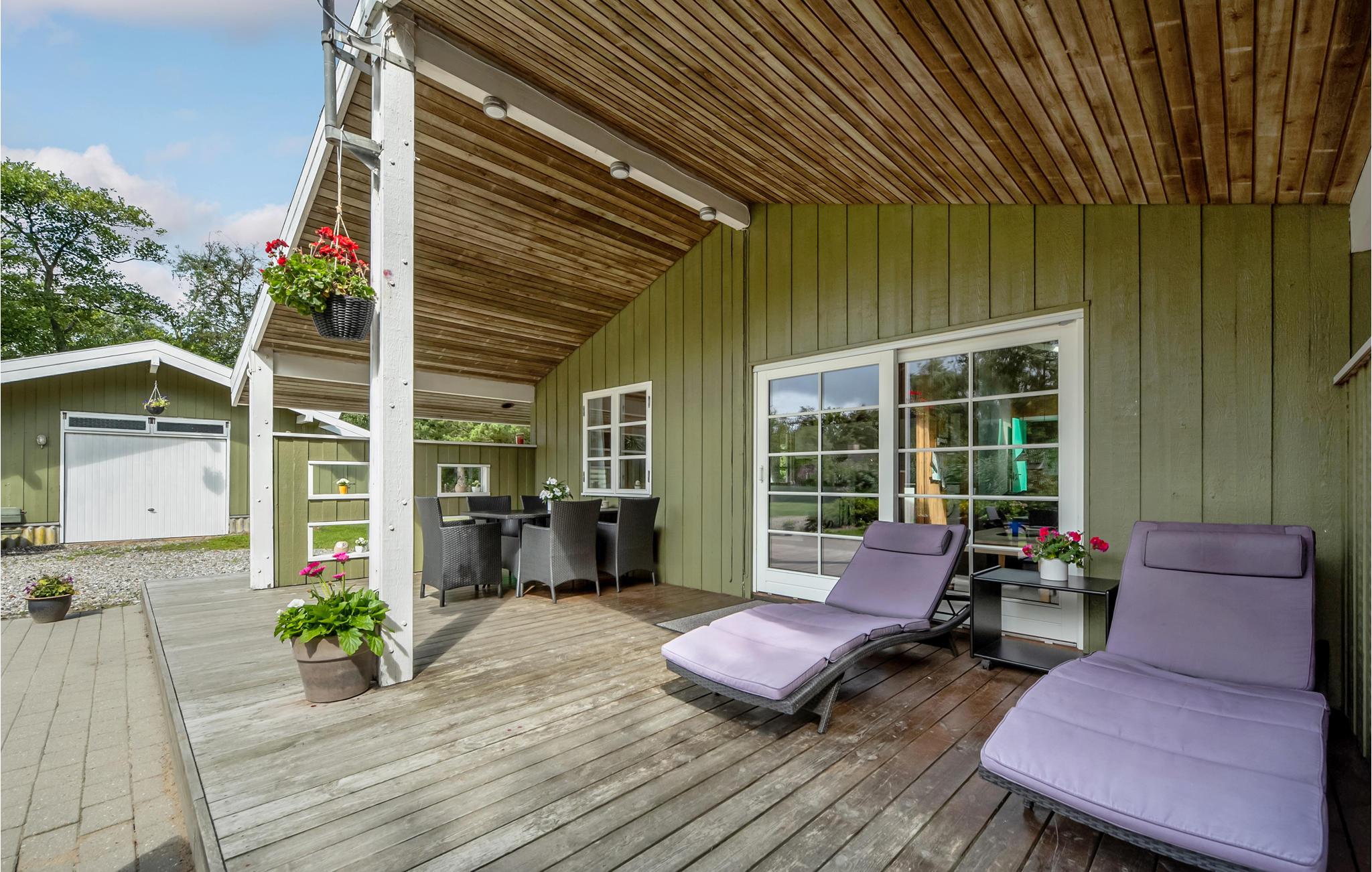 Gemütliches Ferienhaus in Tim mit überdachter Terrasse, Kaminofen und WLAN für erholsame Tage an Dänemarks Westküste.