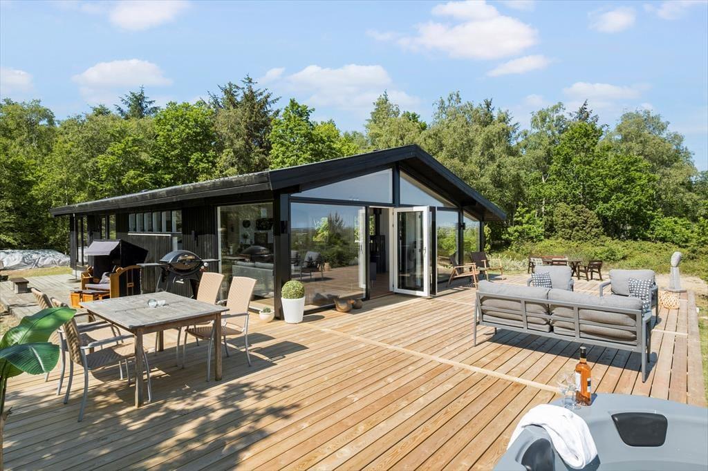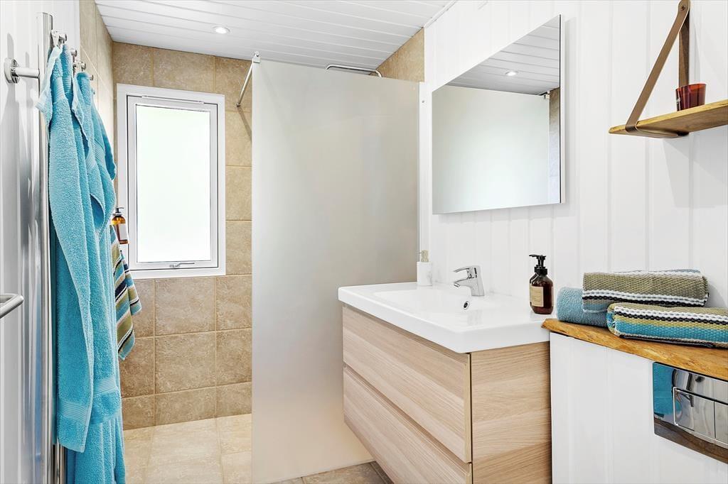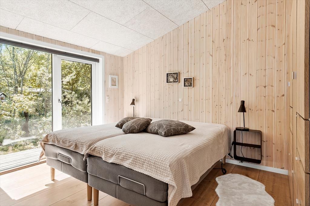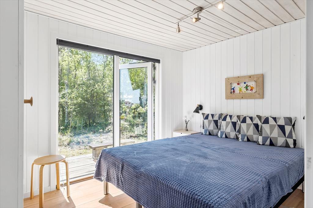 Das Ferienhaus wurde im Jahr 1974 errichtet aber wurde im 2023 vollständig renoviert, und verfügt über einen authentischen Charme mit holzverkleideten Fassaden und der besonders idyllischen Lage am Waldrand. Hier haben Sie Wald zur einen und eine schöne Aussicht über das Wasser zur anderen Seite. Die attraktive Umgebung können Sie vom gemütlichen Wohnzimmer aus genießen, welches in offener Verbindung zur Küche steht. Es erwartet Sie ein ansehnlicher Essbereich in der Nähe der Küche, darüber hinaus verfügen Sie über ein Sofa und Leseecken - dank der großen Fenster ist der Wohnbereich mit ausreichend Tageslicht und mit einer attraktiven Aussicht auf die Umgebung versorgt. Vom Wohnzimmer aus haben Sie Zugang zur Terrasse, die an wärmeren und sonnigen Tagen den Wohnbereich erweitert. Es gibt zwei Schlafzimmer - beide mit einem Doppelbett. Ein Badezimmer gibt es natürlich auch.