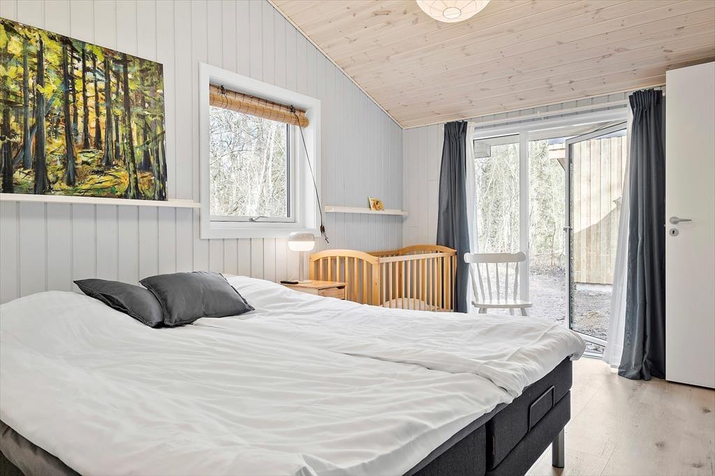 Der ruhige Schotterweg Jægerskoven endet rund 500 Meter abseits deines Ferienhauses. Der Weg führt direkt bis an die Strandwiesen. Von hier aus erreichst du zu Fuß zügig das Ufer des Kattegat. Was für eine Aussicht, was für eine Ruhe! Die Gegend ist für eine artenreiche Vogel- und Tierwelt bekannt und lädt zu langen Spaziergängen, Angeltouren, Ausflügen per Kajak und zu vielen anderen Aktivitäten in der Natur ein. Deine täglichen Einkäufe erledigst du in der wenige Kilometer entfernten Ortschaft Als. Falls dir und deiner Familie der Sinn nach einem richtig schönen Tag an einem tollen Badestrand steht, empfehlen wir dir einen Abstecher in den Badeort Øster Hurup ein Stück weiter nördlich an der Küste.