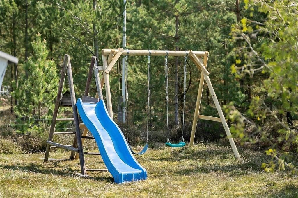 Draußen erwartet Sie ein großes Naturgrundstück, auf dem hohe Bäume eine ruhige und private Atmosphäre schaffen. Für die Kinder gibt es eine Schaukel, auf der sie unter den Baumwipfeln spielen können, während Sie das Abendessen auf dem Grill zubereiten. Später können Sie alle Marshmallows über dem Feuer rösten und den Geruch von Rauch und frischer Waldluft genießen. Die geräumige Terrasse ist der perfekte Ort, um Ihren Morgenkaffee zu genießen, während Sie dem Zwitschern der Vögel lauschen und die ersten Sonnenstrahlen auf Ihrem Gesicht spüren.